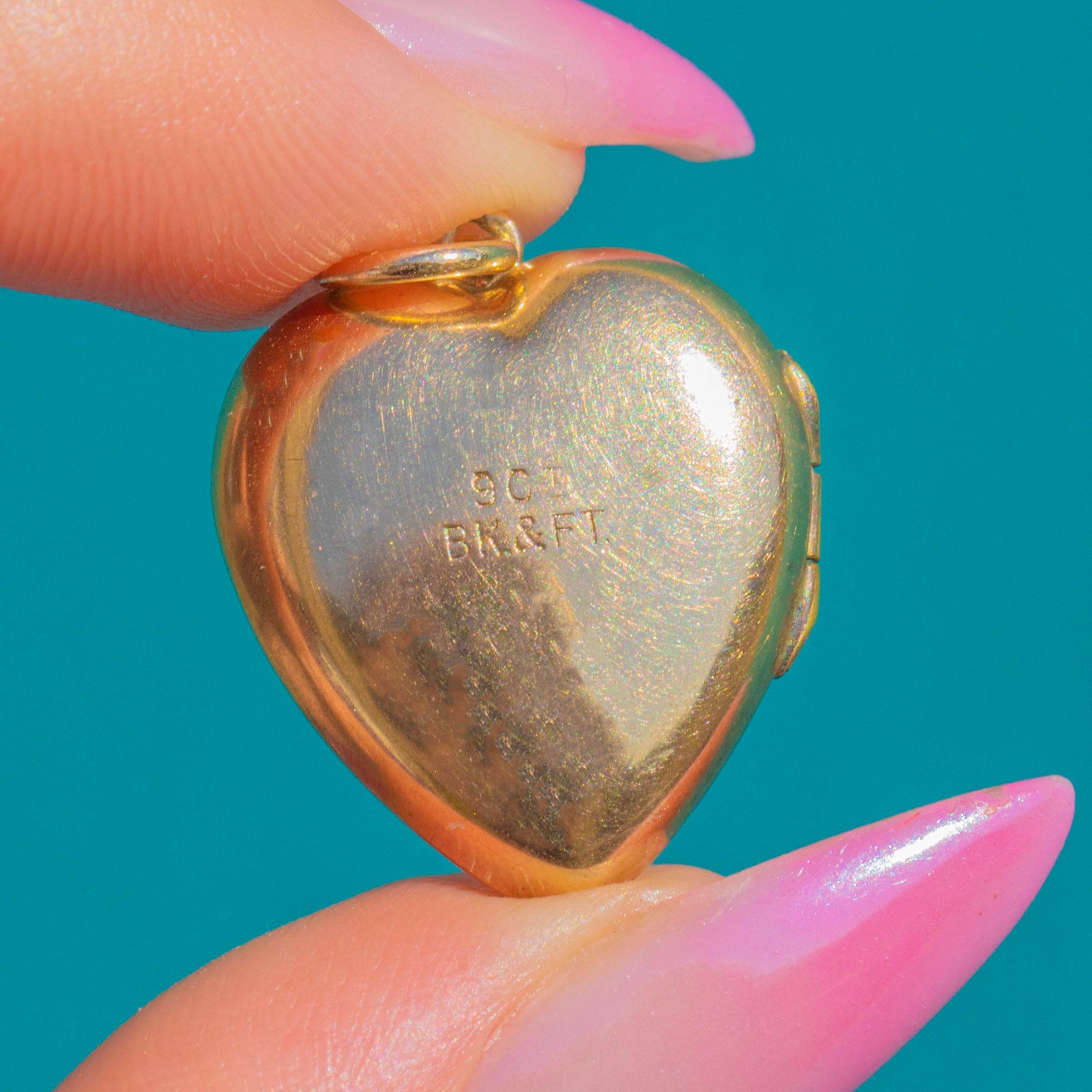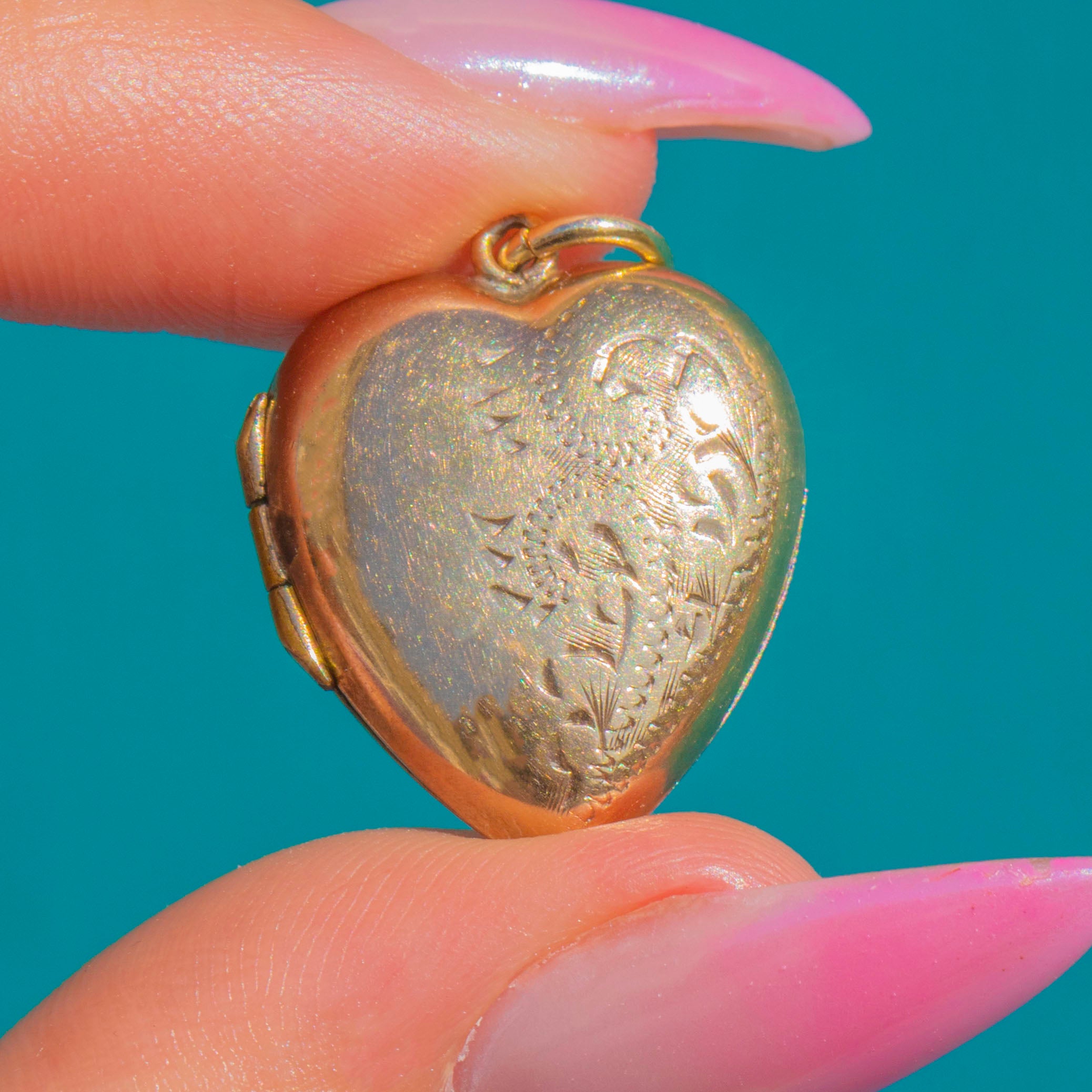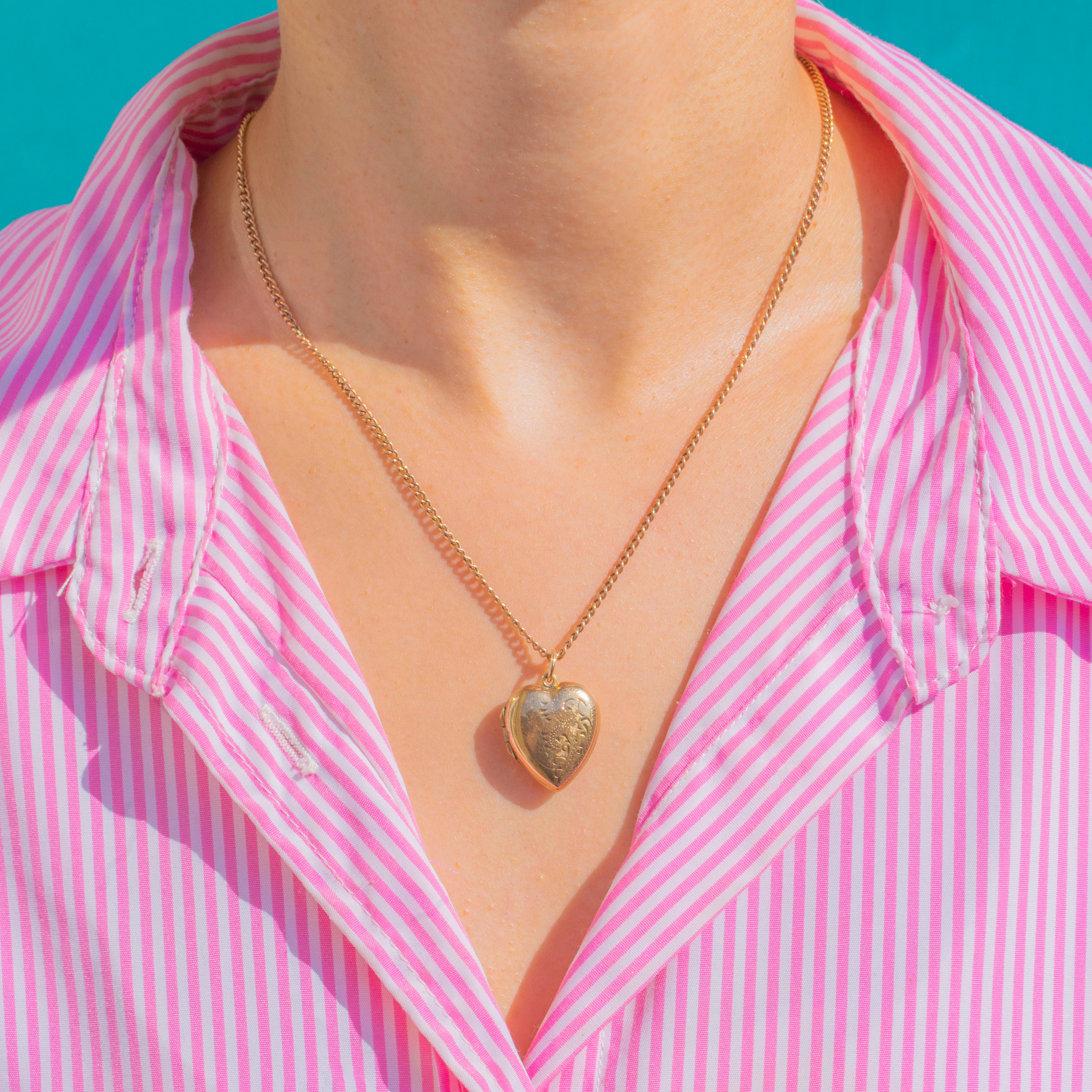 アンティーク 9ct ゴールド エングレーブド パフィー ハート ロケット