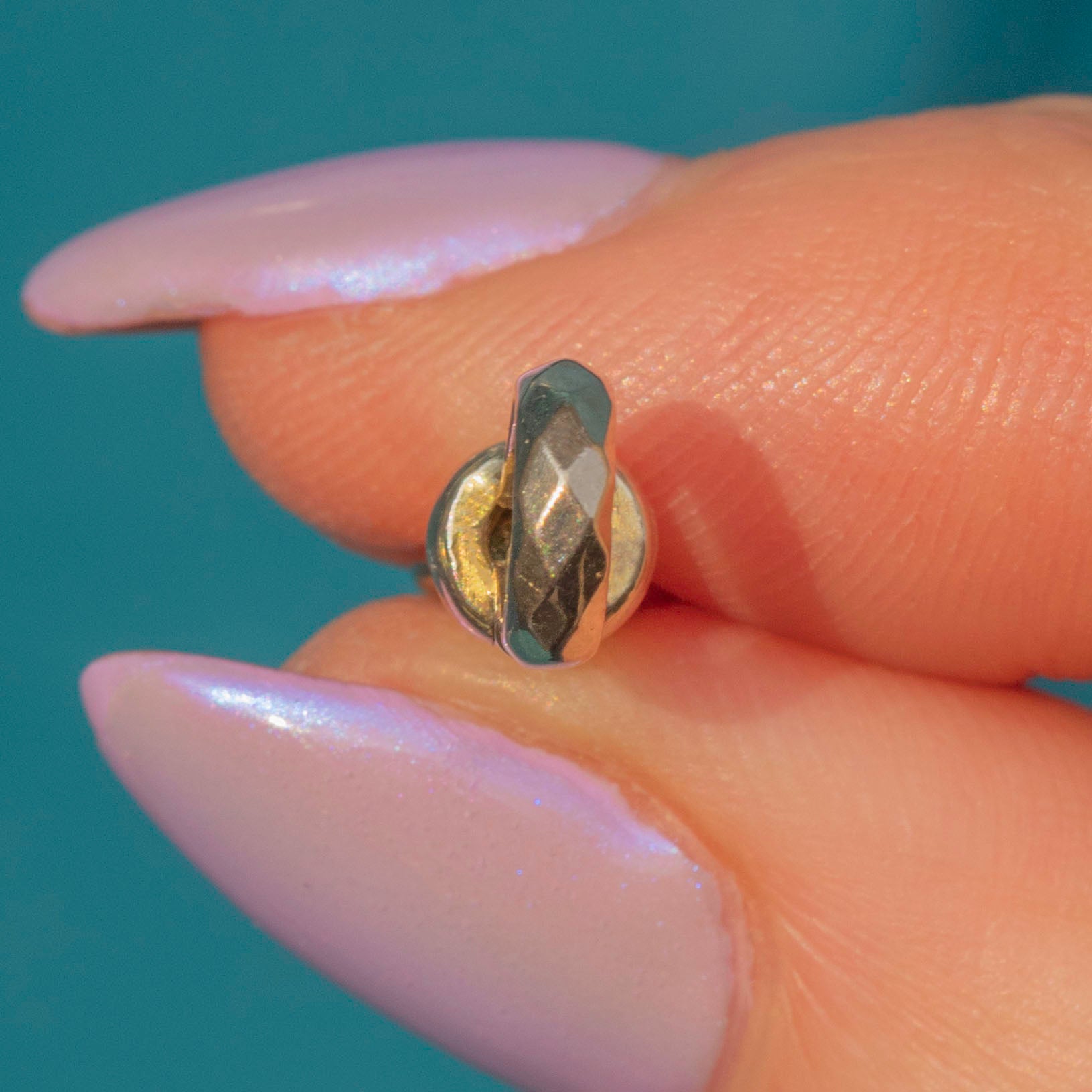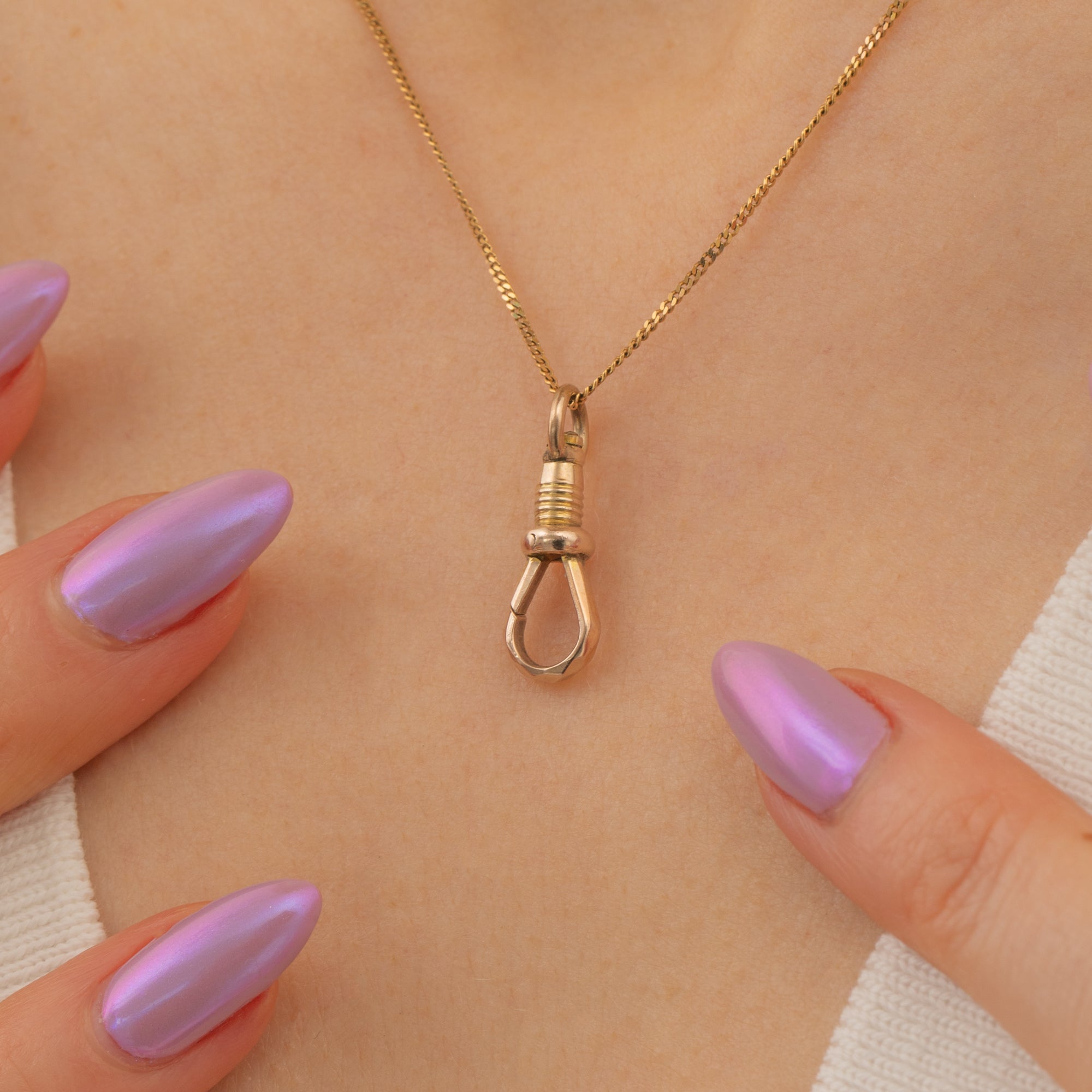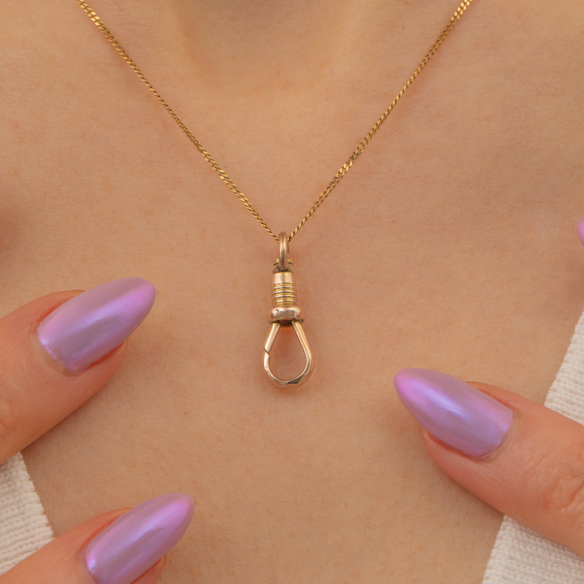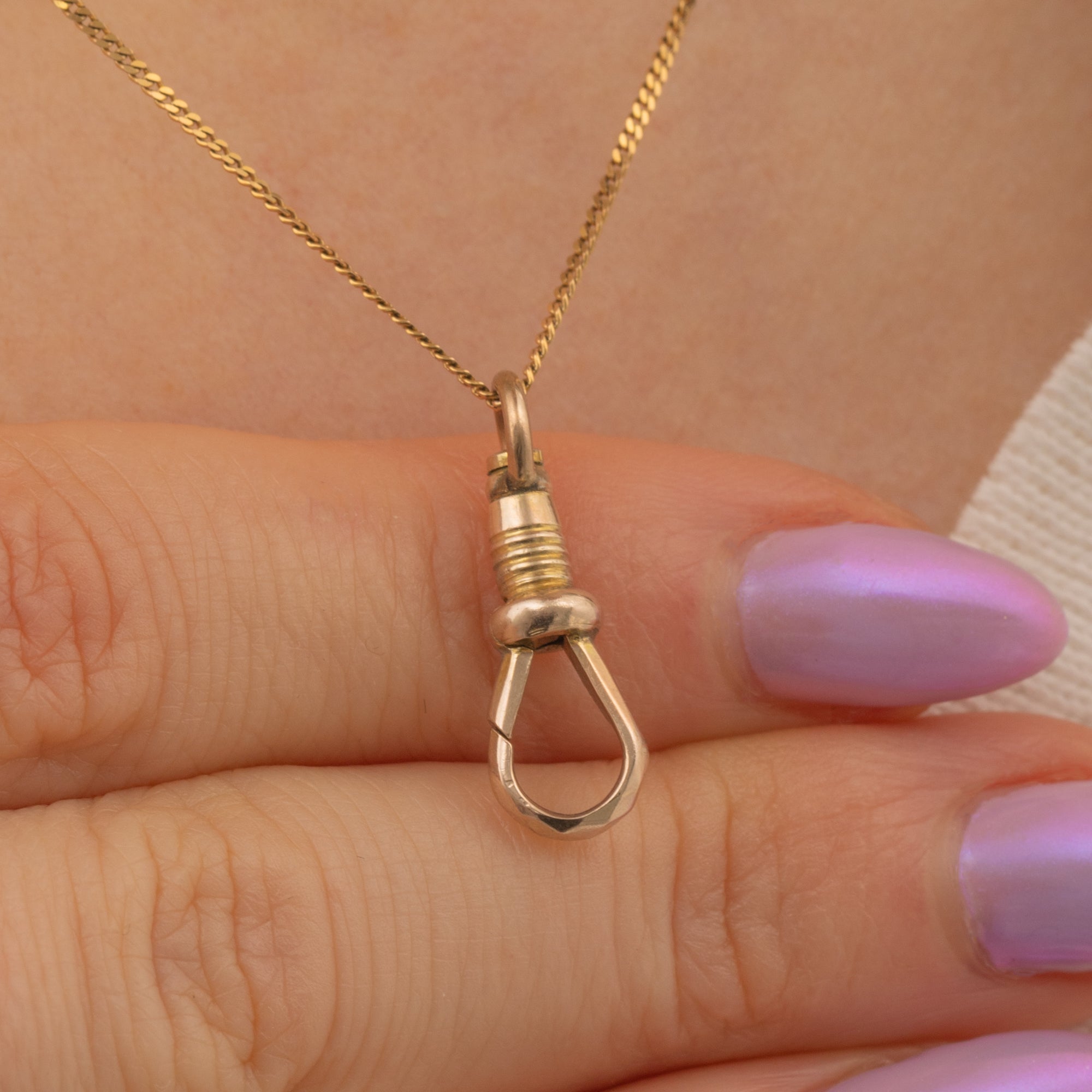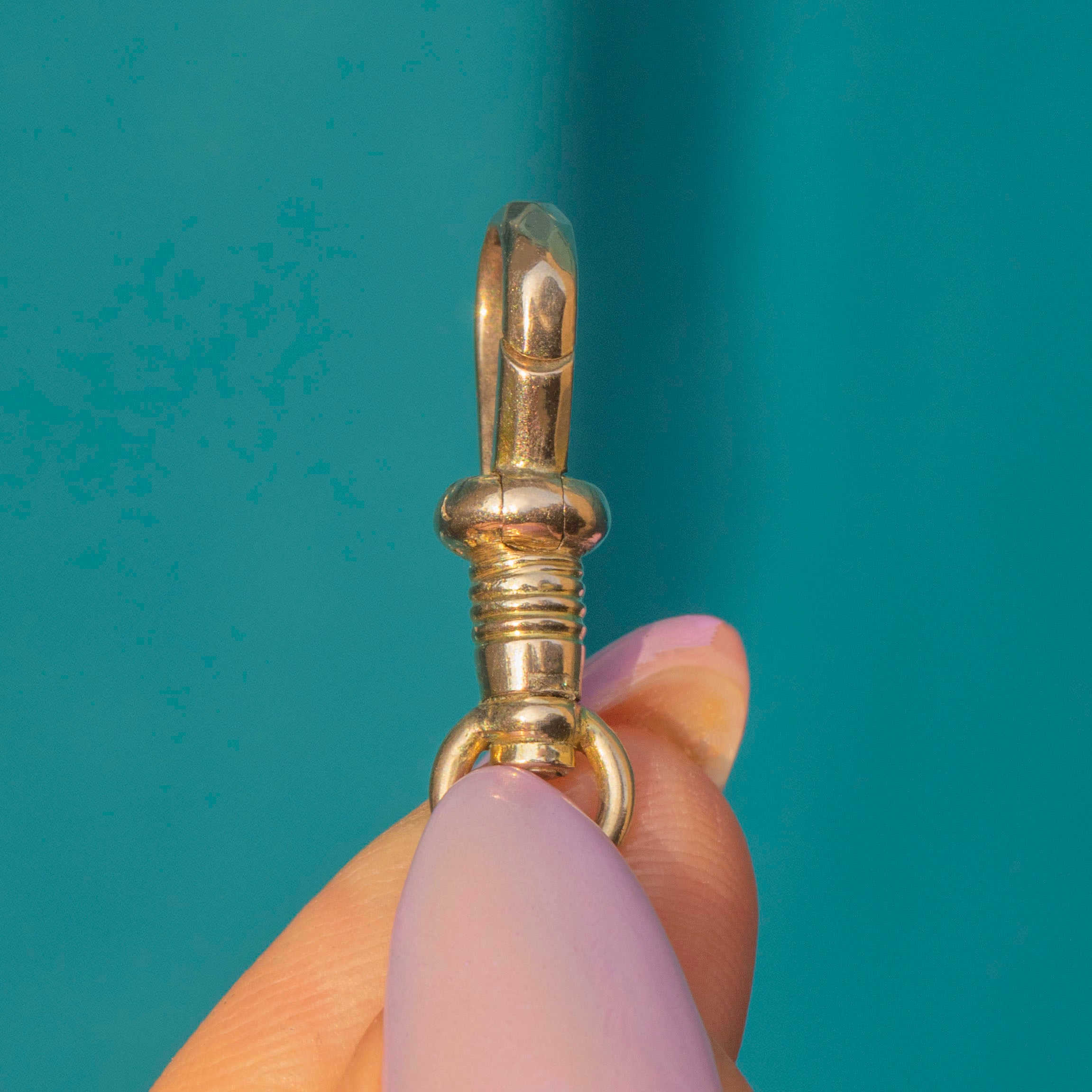 Featuring a distinctive faceted design, she catches the light beautifully, enhancing her warm golden glow. A highly sought-after and versatile piece, dog-clips are both elegant and practical for attaching charms and pendants to chains and necklaces.