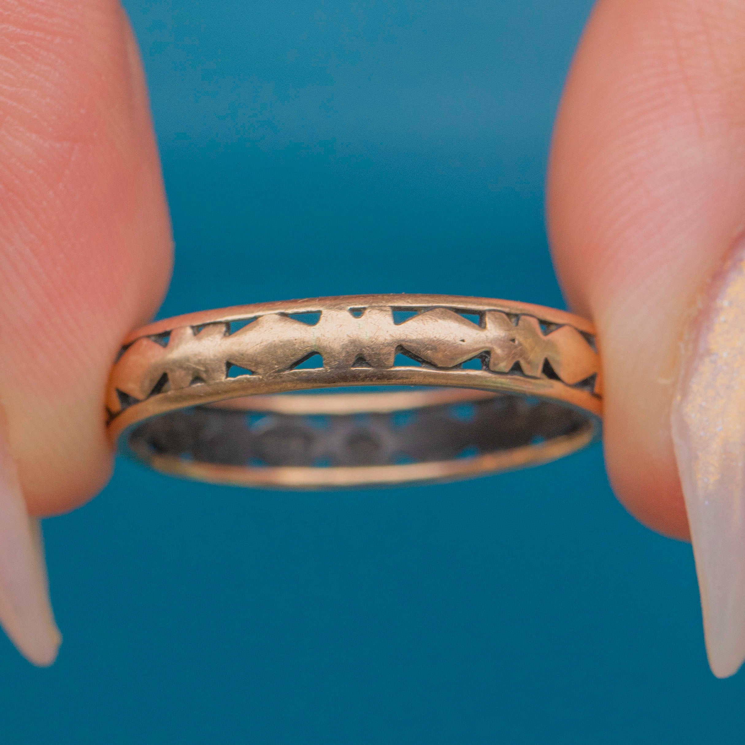 EXCELLENT: This band is beautifully preserved with no visible wear. The pierced detailing is crisp and intact, and the 9ct Gold shows a warm, polished glow. A superb example of Victorian craftsmanship, ready to wear immediately.