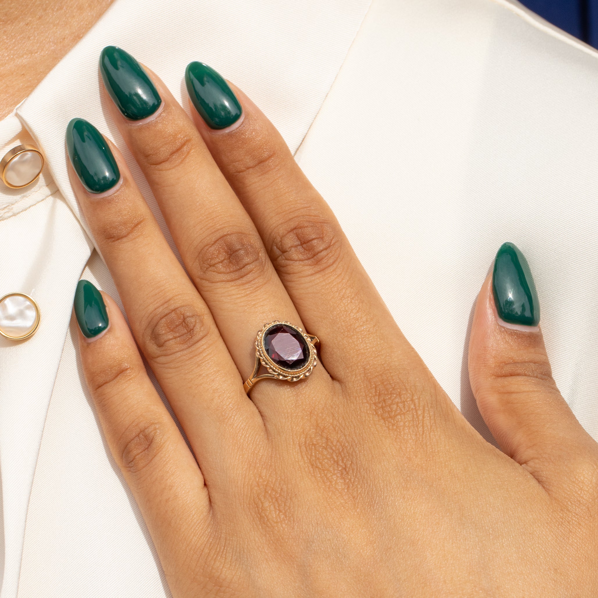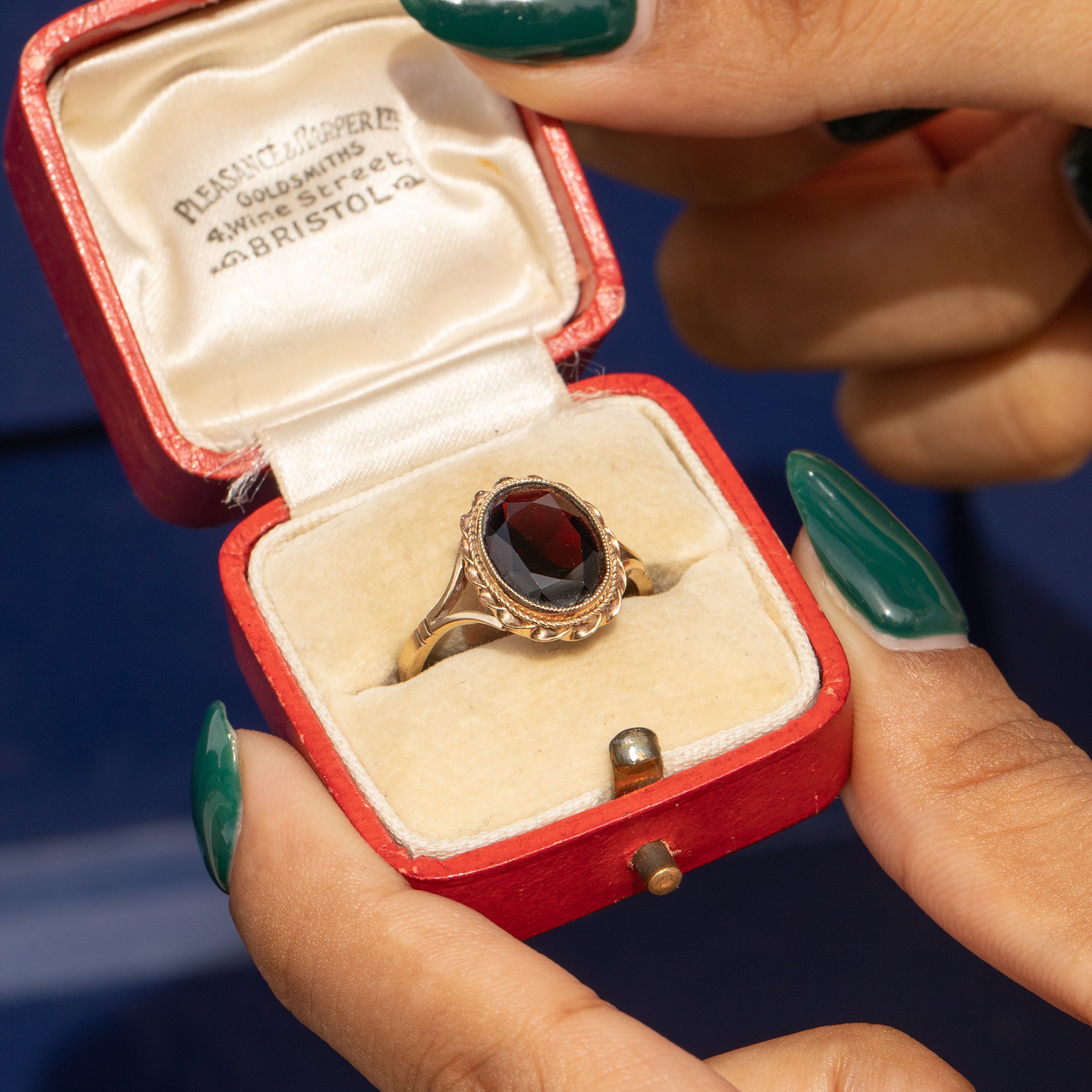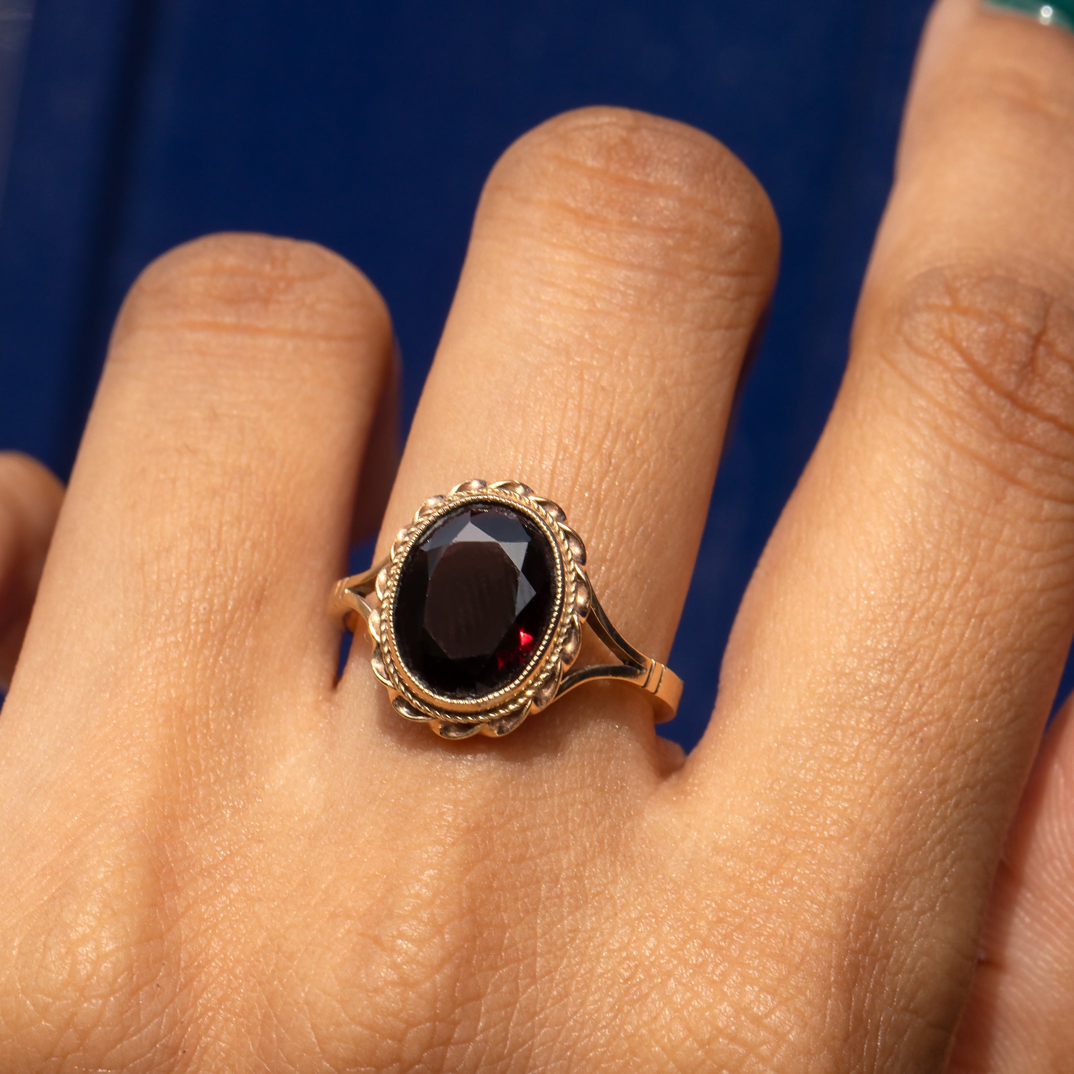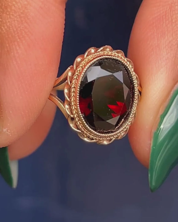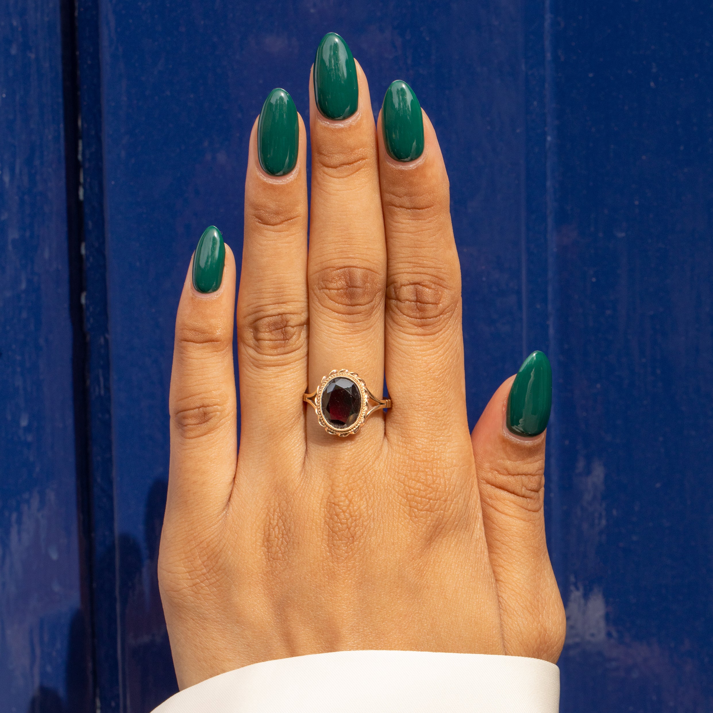 アンティーク 9ct ゴールド ガーネット ドレスリング、4.00ct。