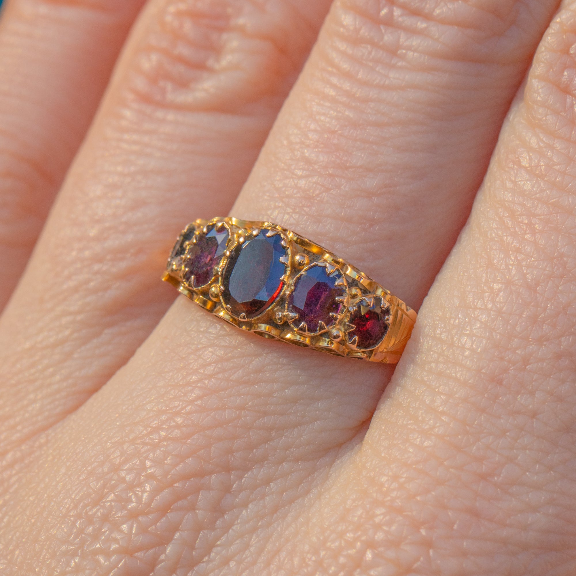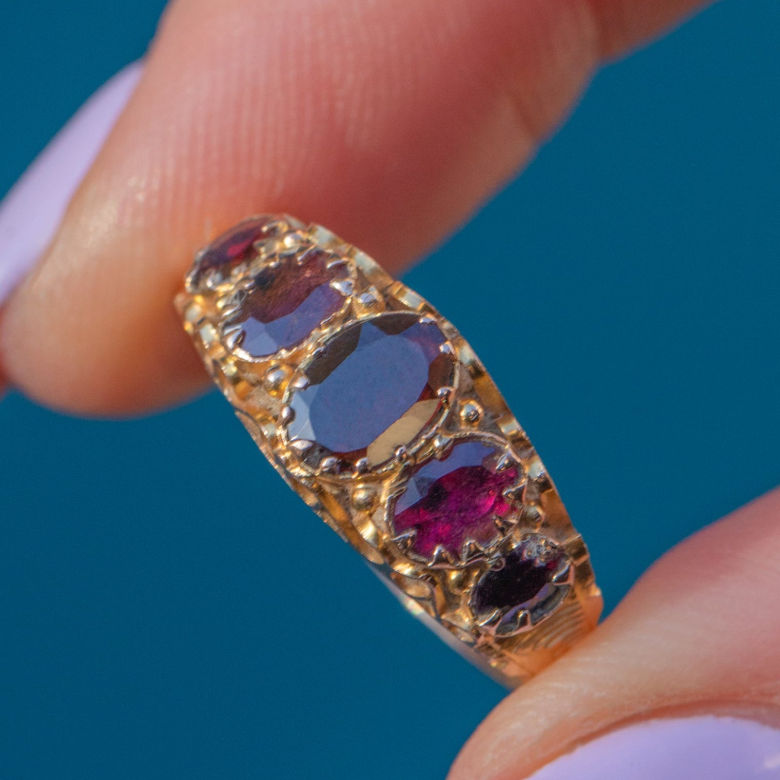 Antique 9ct Gold Garnet Five Stone Ring c.1851