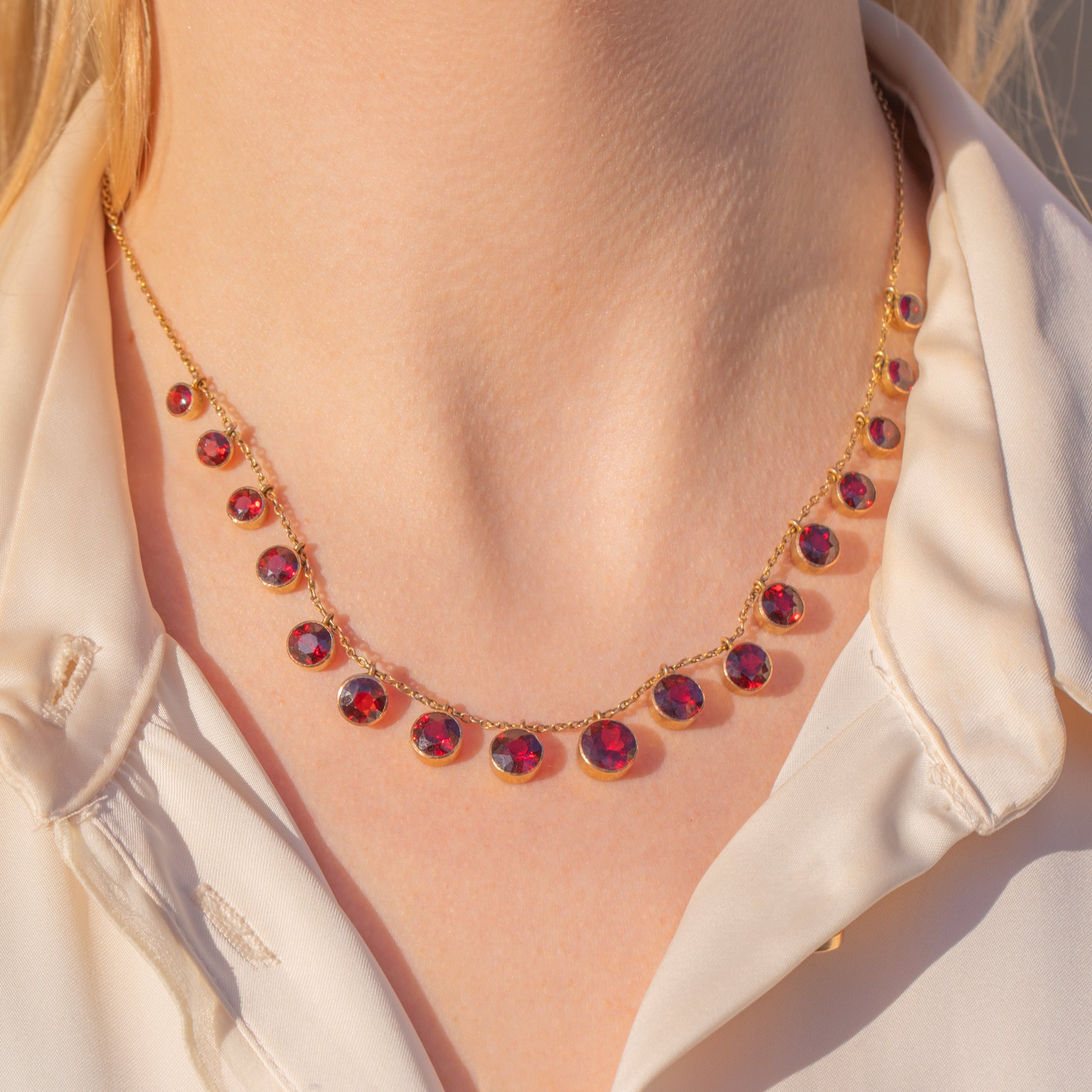 Antique 9ct Gold Garnet Fringe Necklace, 11.30ct
