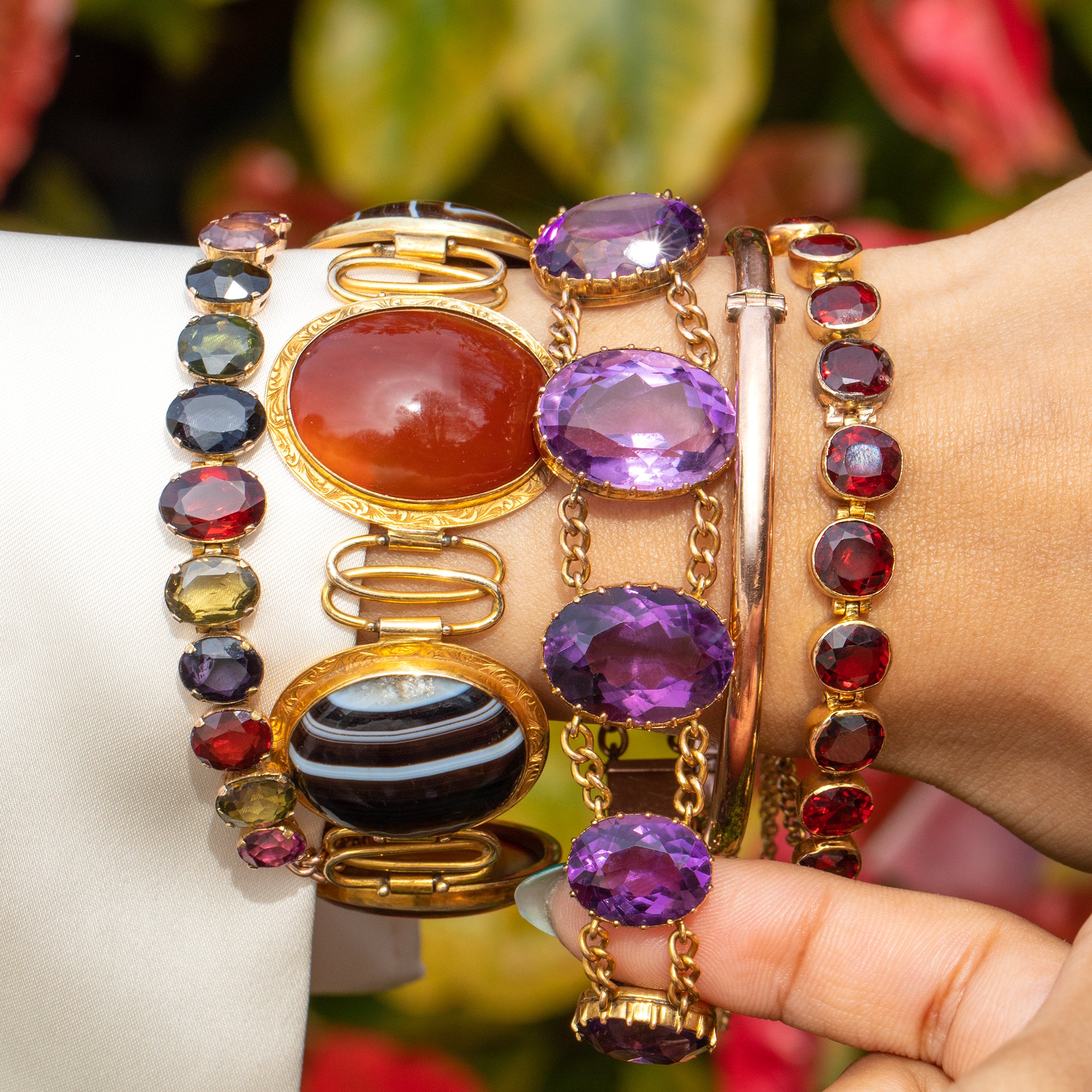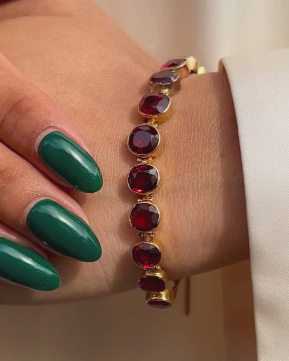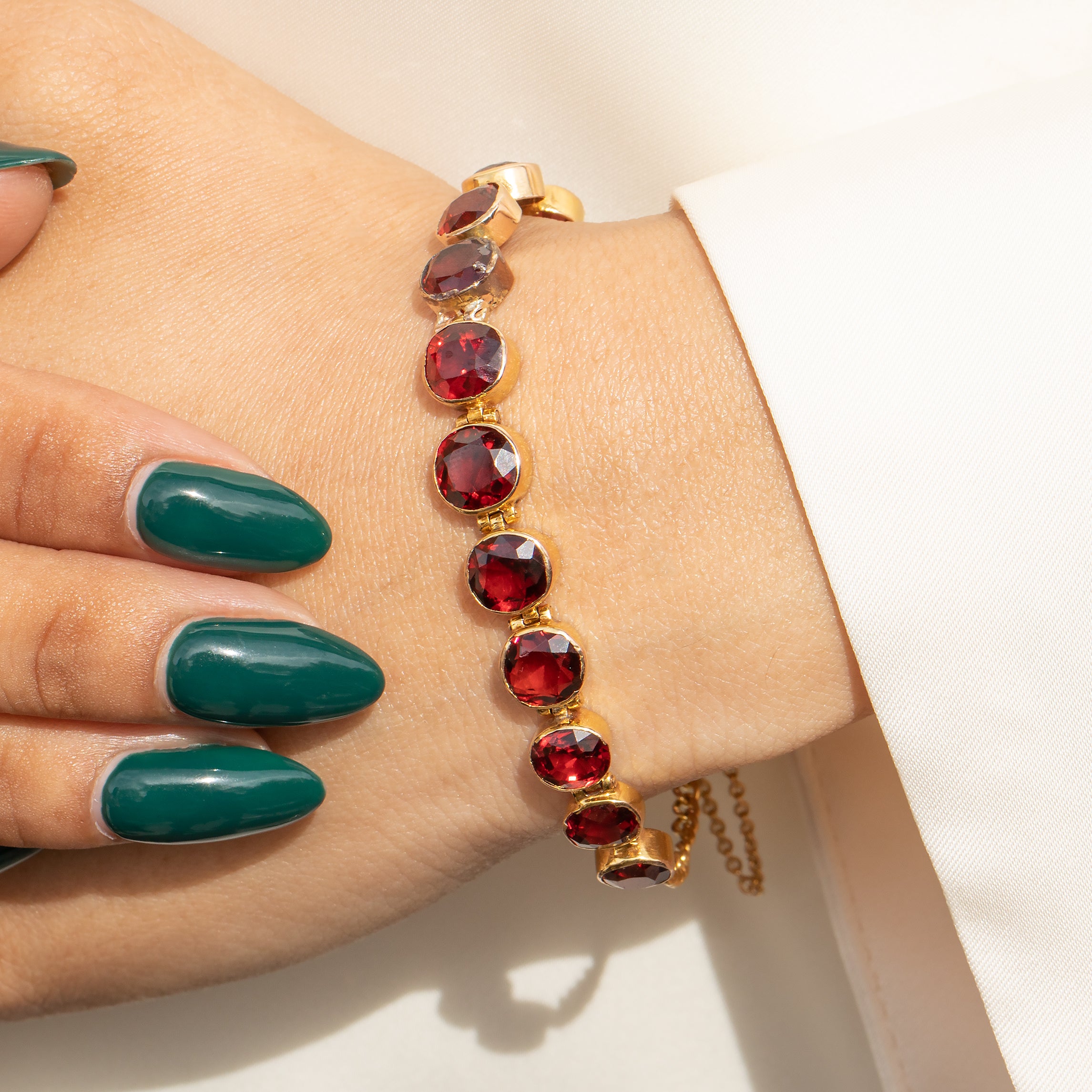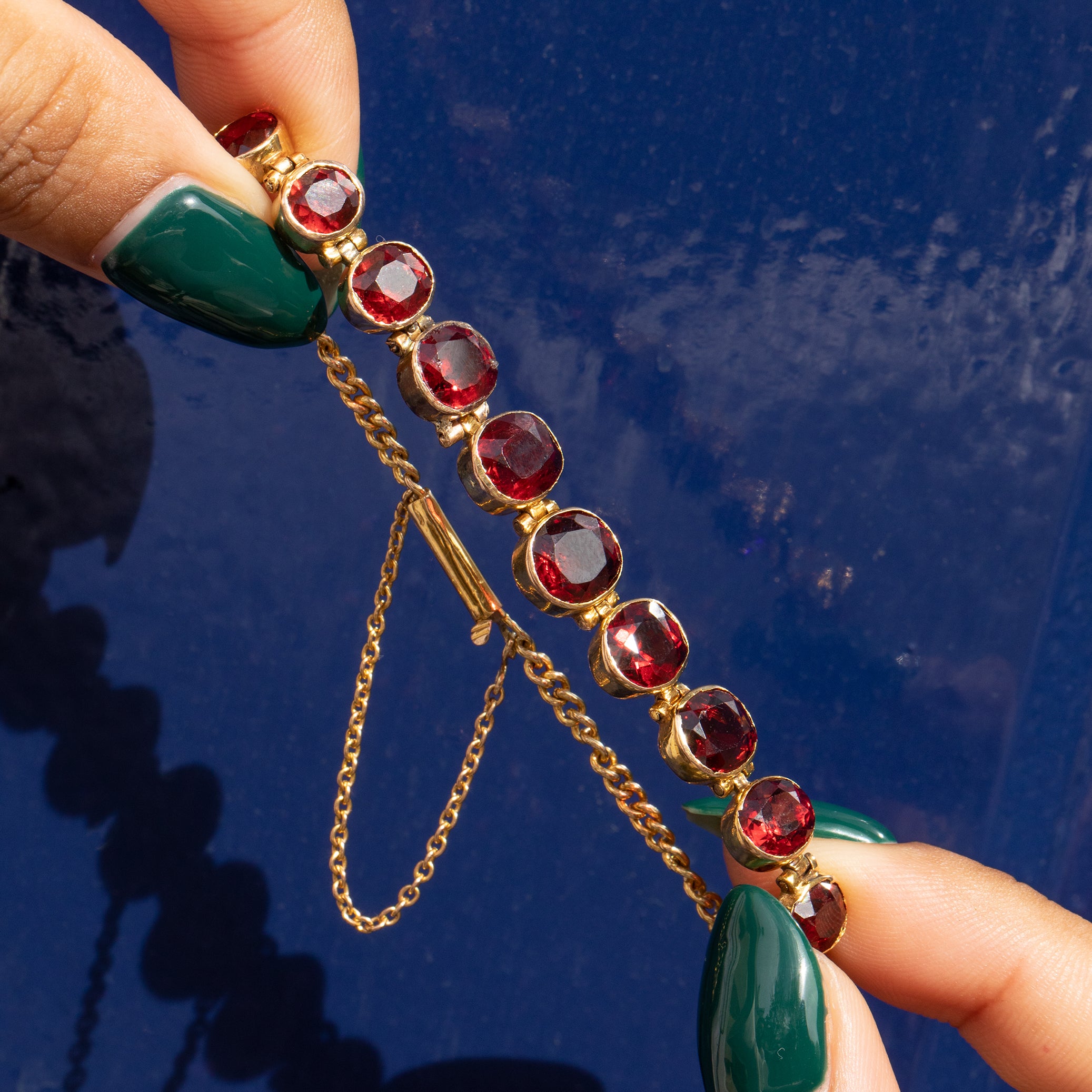 アンティーク 9ct ゴールド ガーネット グラデュエイティング ブレスレット、9.44ct