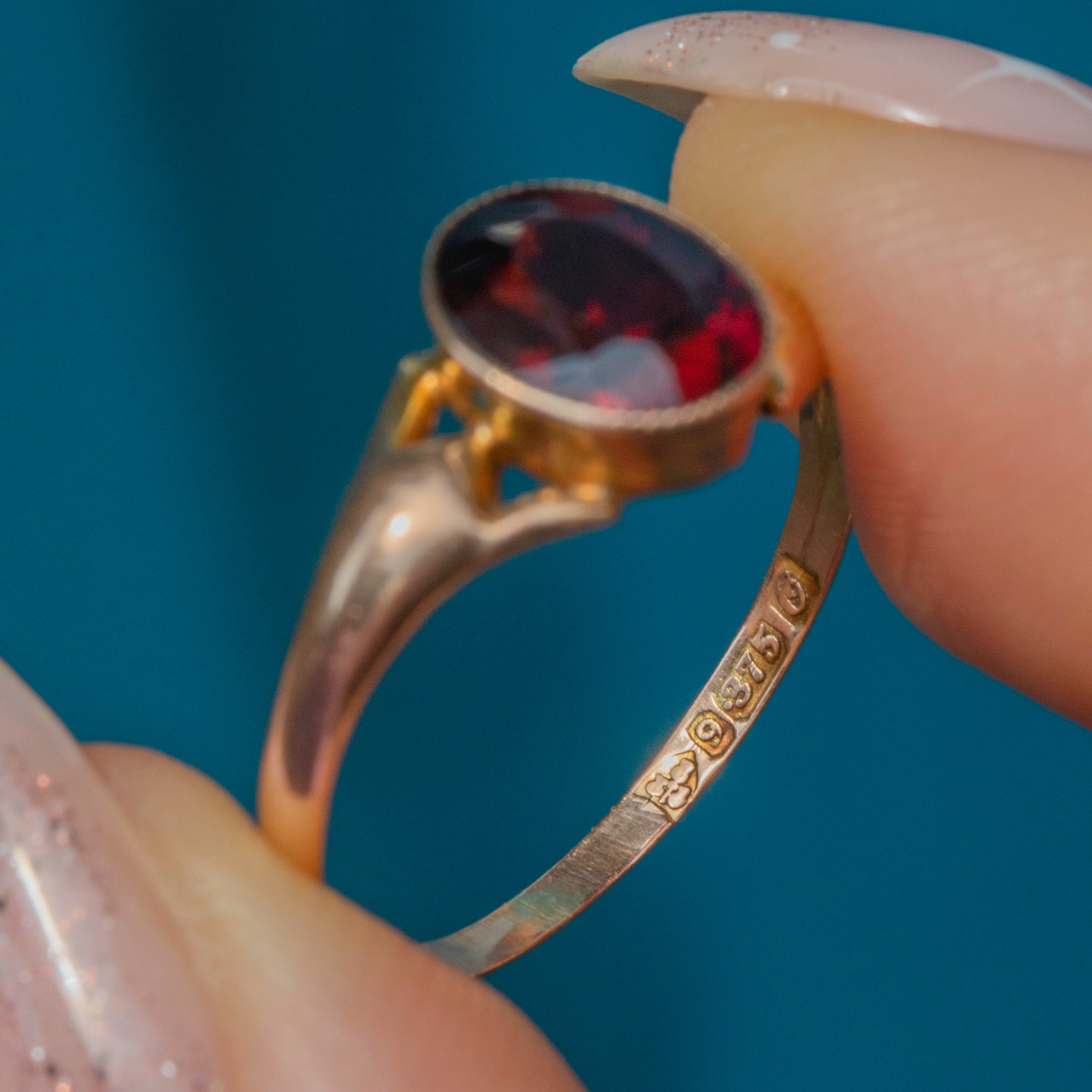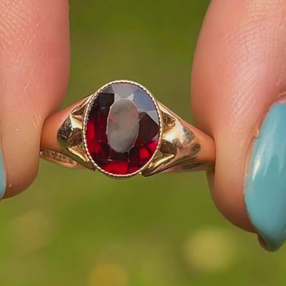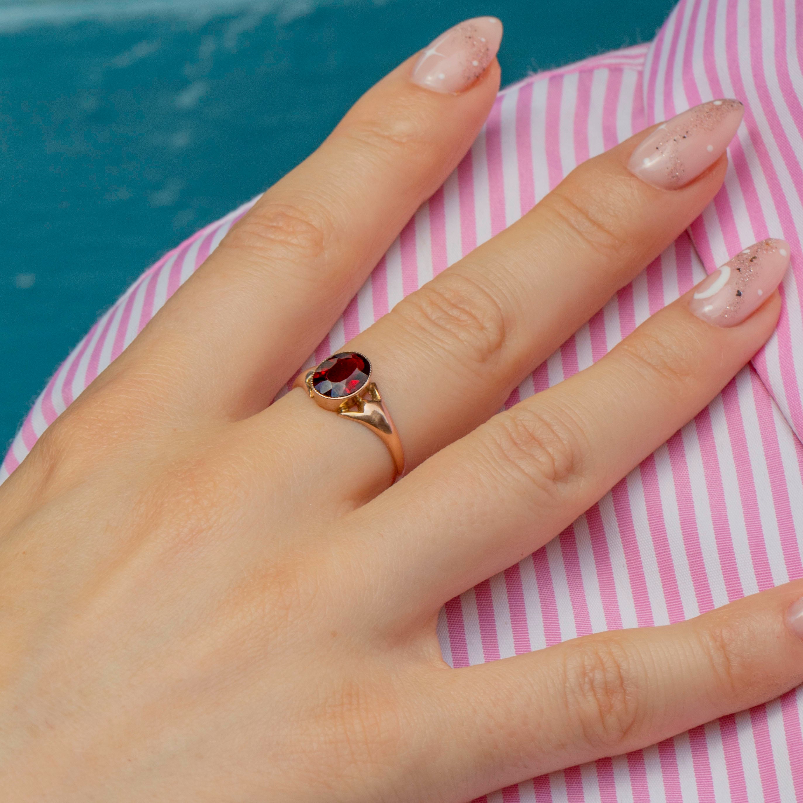 Antique 9ct Gold Garnet Solitaire Ring c.1914, 0.95ct