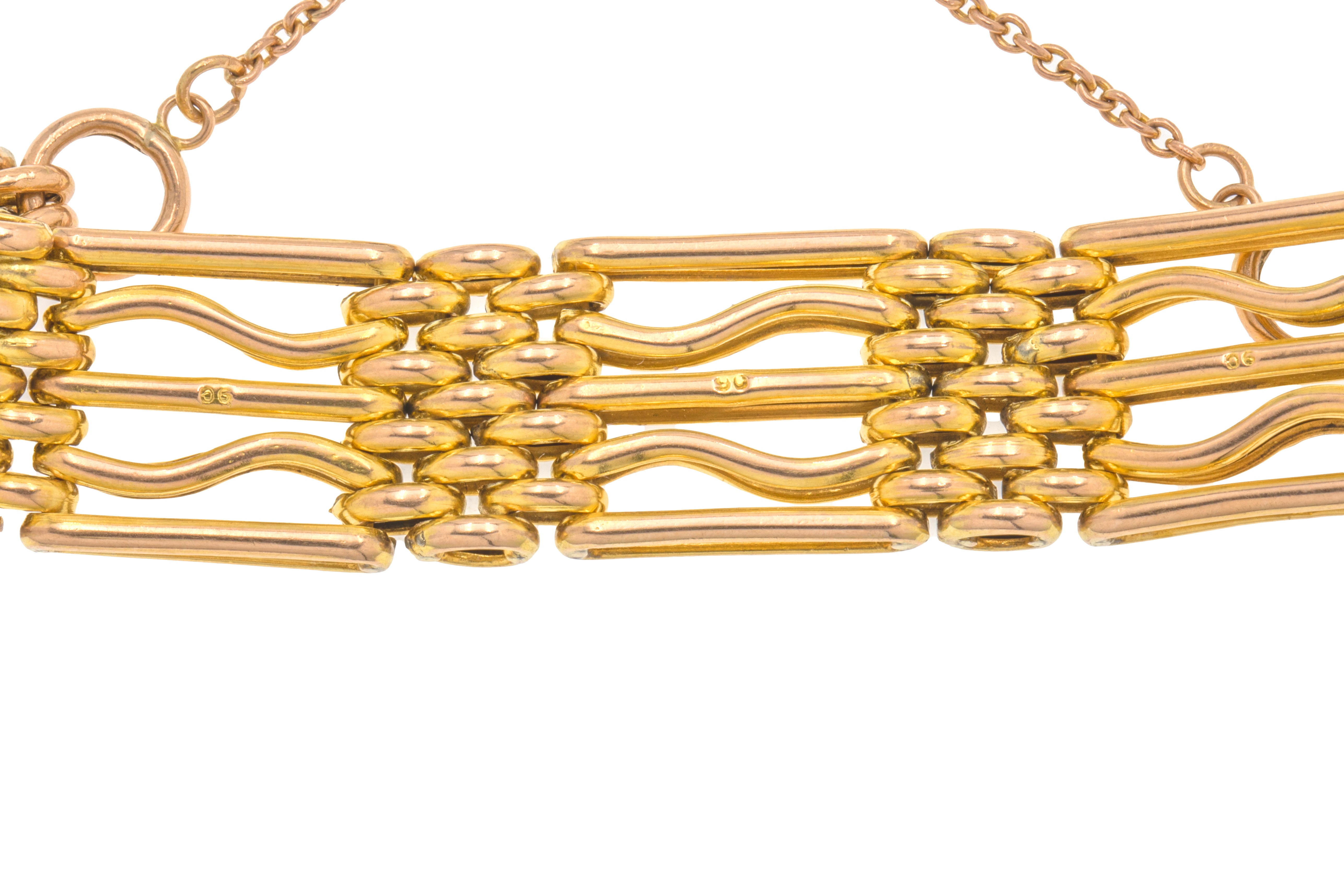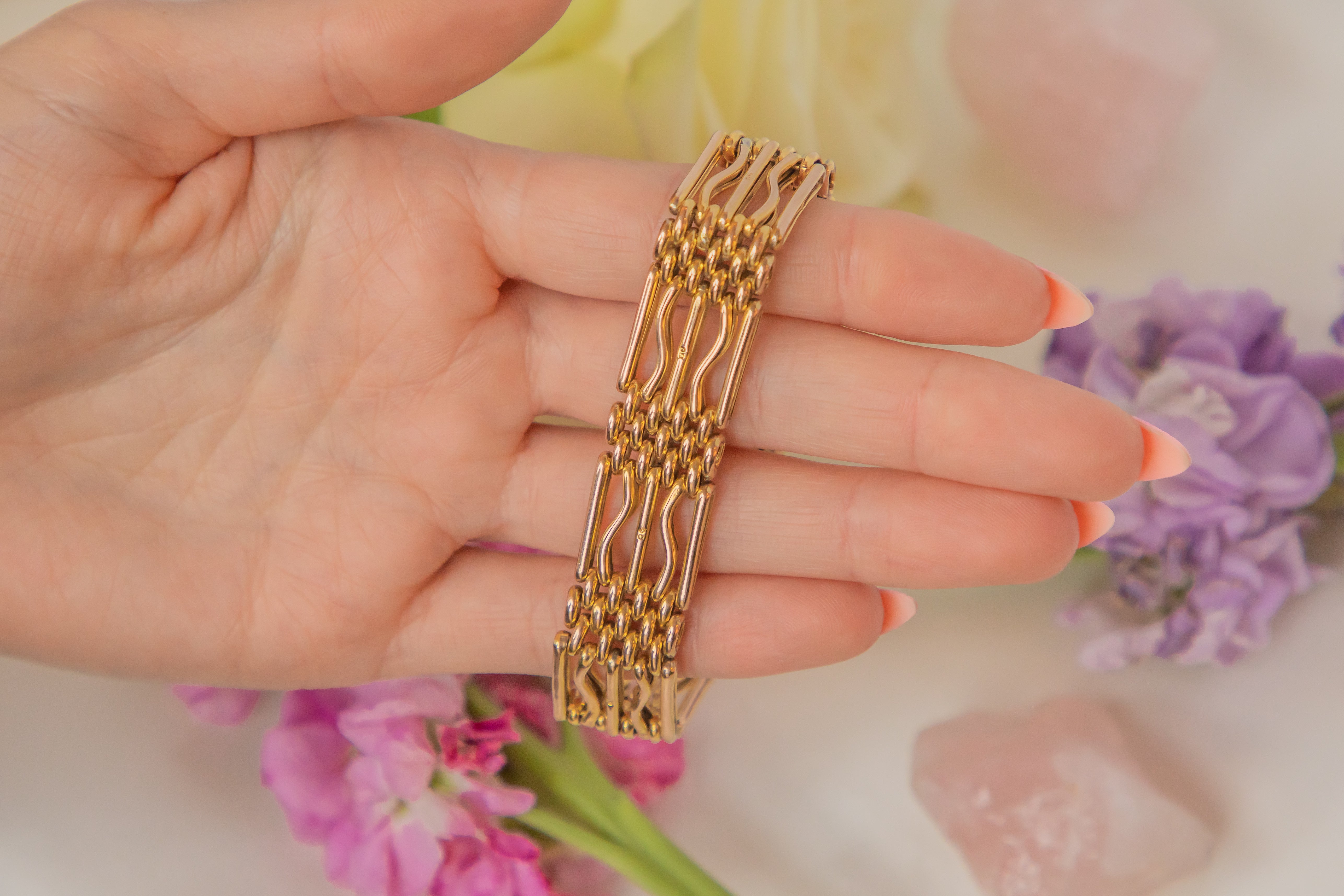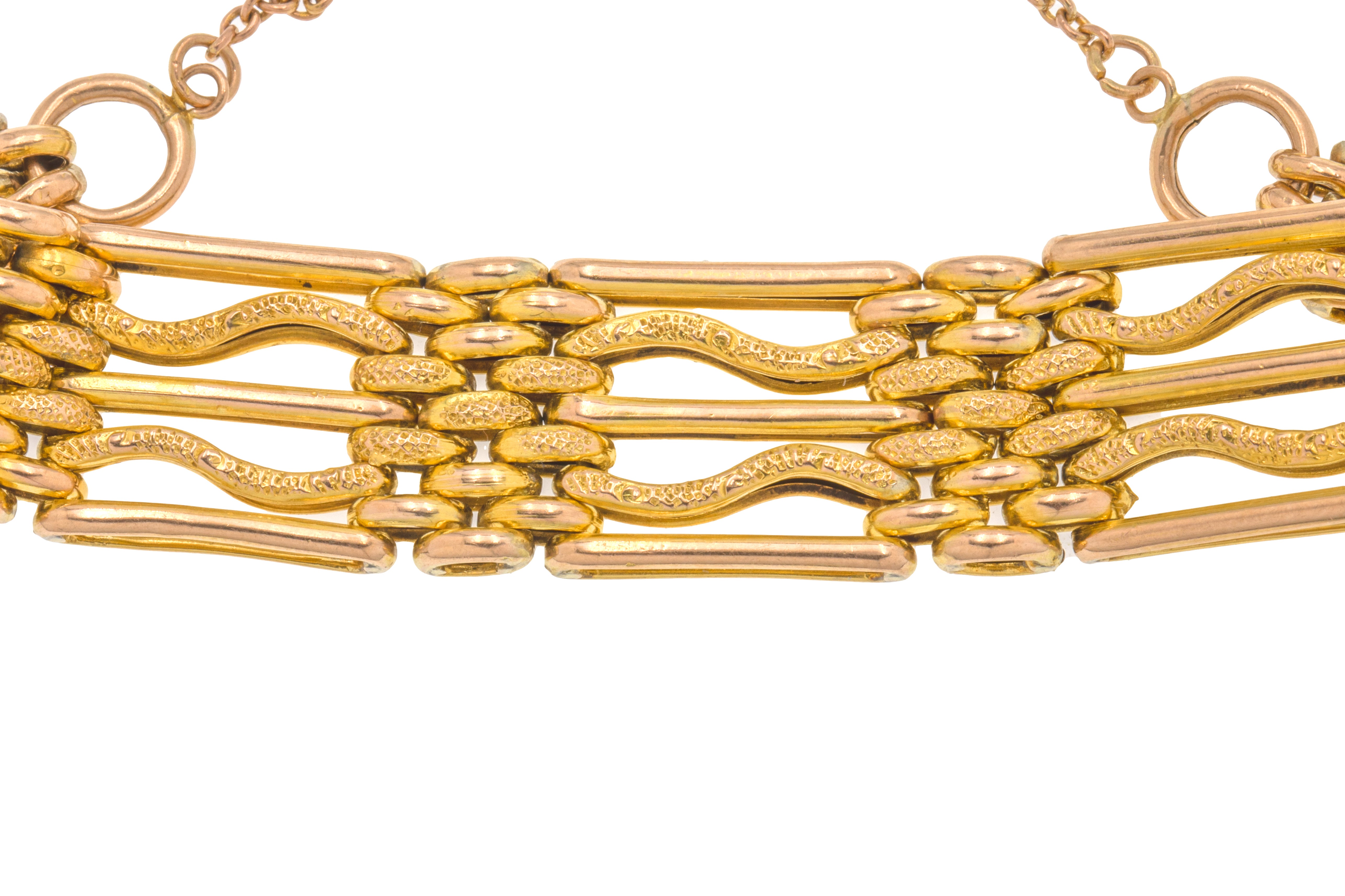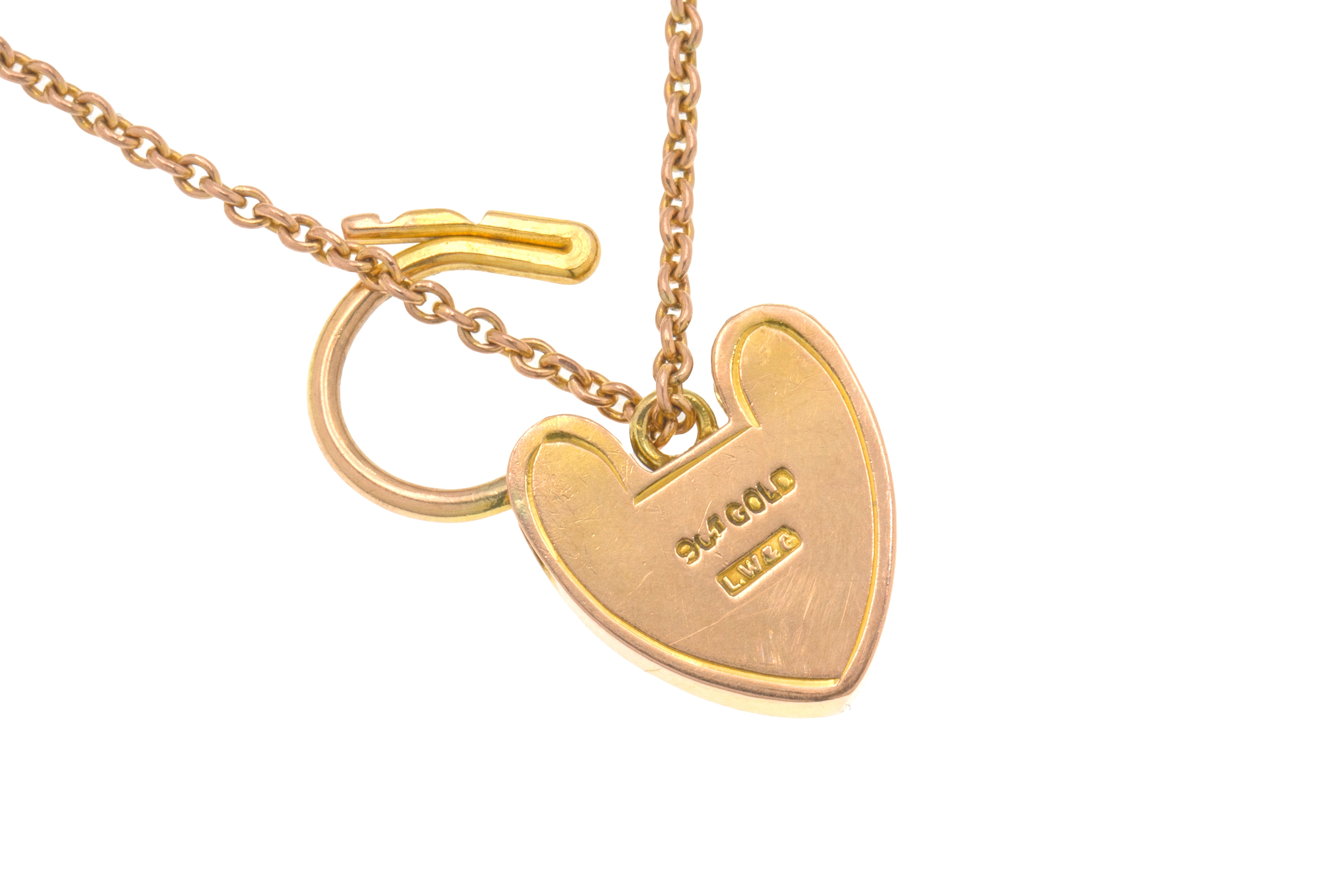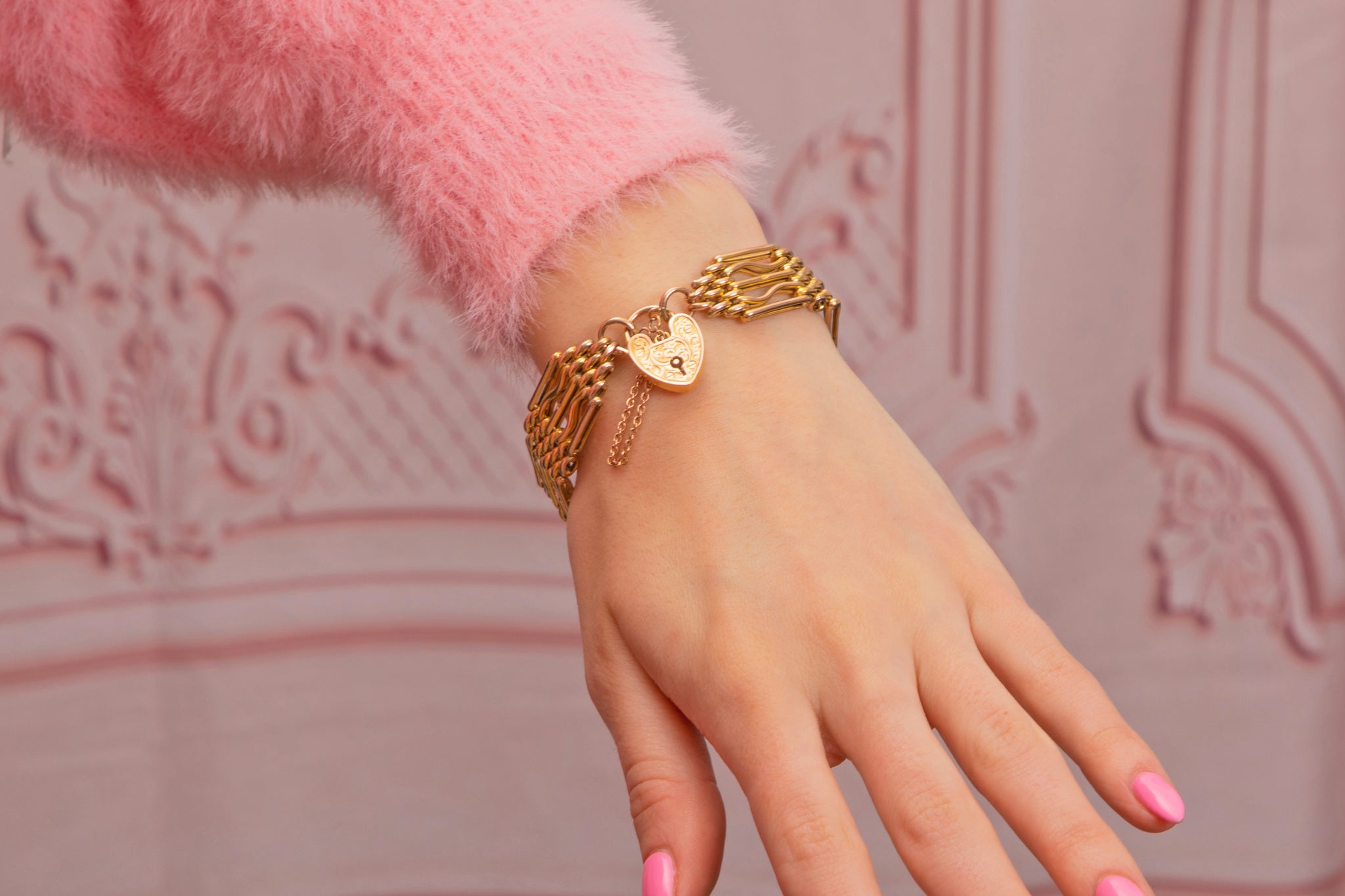 アンティーク 9ct ゴールド ゲート ブレスレット、彫刻入りハートパドロック、16.5g