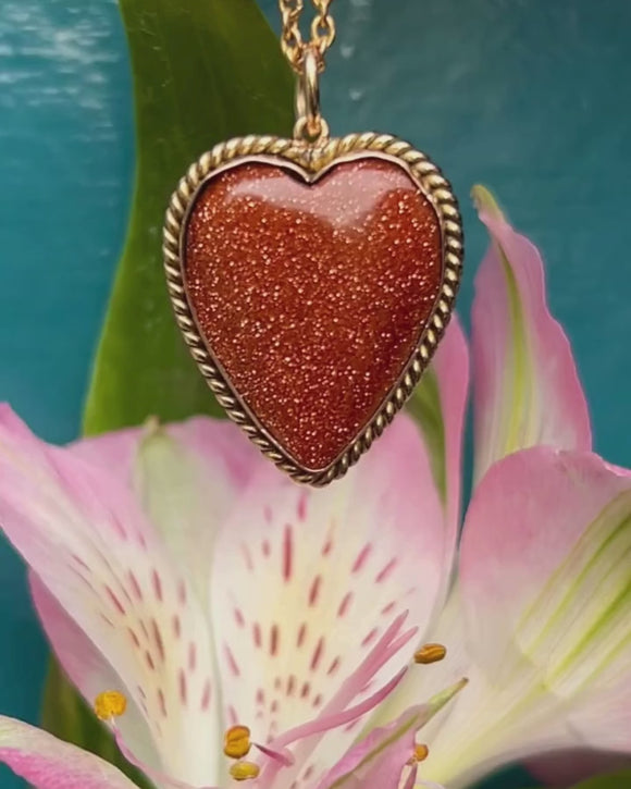 アンティーク 9ct ゴールド ゴールドストーン ハート ペンダント
