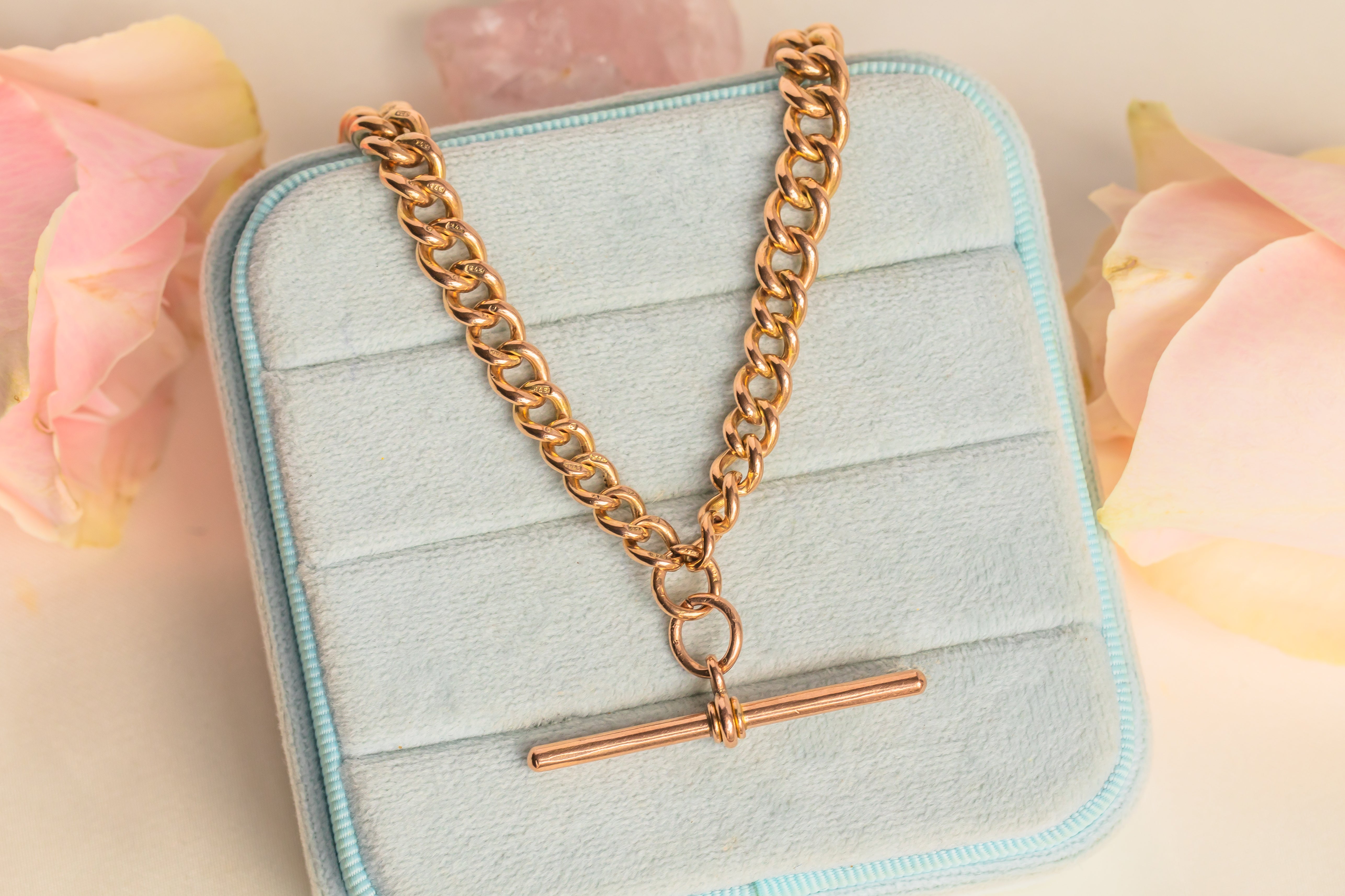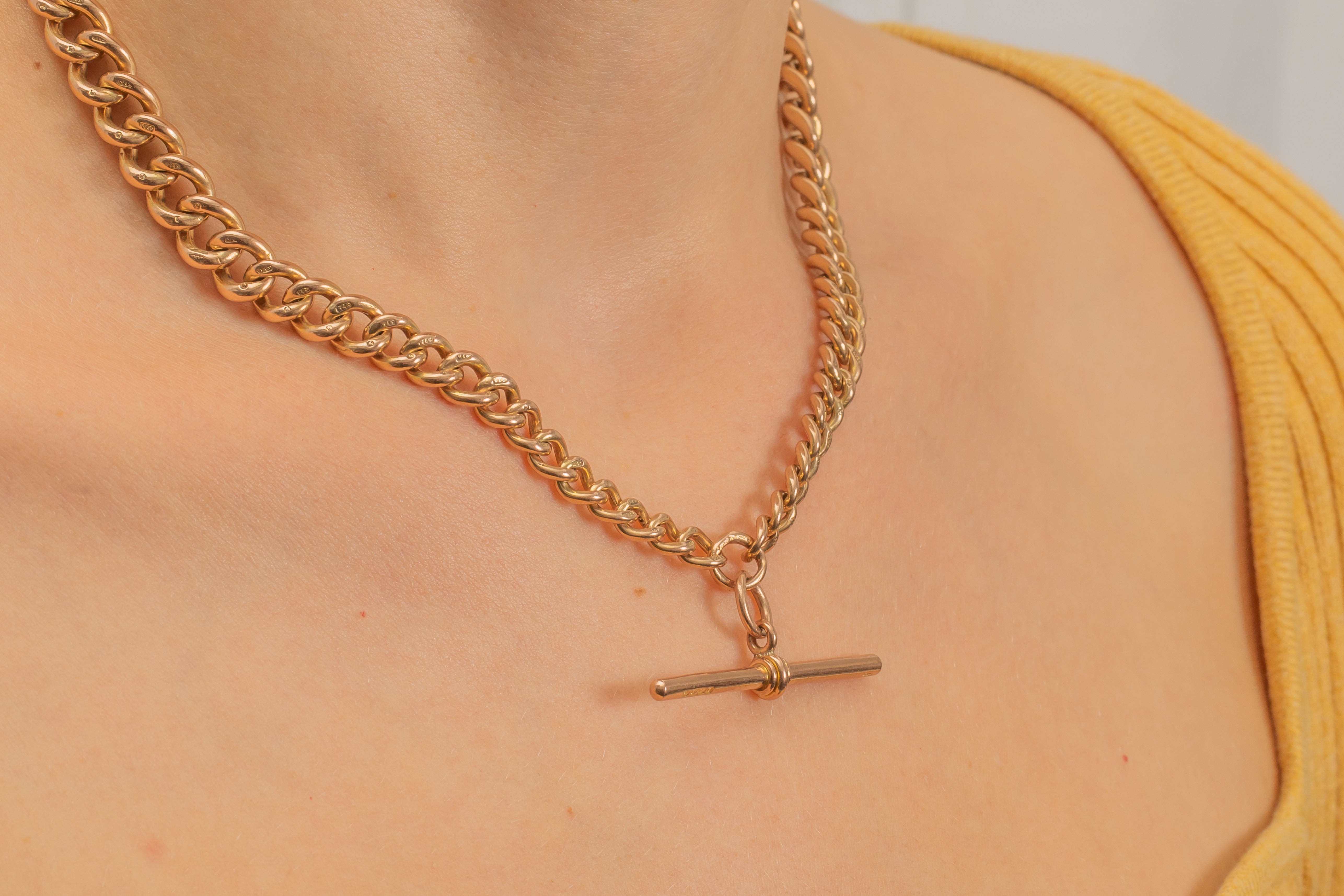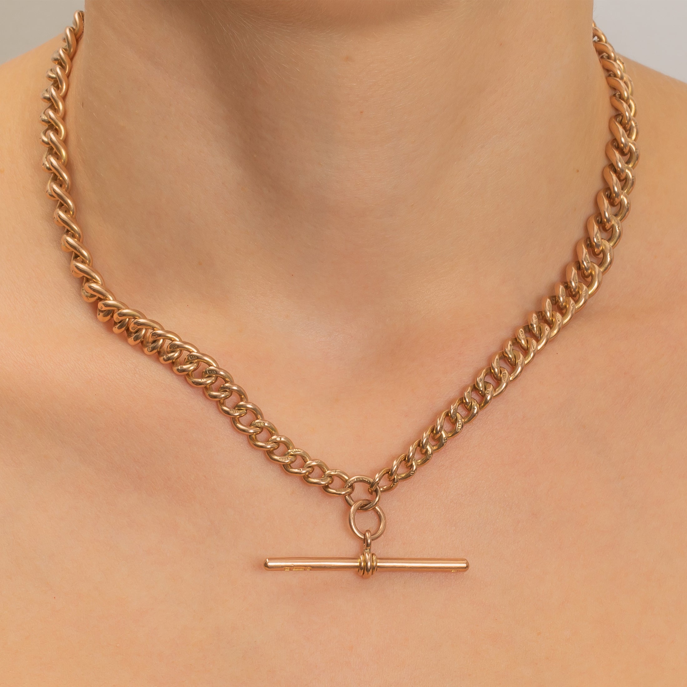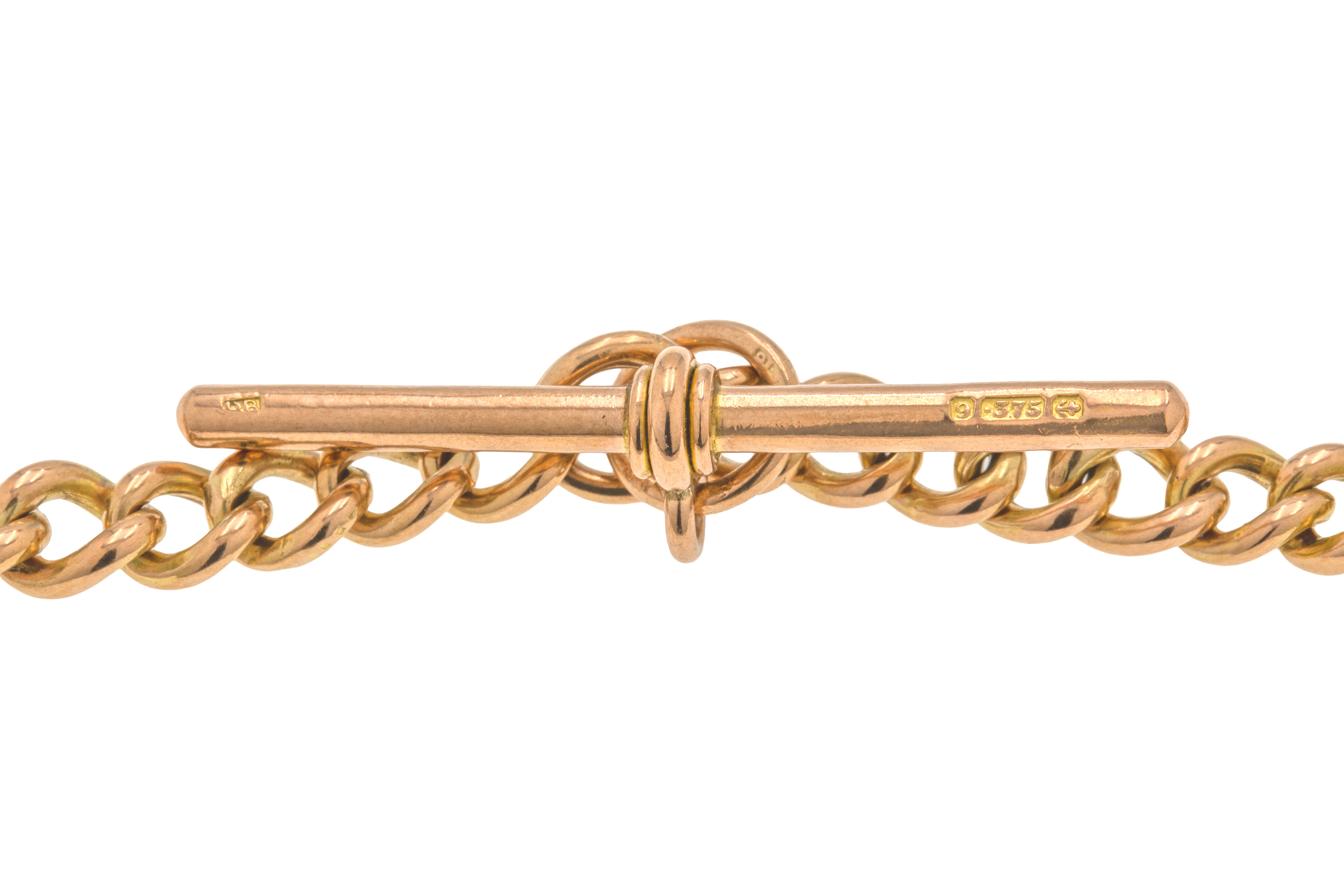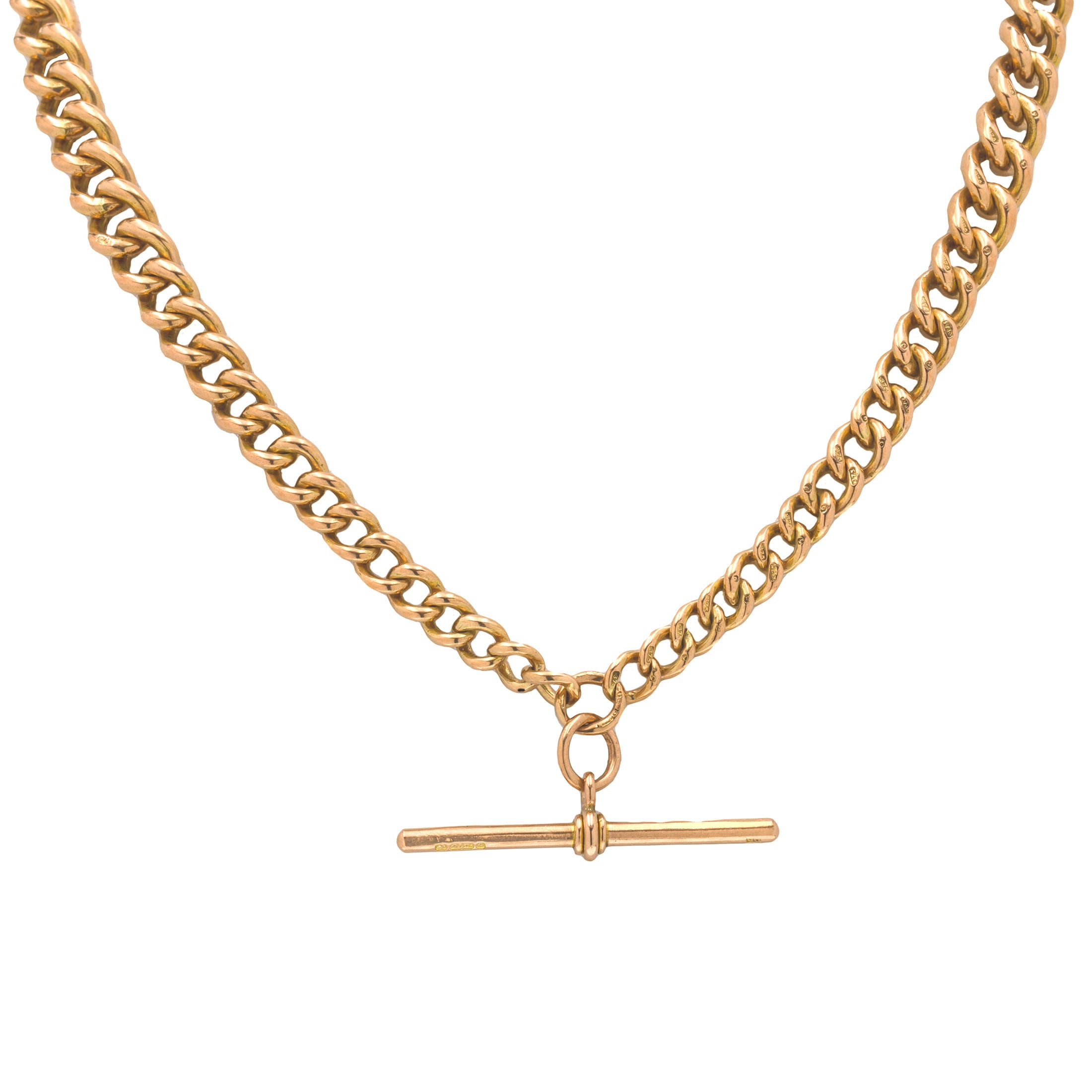 16インチ アンティーク 9カラット ゴールド グラデュエイティング アルバートチェーン、Tバー付き(52g)