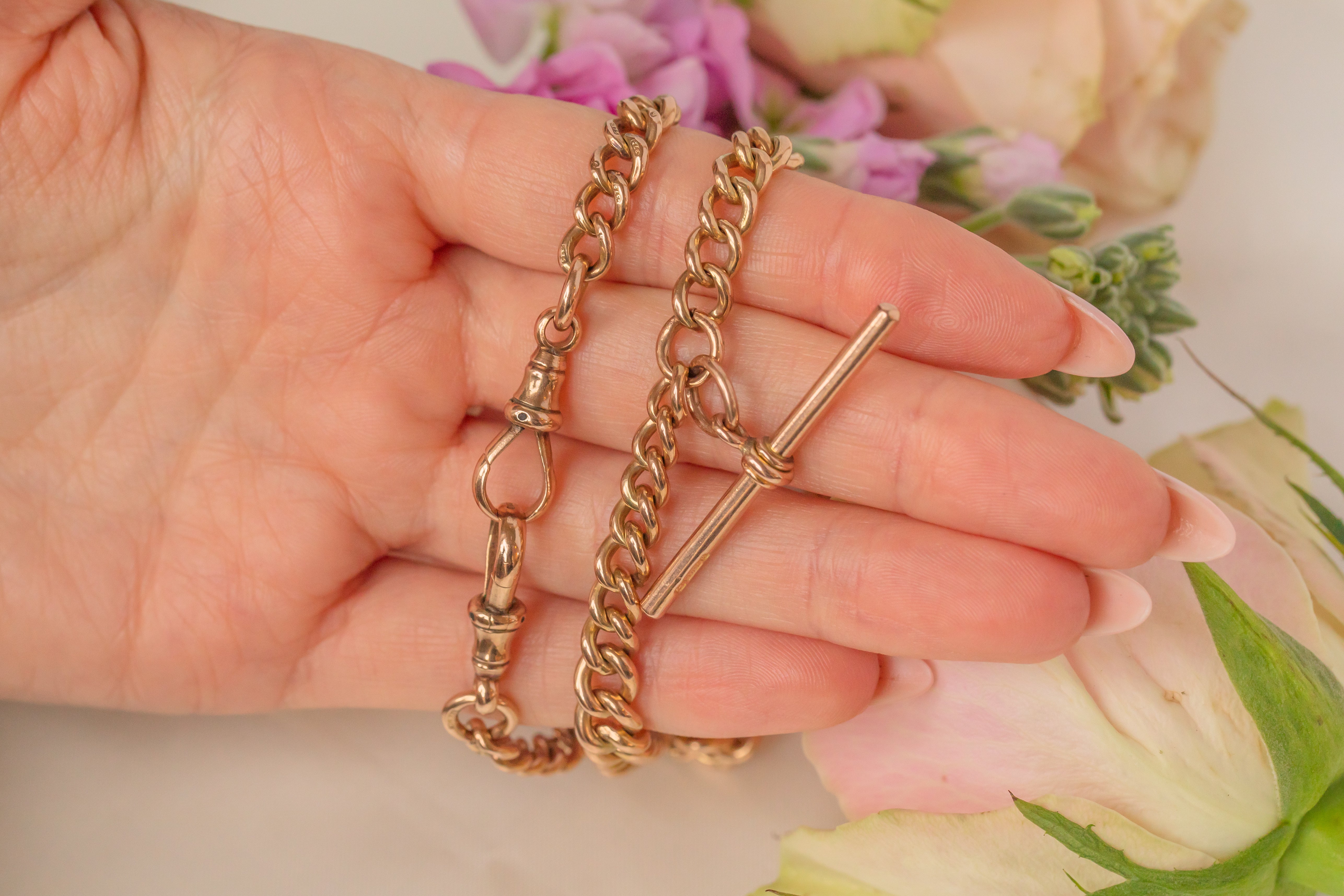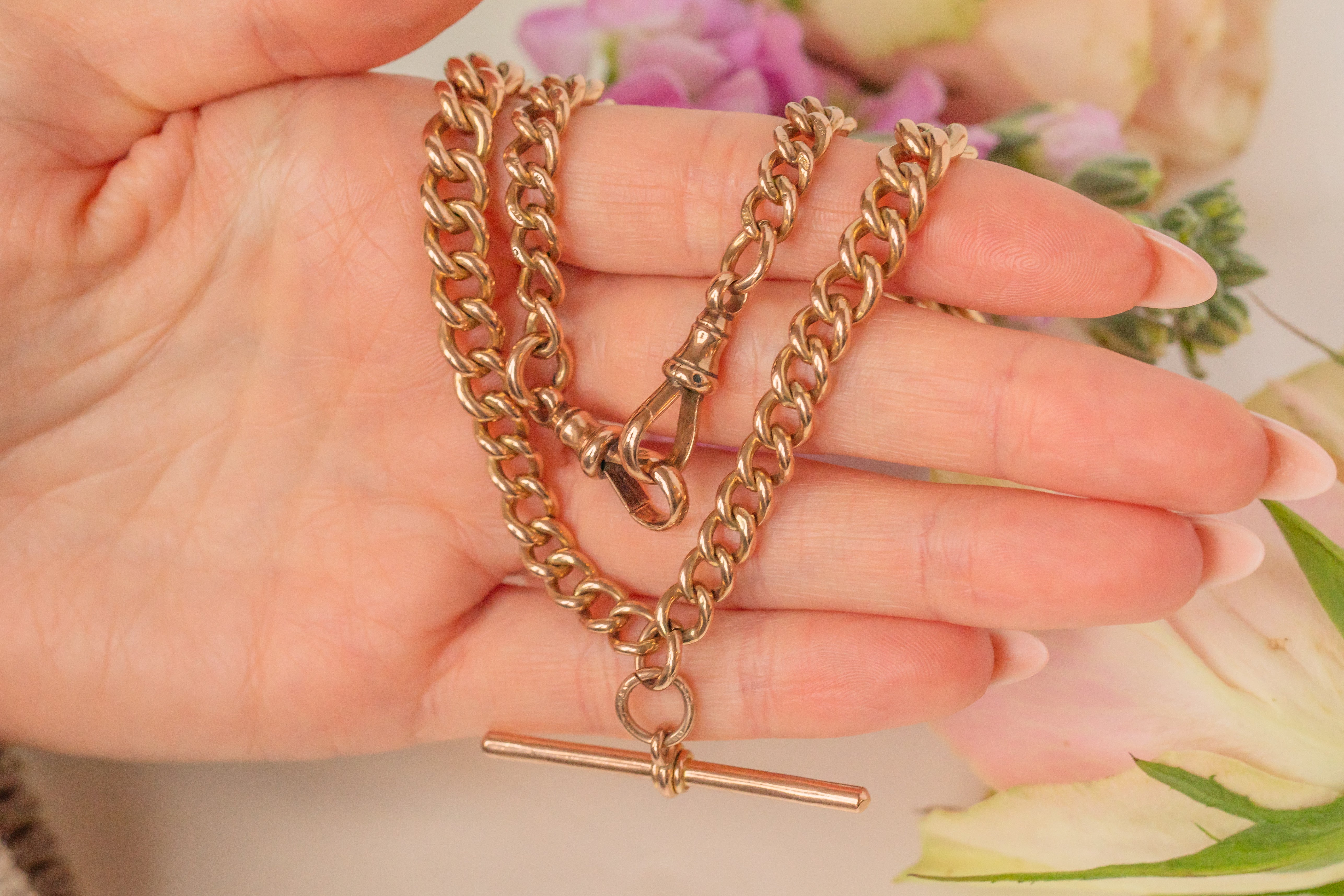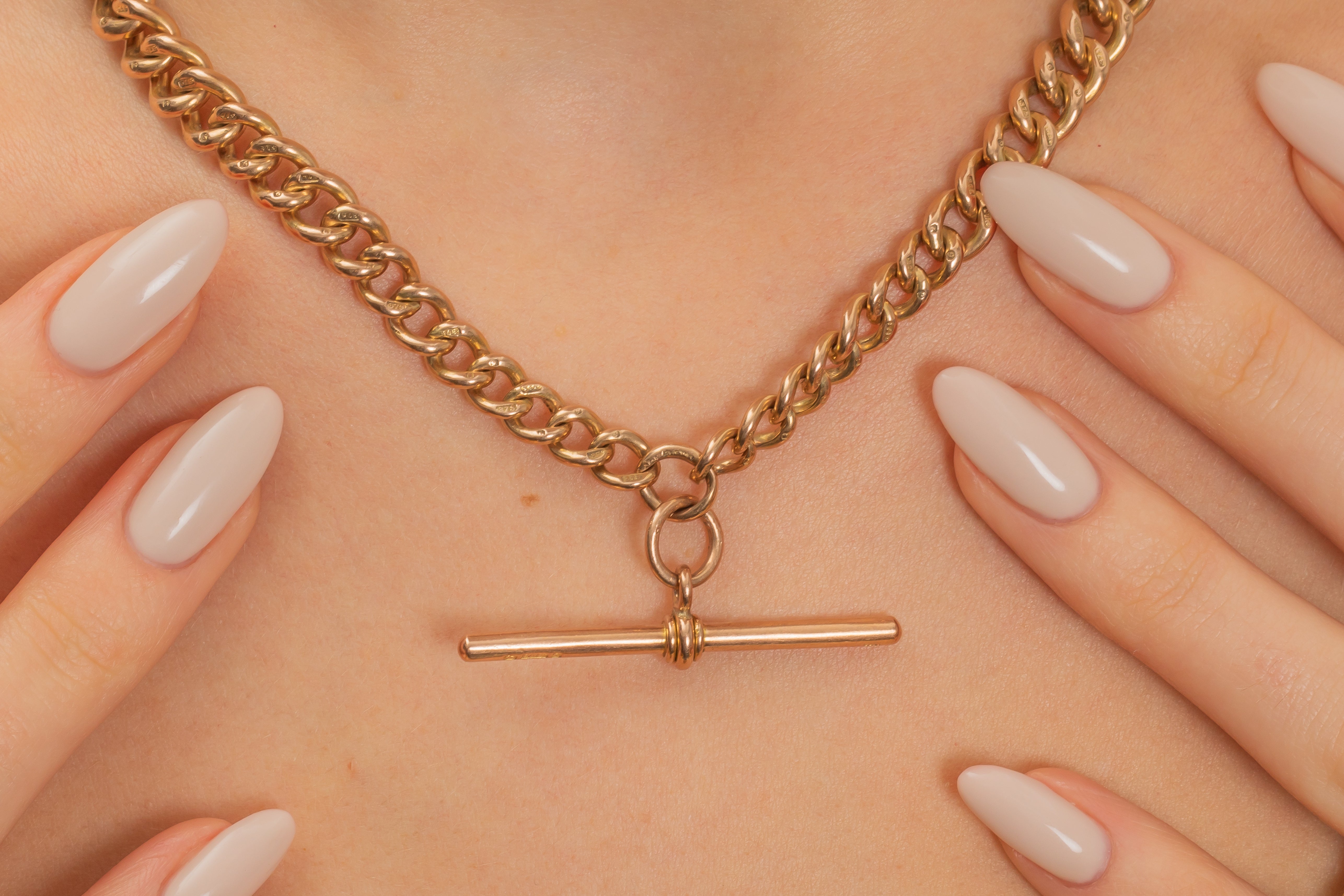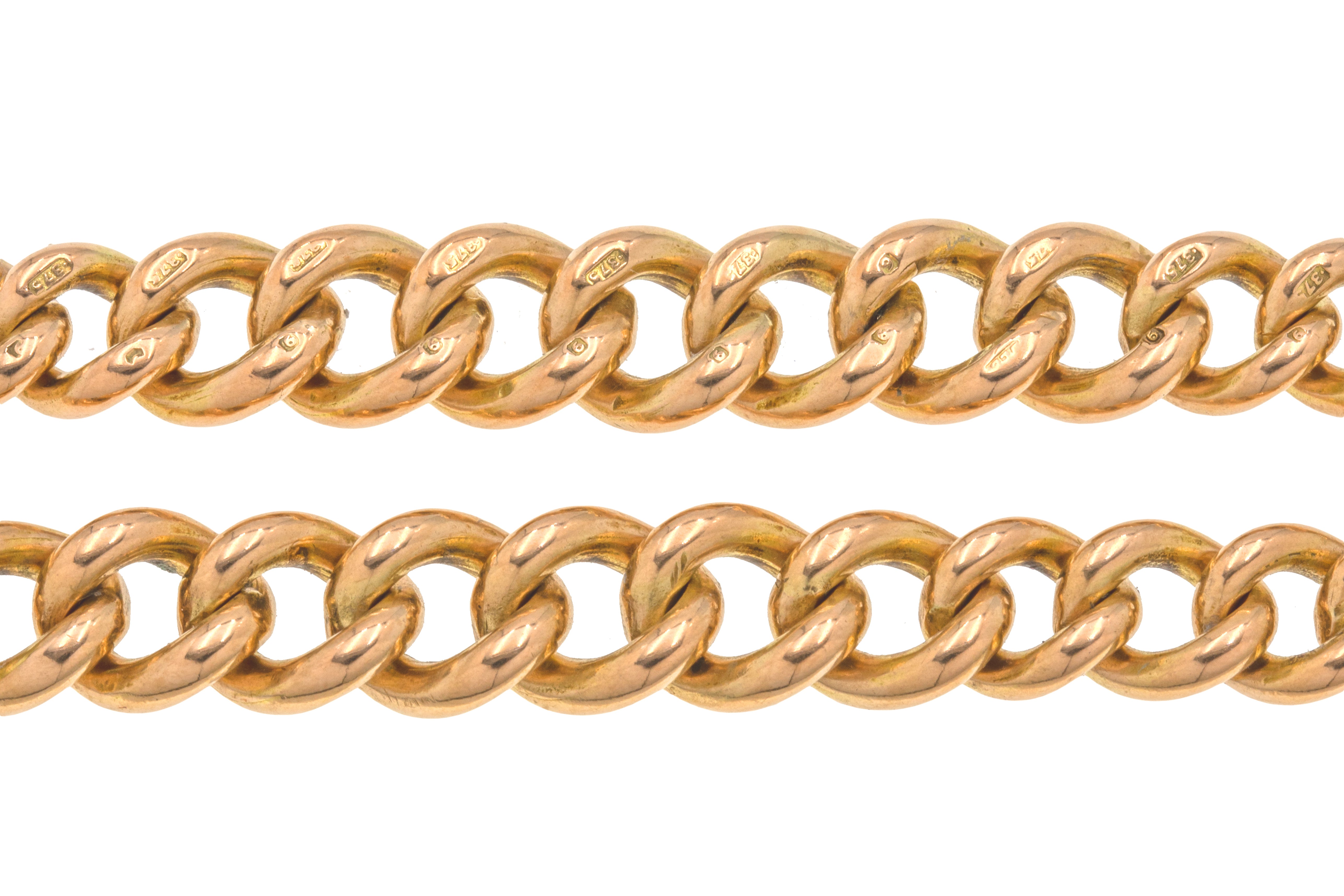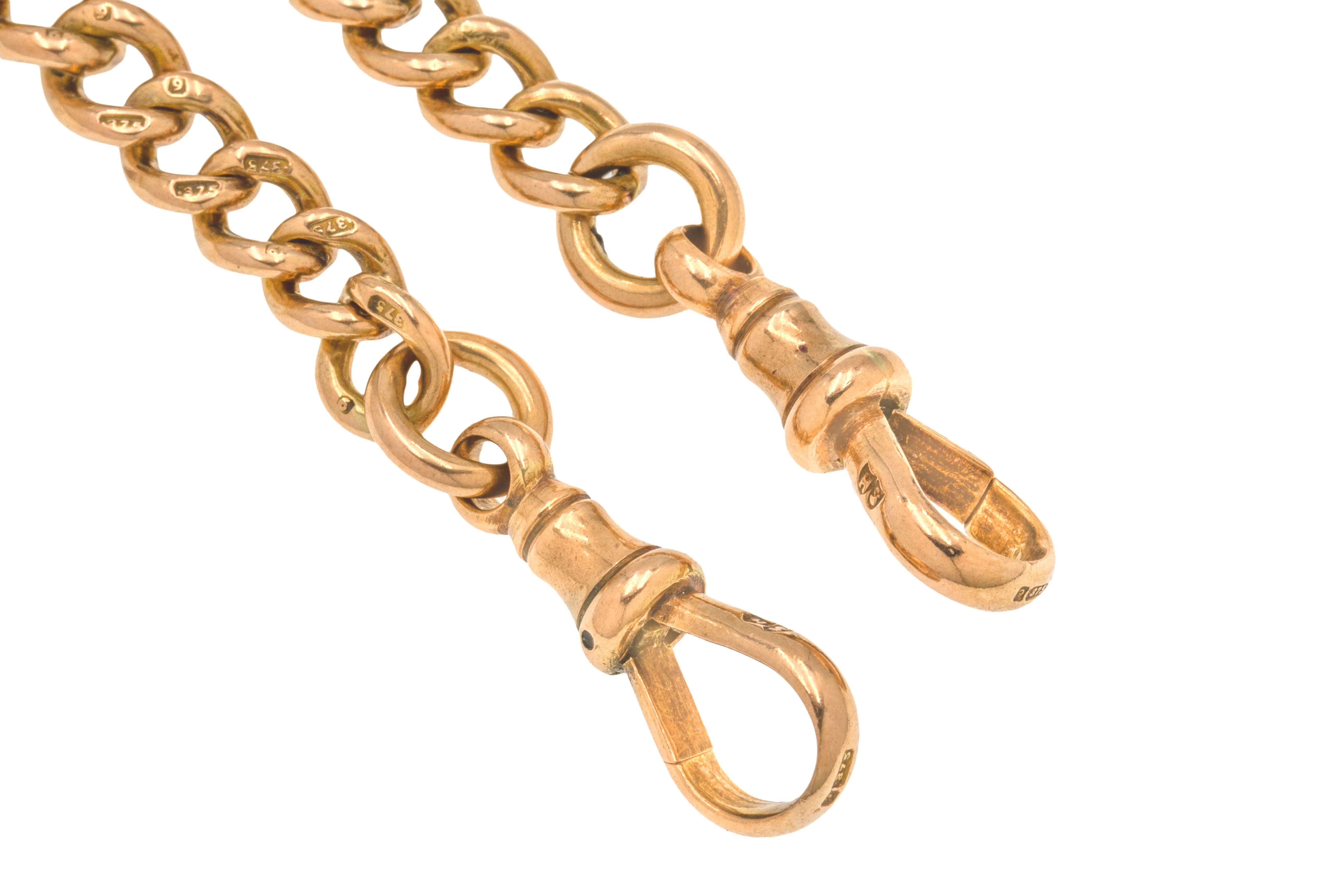 16インチ アンティーク 9カラット ゴールド グラデュエイティング アルバートチェーン、Tバー付き(52g)