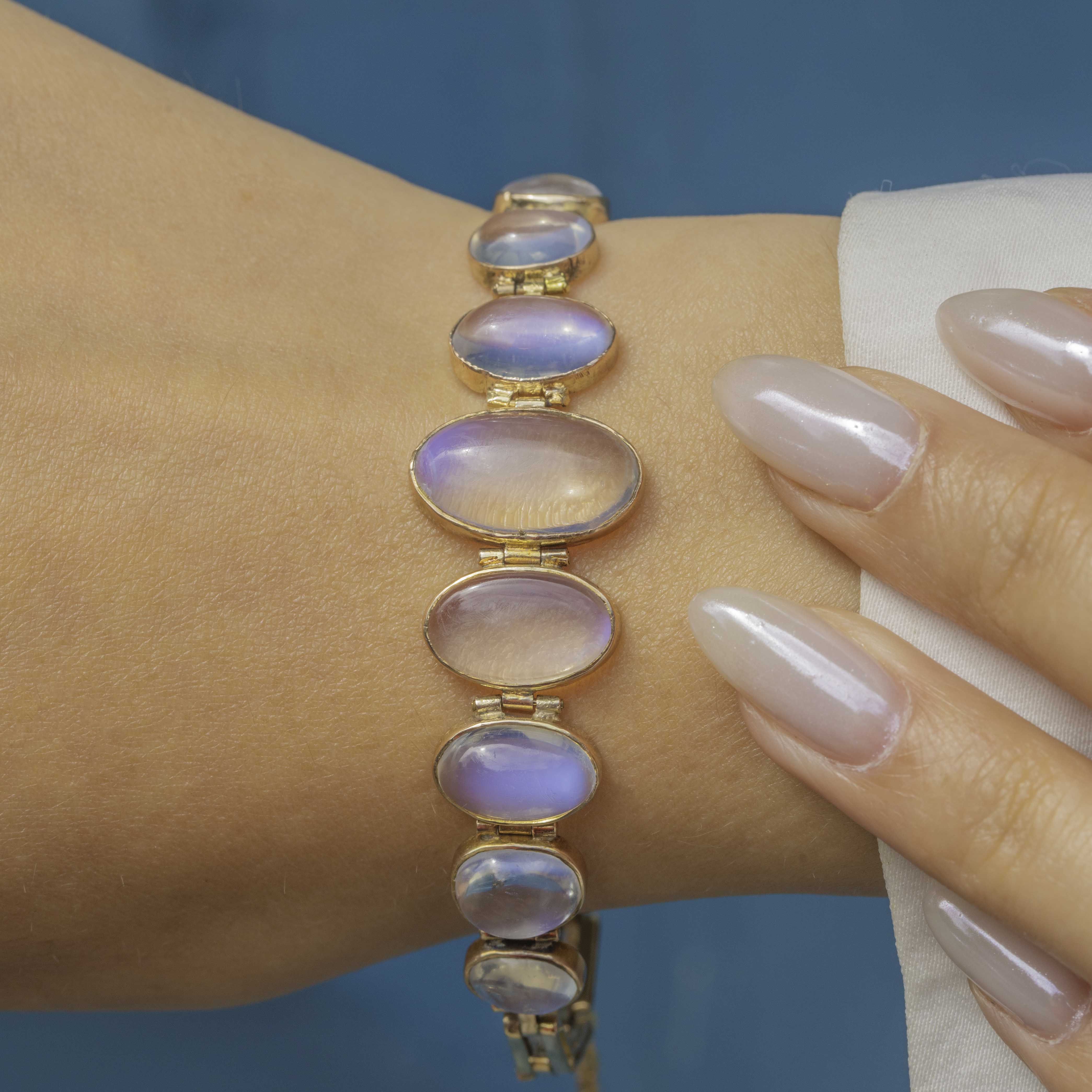Antique 9ct Gold Graduating Ceylon Moonstone Bracelet 8.45ct