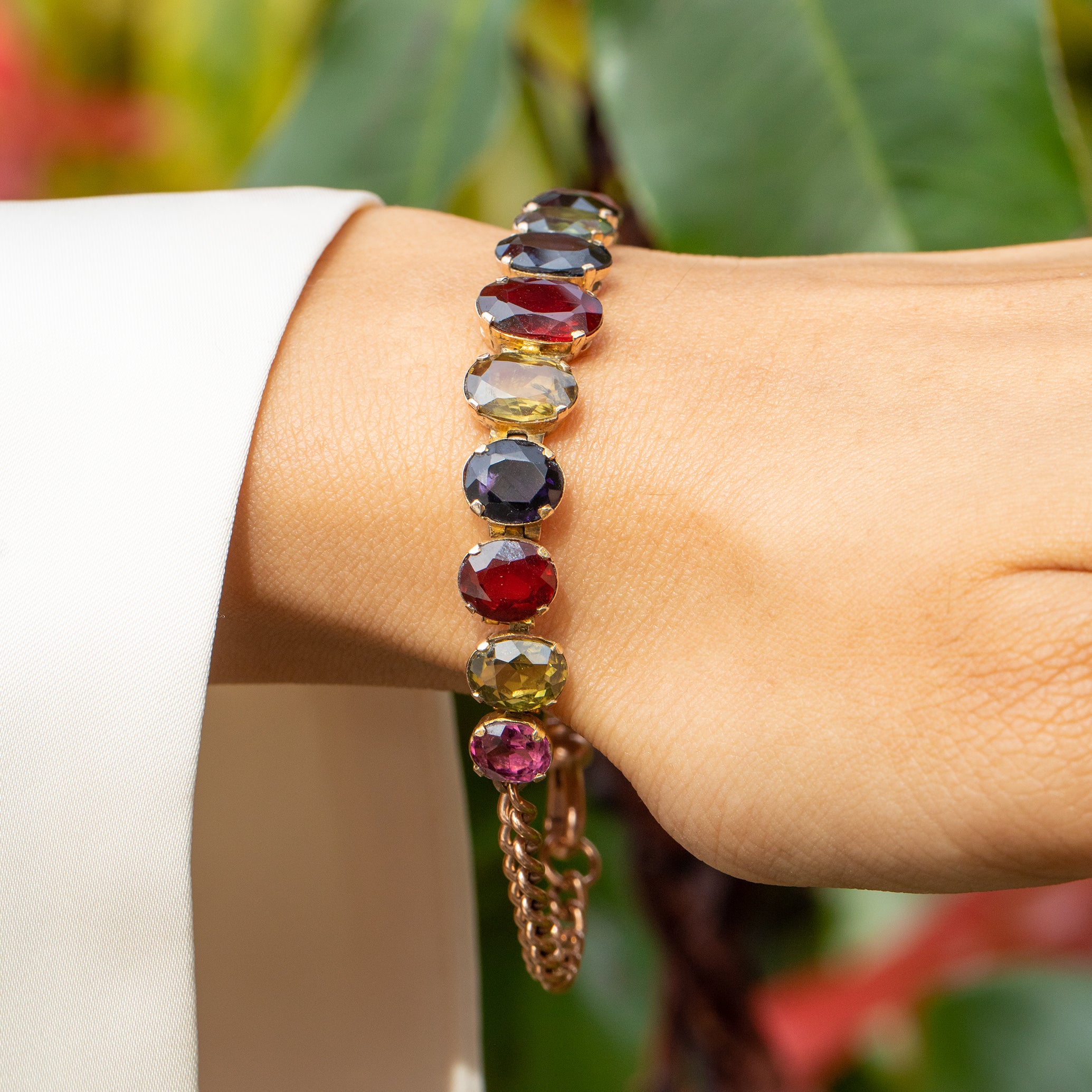 アンティーク 9ct ゴールド ハーレクイン 宝石 ブレスレット