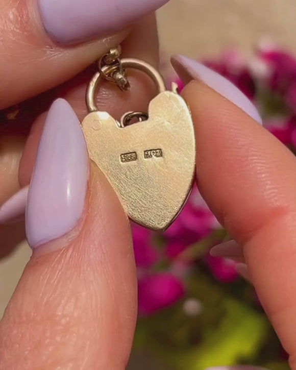 STAMPS: ' H.S' Makers mark & '9CT' on back of heart padlock.