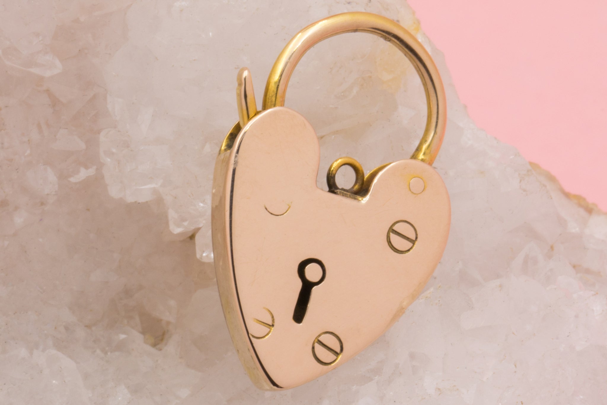 アンティーク 9ct ゴールド ハート パドロック ペンダント