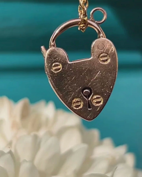 アンティーク 9ct ゴールド ハート パドロック ペンダント