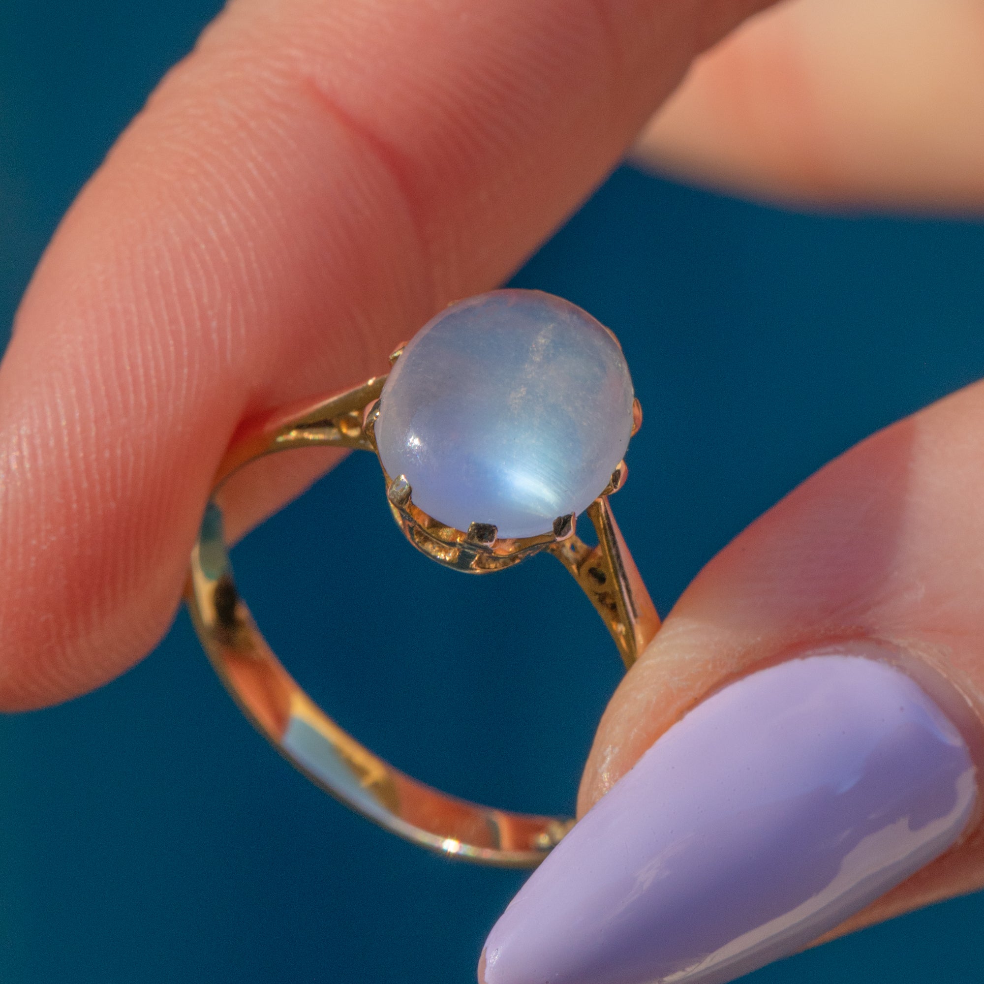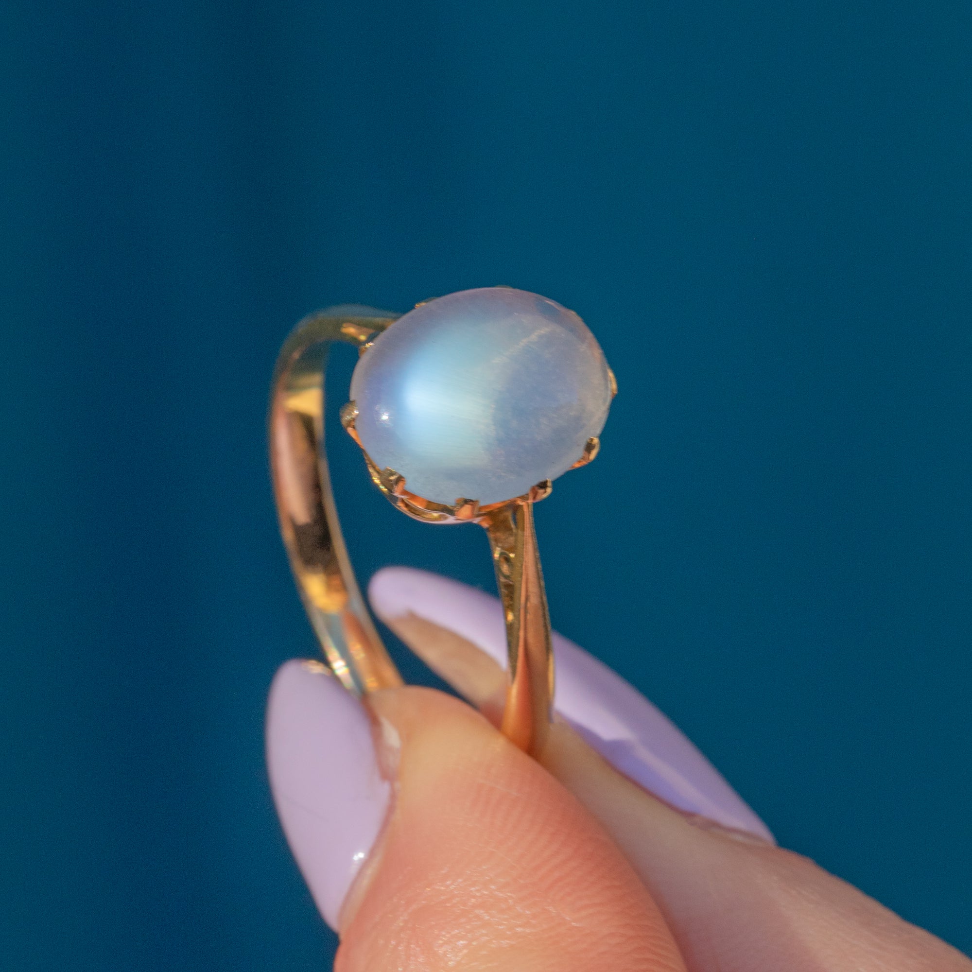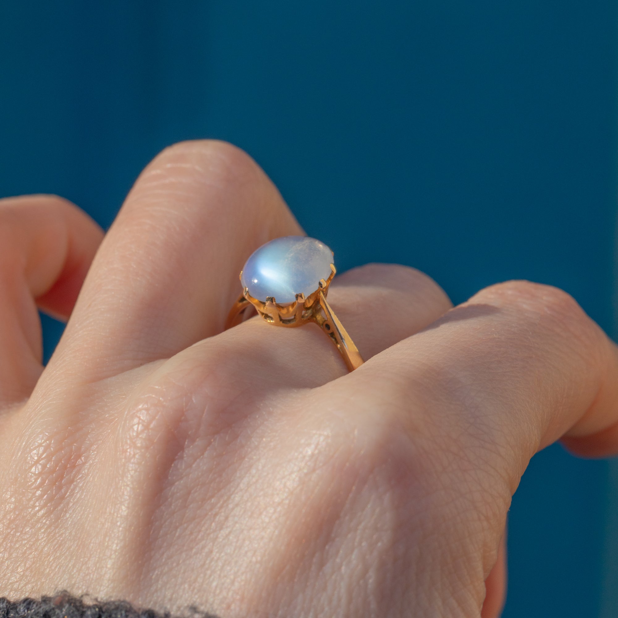 The captivating 2.75ct Moonstone cabochon is the true star of this show, with alluring curves and an ethereal adularescence that will enchant you; she's a wonderful everyday accessory and will make an impact whatever the occasion!