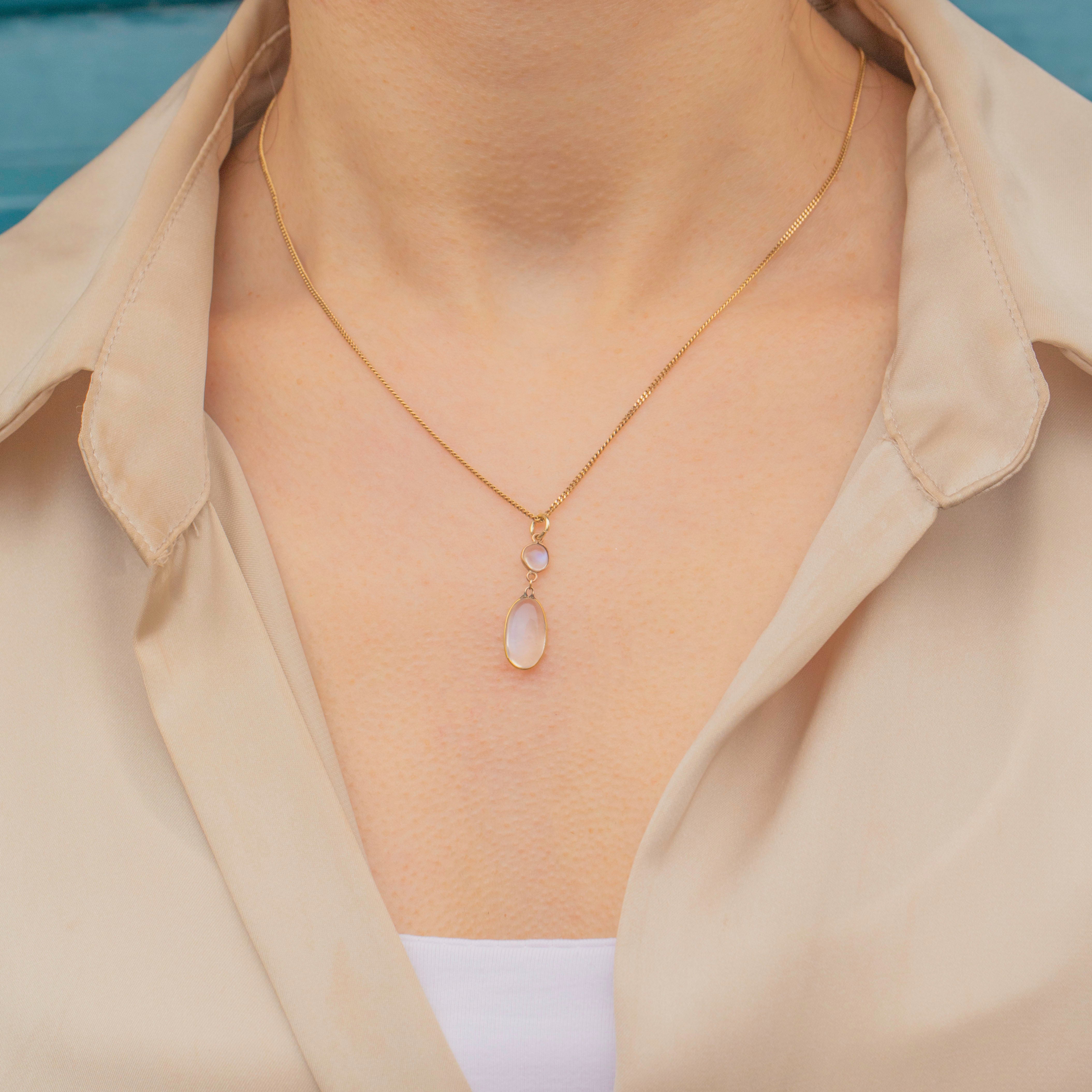 This antique 9ct Gold Moonstone drop pendant radiates celestial allure.