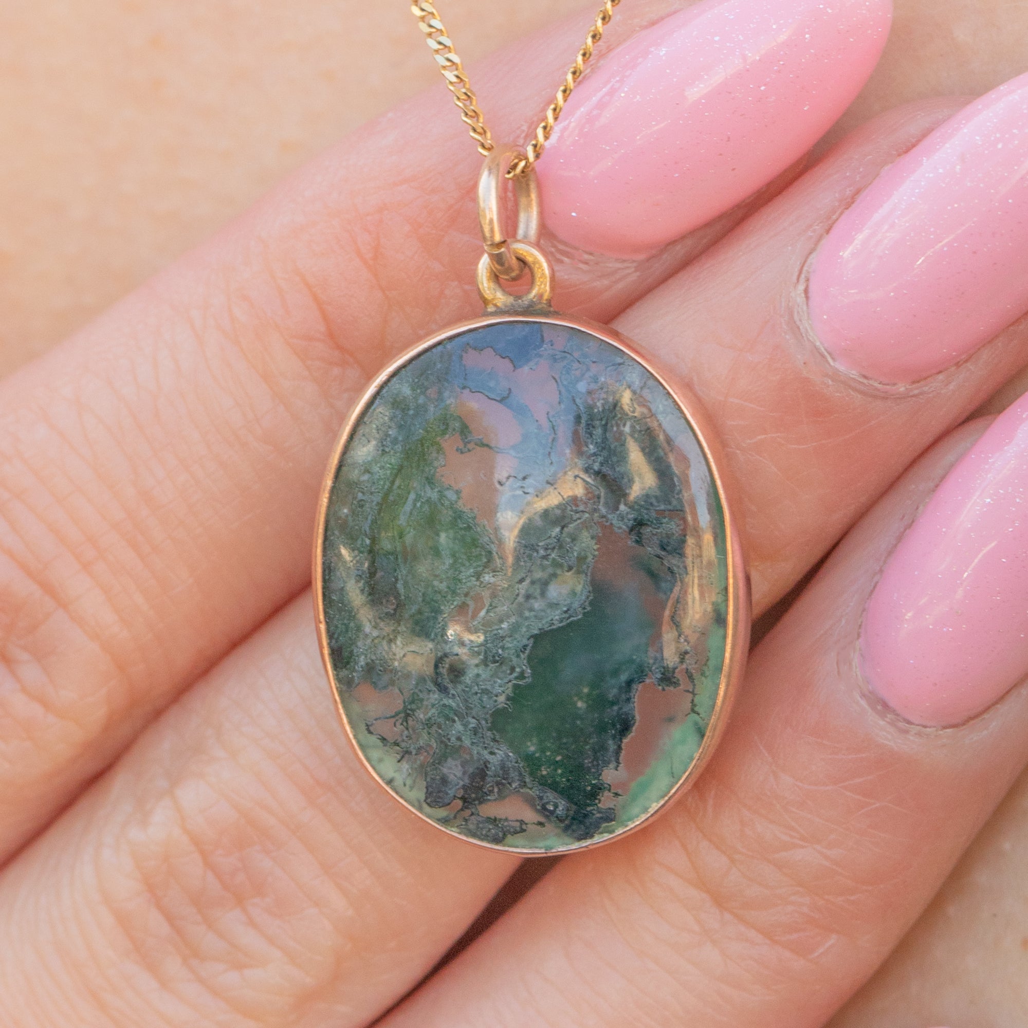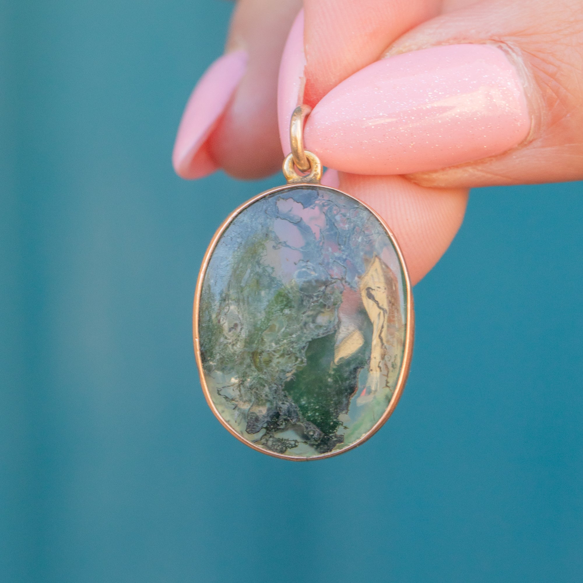 This antique 9ct Gold Moss Agate pendant is a delight!