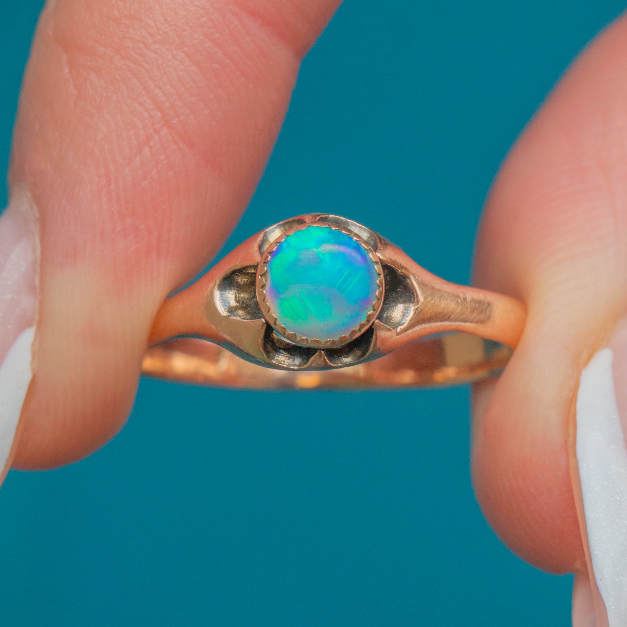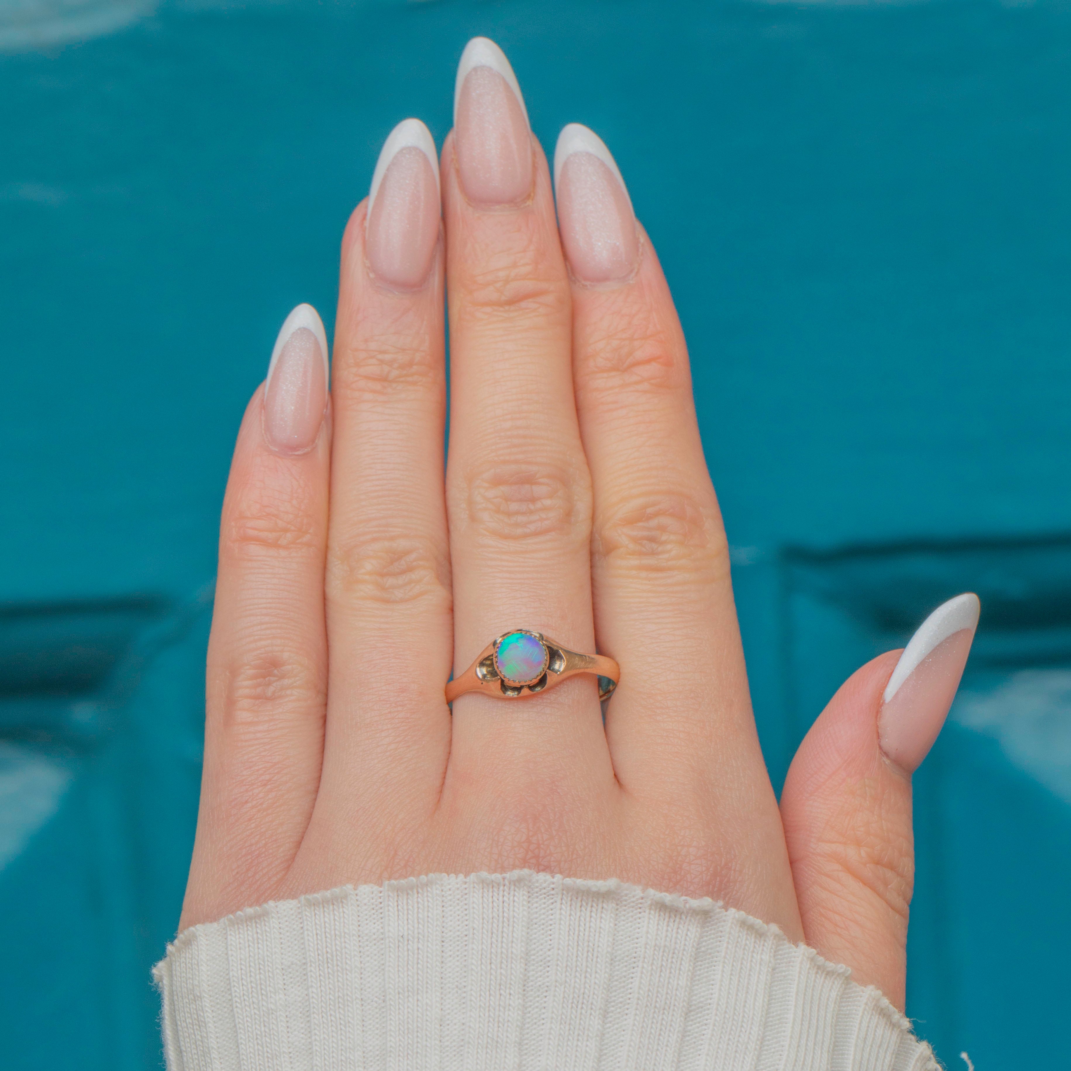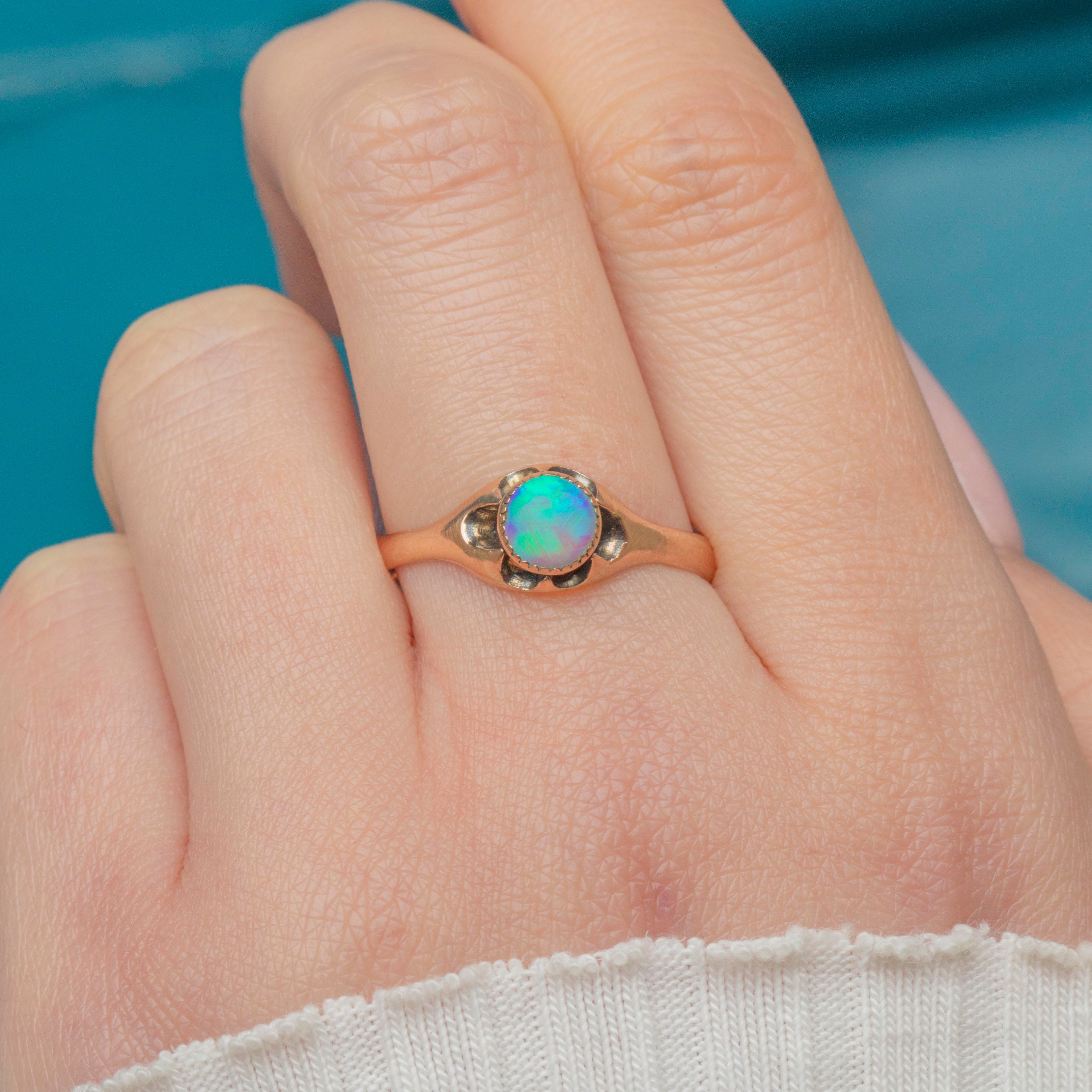 With warmth radiating from the rosy 9ct Gold, this Victorian Opal ring will pair well with your other antique pieces!