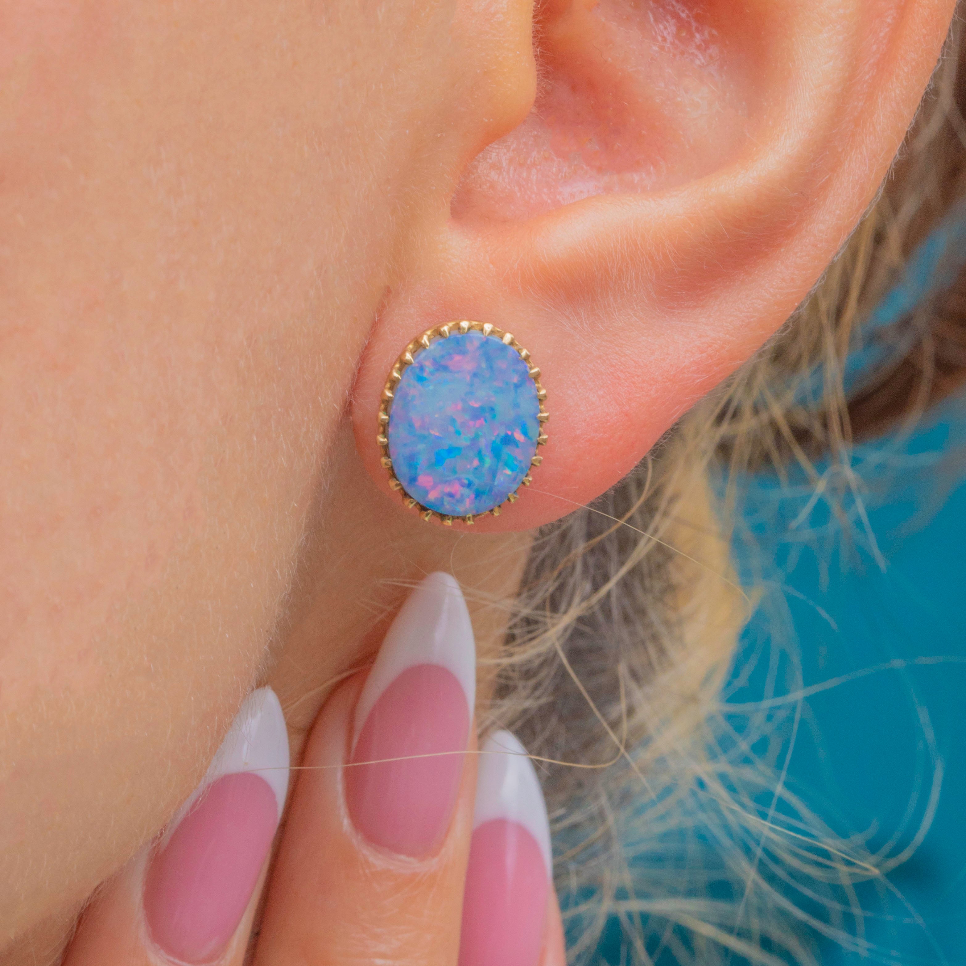 Each Opal is set in bright 9ct Gold claws, providing an elegant and refined finish. Ideal for everyday wear, these Victorian studs are the perfect pair to add a bold pop of colour to your lobes.