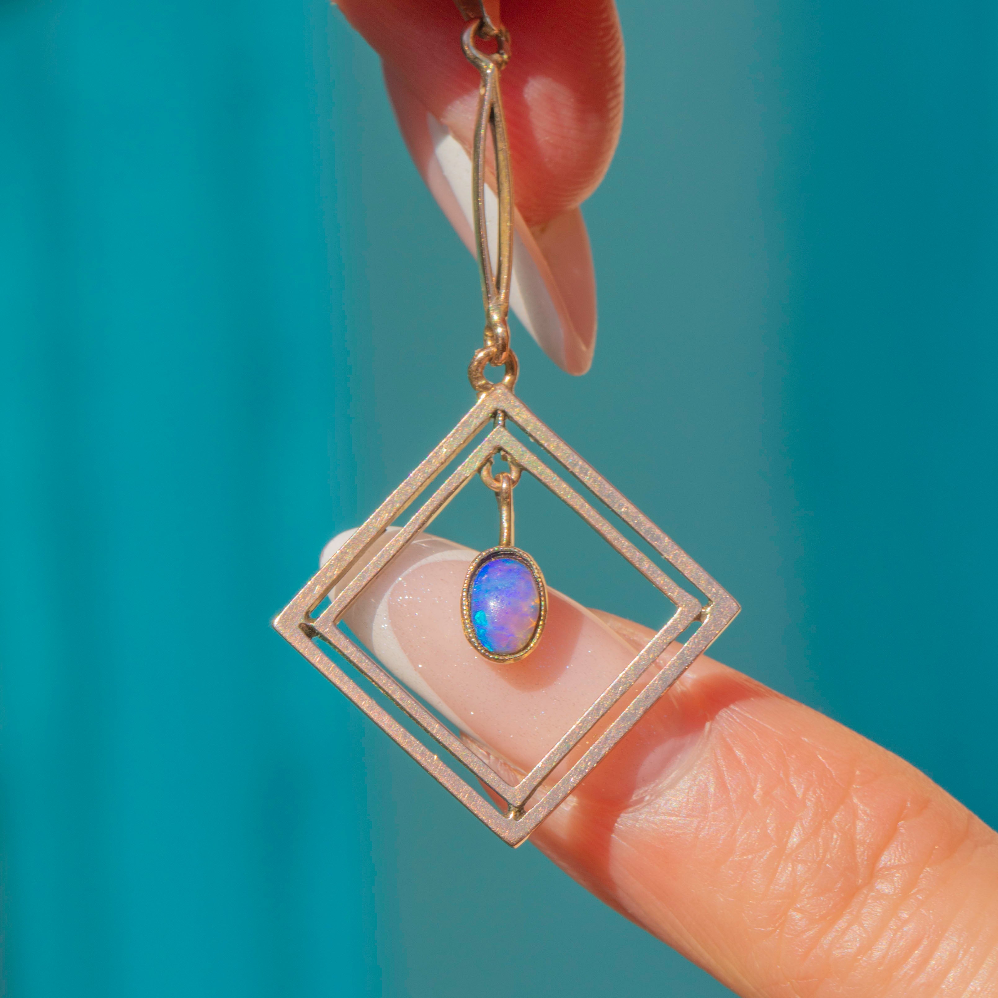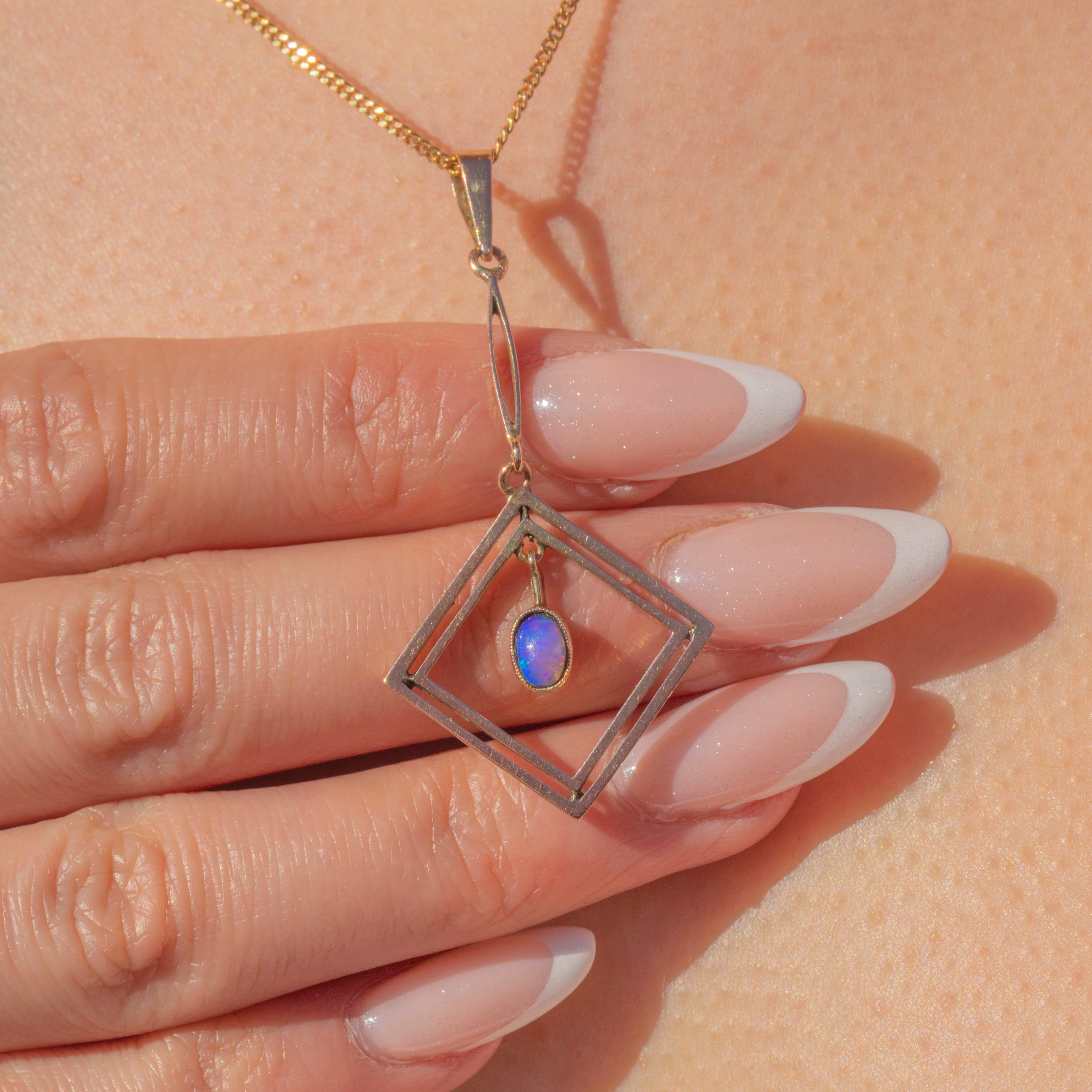This antique 9ct Gold Jelly Opal drop pendant has an intriguing design that draws in the eye.
