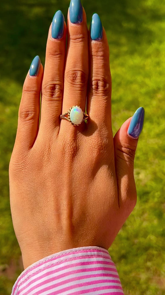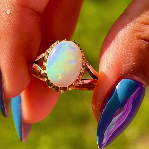 アンティーク 9ct ゴールド オパール ソリティア リング、0.54ct