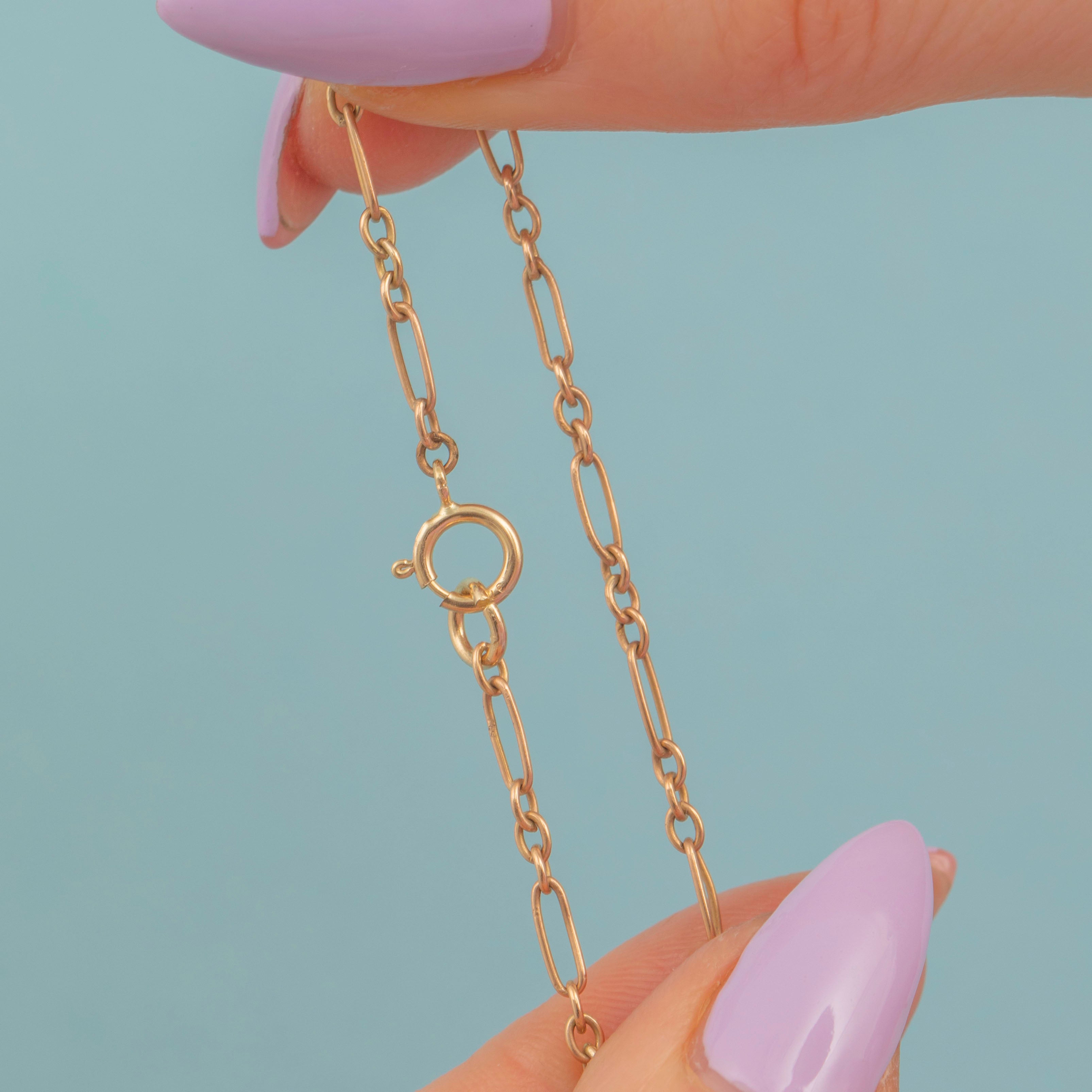 This antique 9ct Gold paperclip link chain is just superb! The 17" length is made up of dainty and smooth paperclip links; this dreamy Victorian chain will rest across your décolletage with grace.
