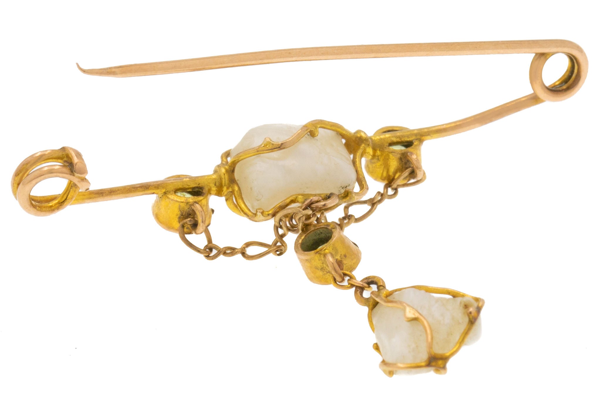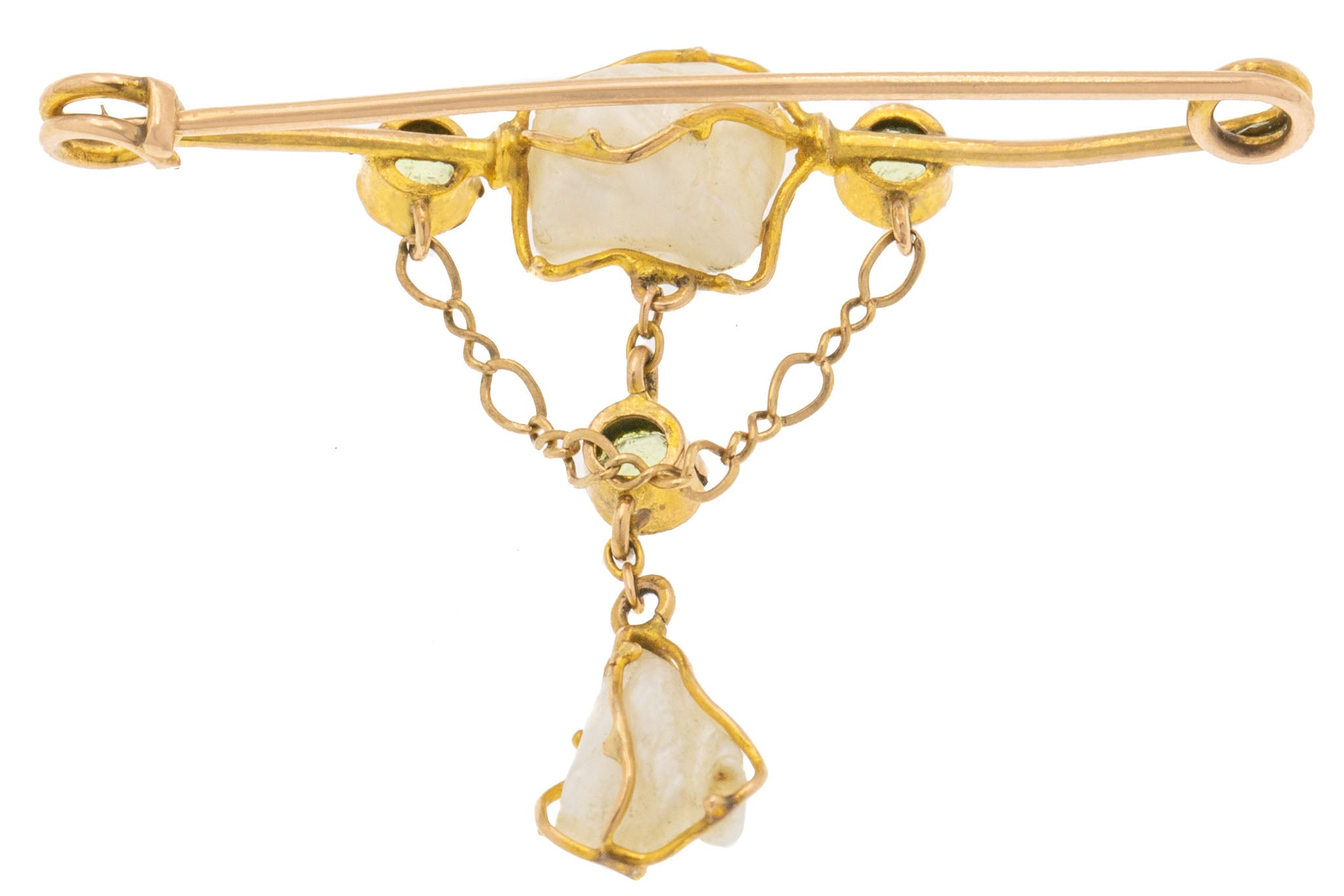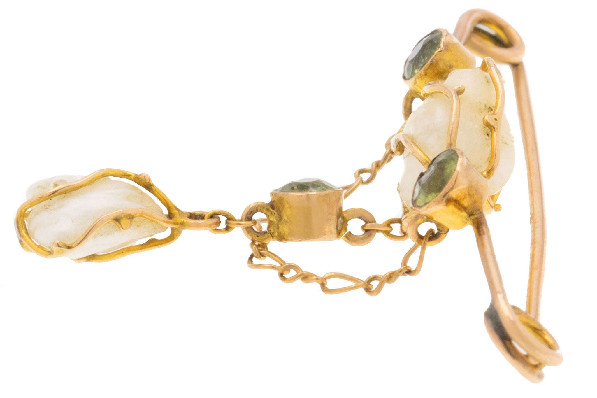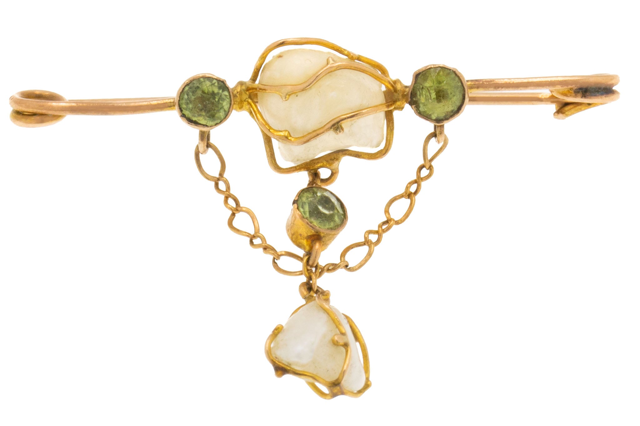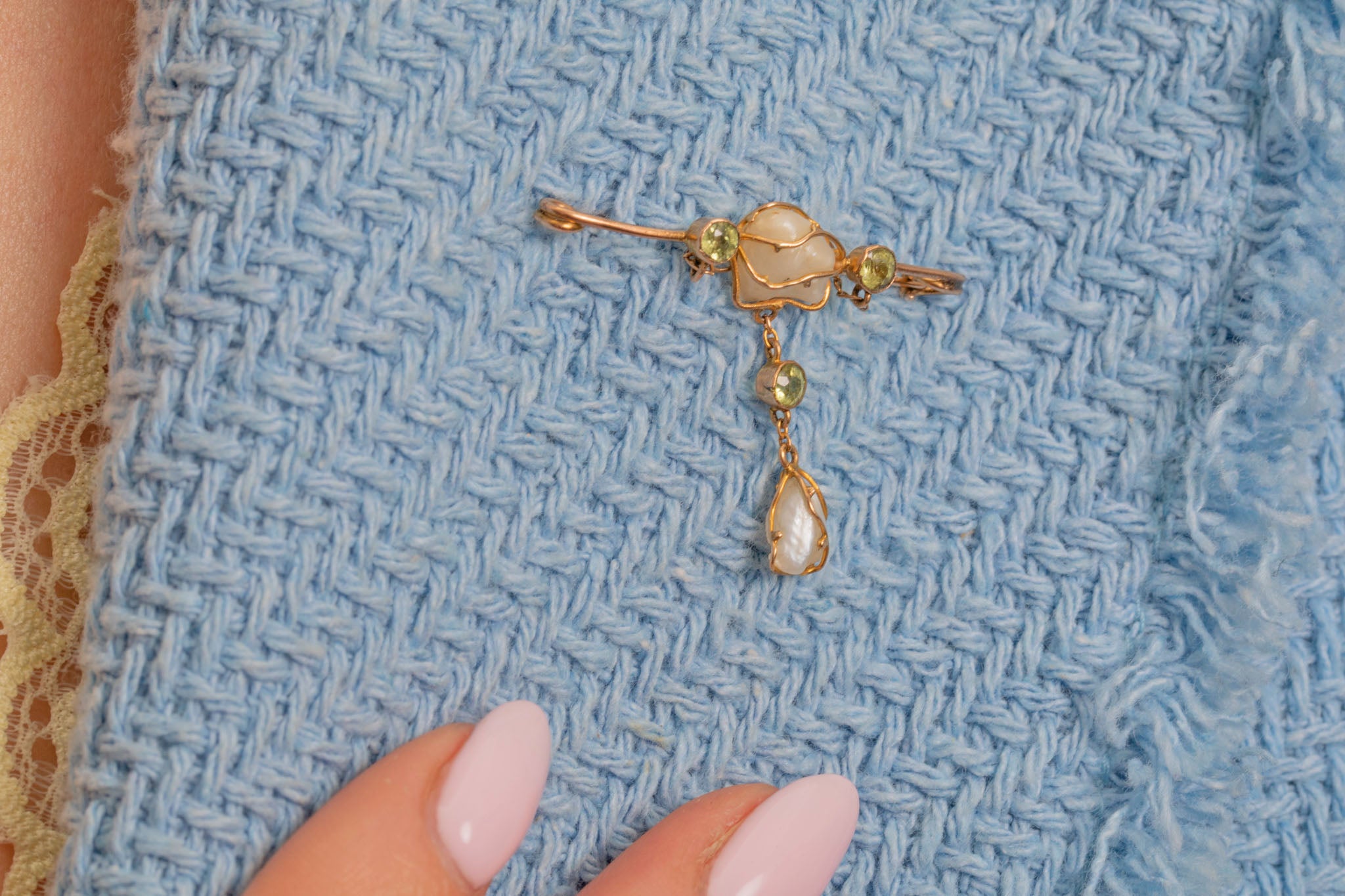 アンティーク 9ct ゴールド パール ペリドット ブローチ