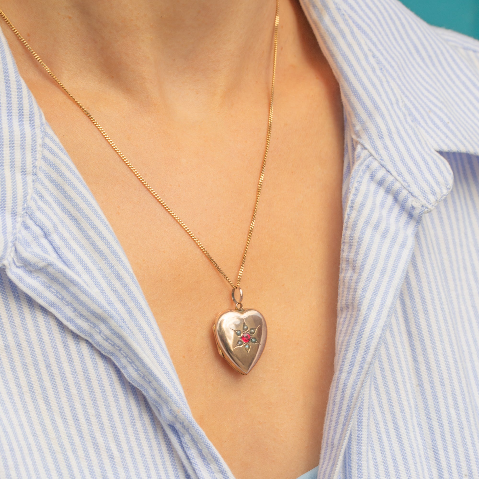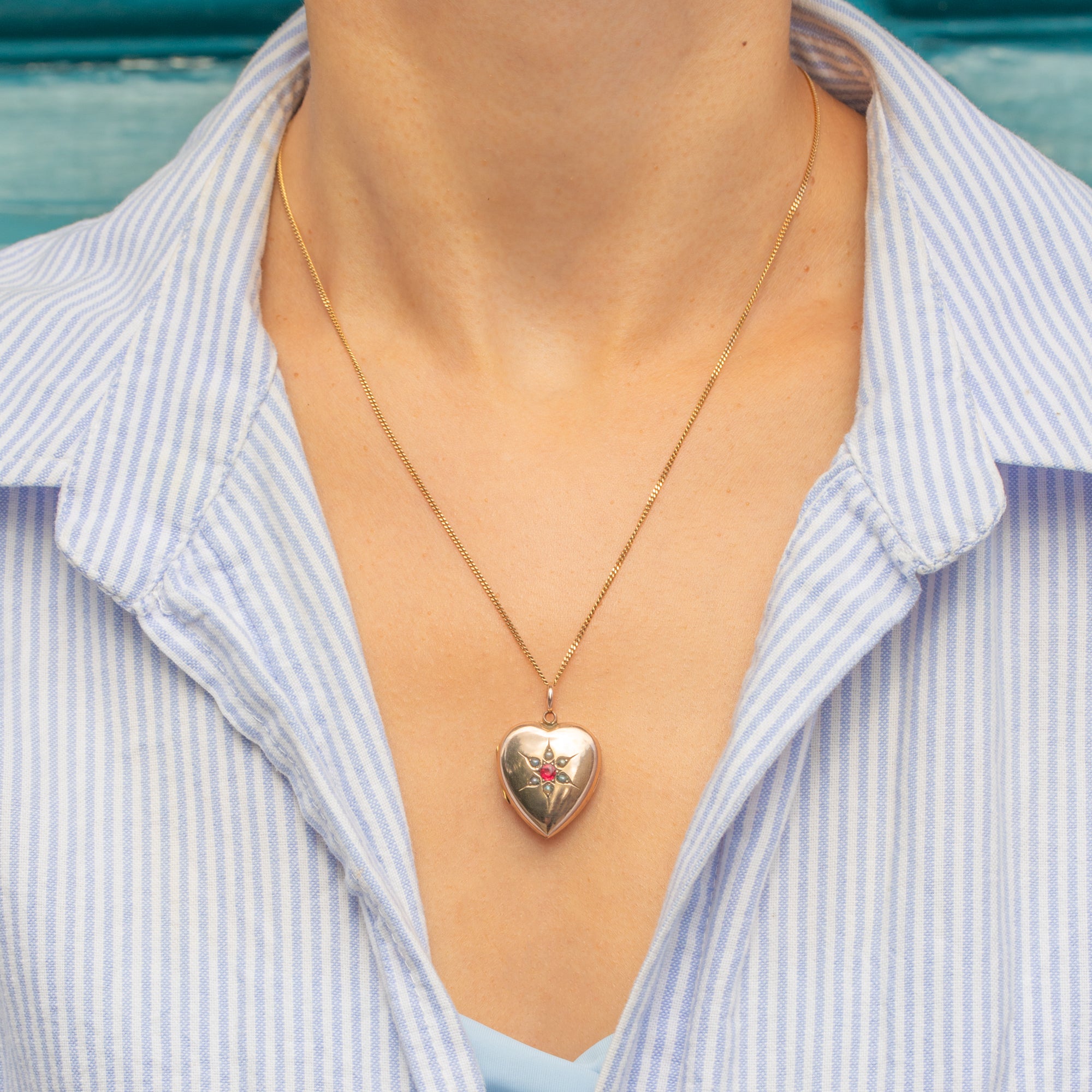 Antique 9ct Gold Pearl Starburst Heart Locket