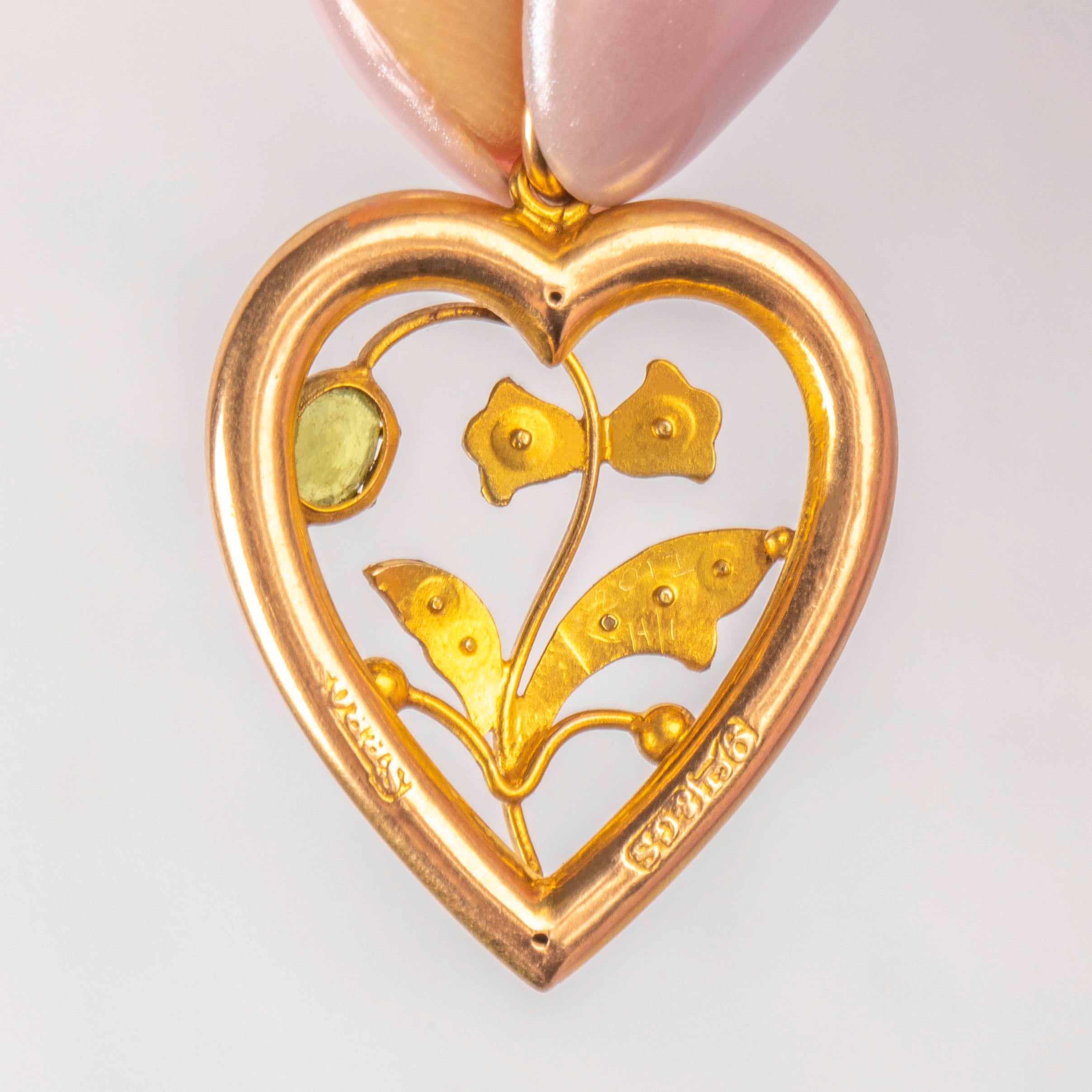 Antique 9ct Gold Peridot Pearl Heart Pendant, 0.45ct