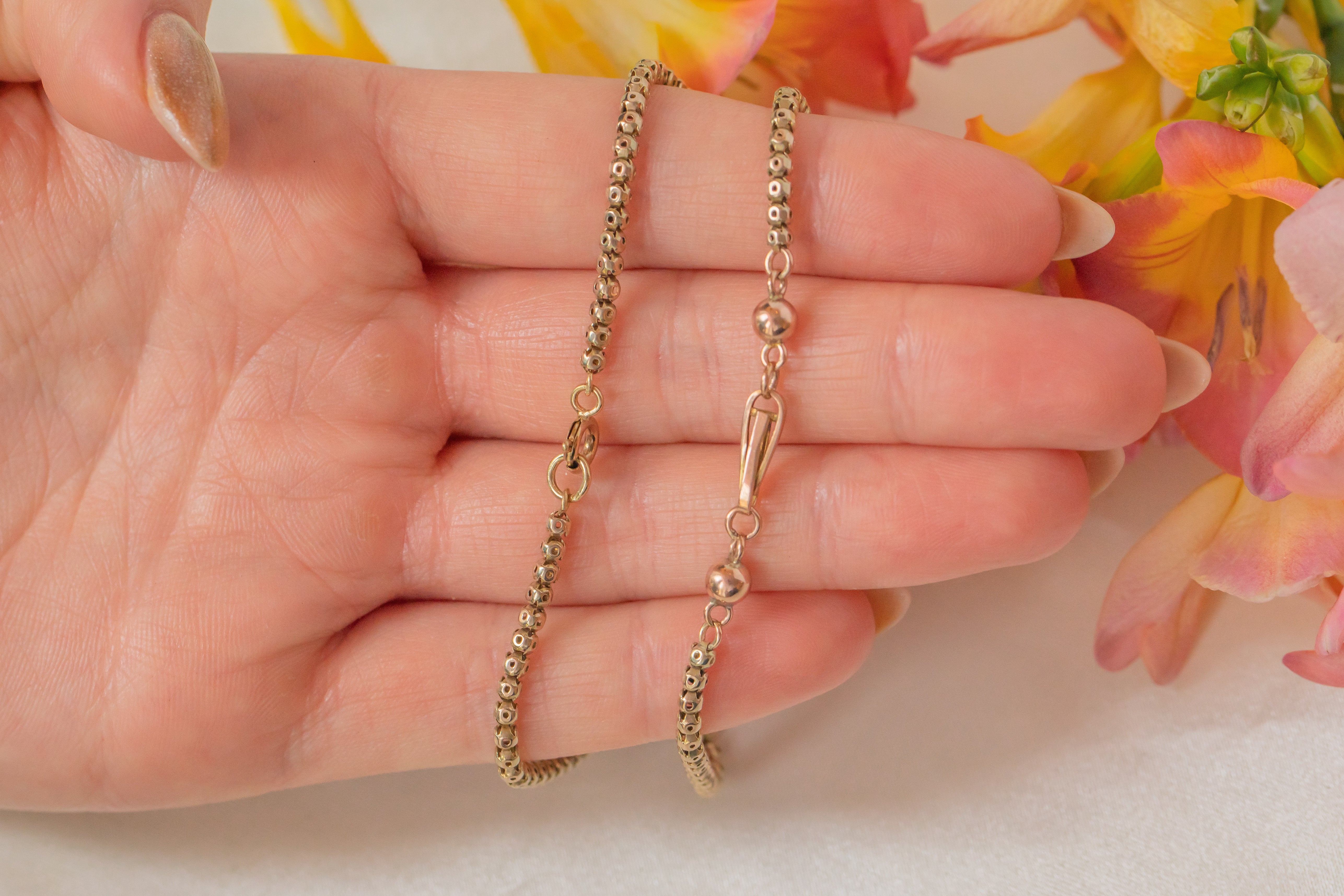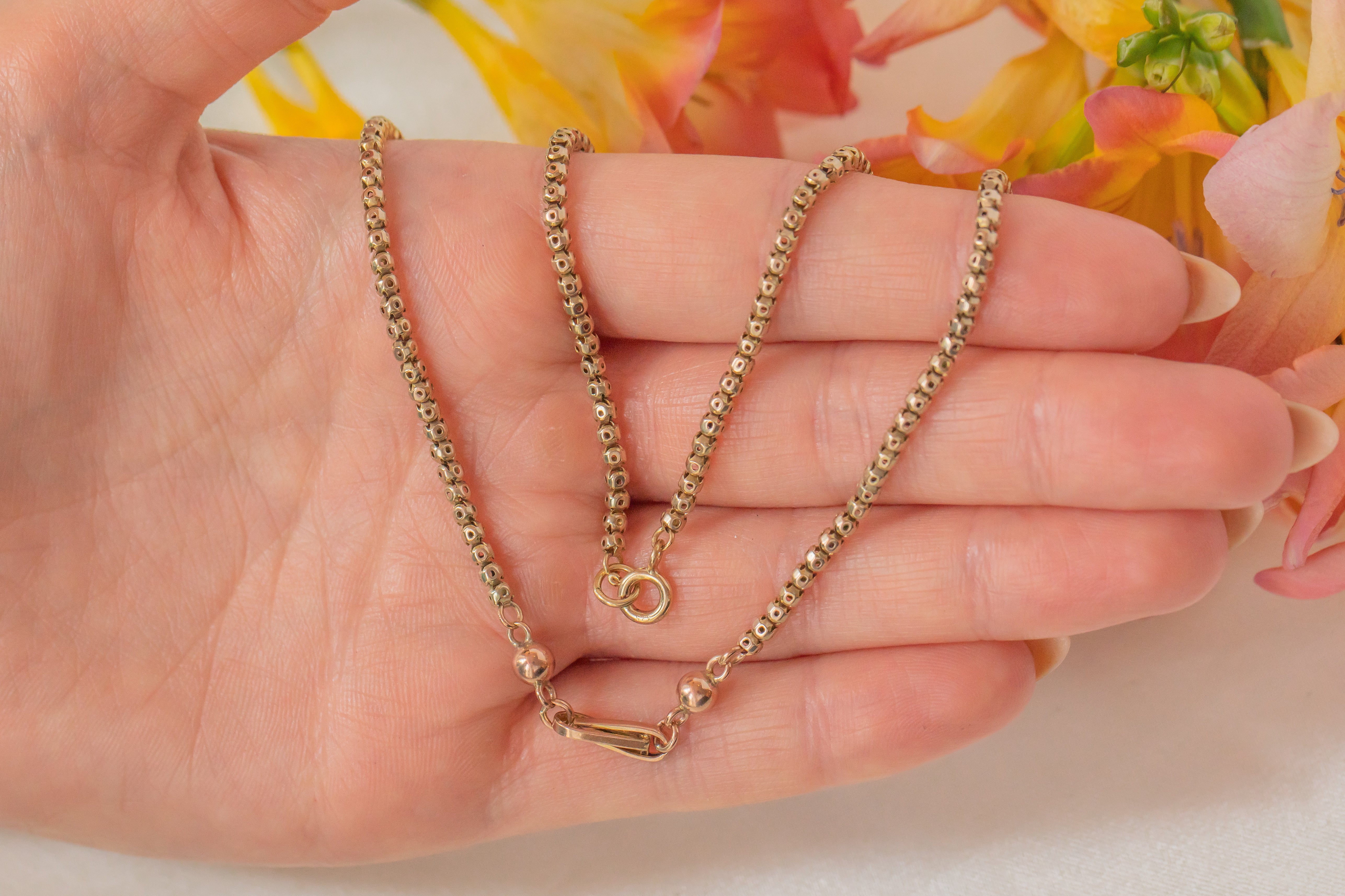 19.5インチ アンティーク 9ct ゴールド ピアスドチェーン、ボール&フェッターディテール(8g)