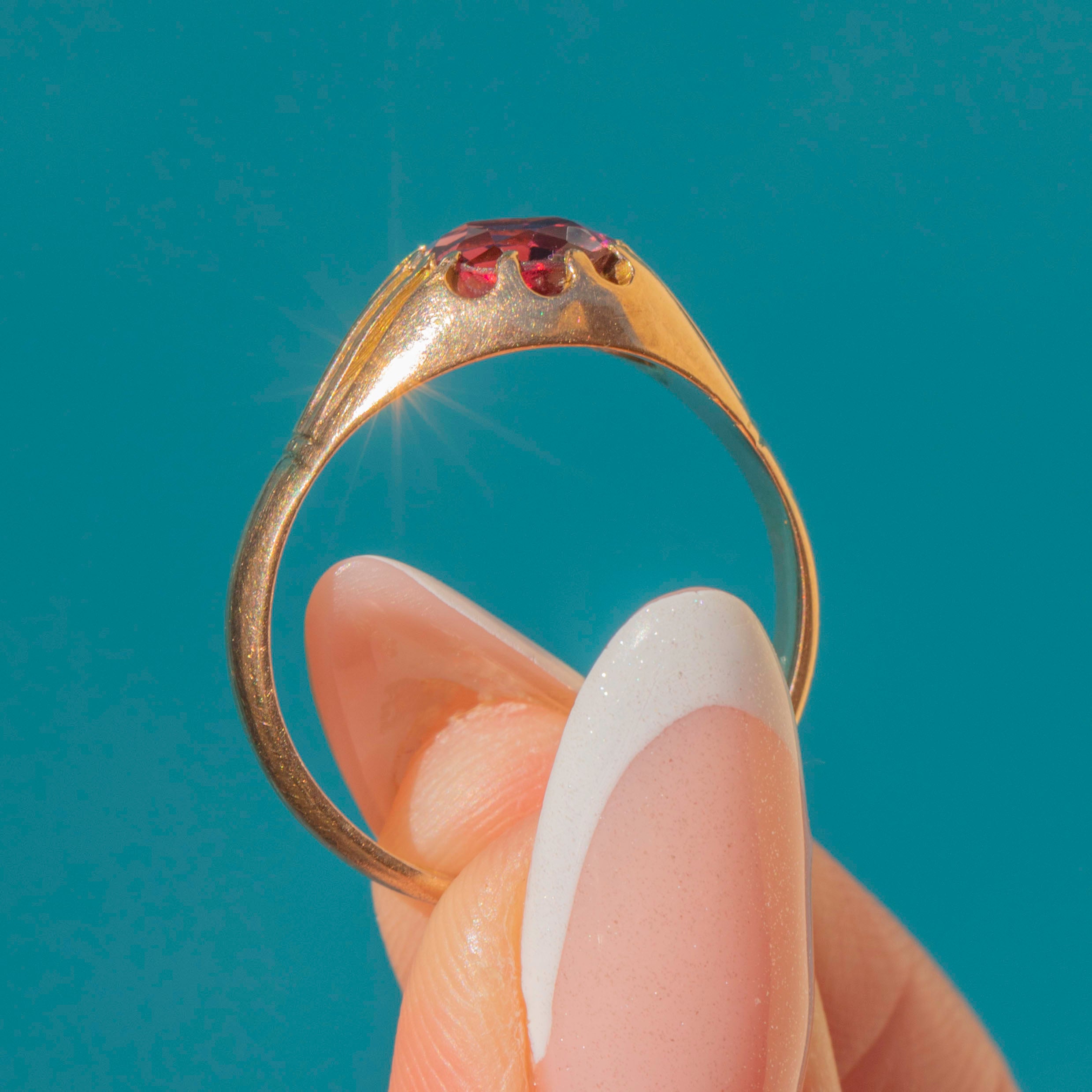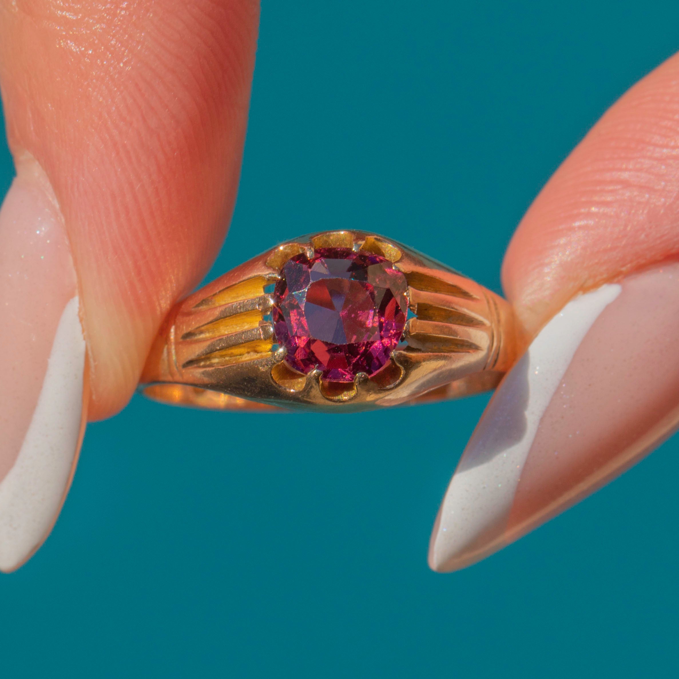 This antique 9ct Gold Pink Tourmaline buttercup set ring is a must-have for your collection! The chunky Gold band is undeniably luxurious and comes complete with a full set of English hallmarks dating to 1908.