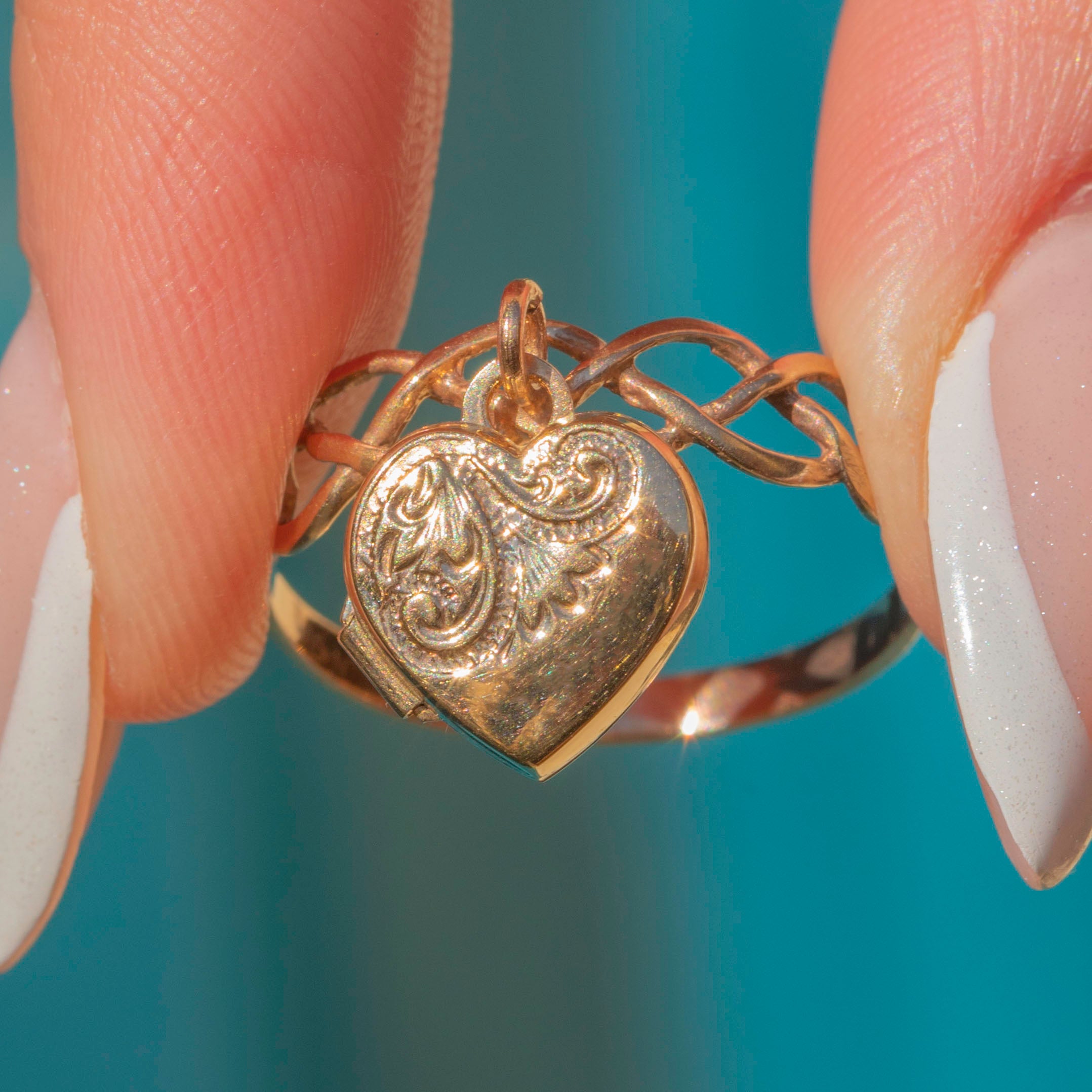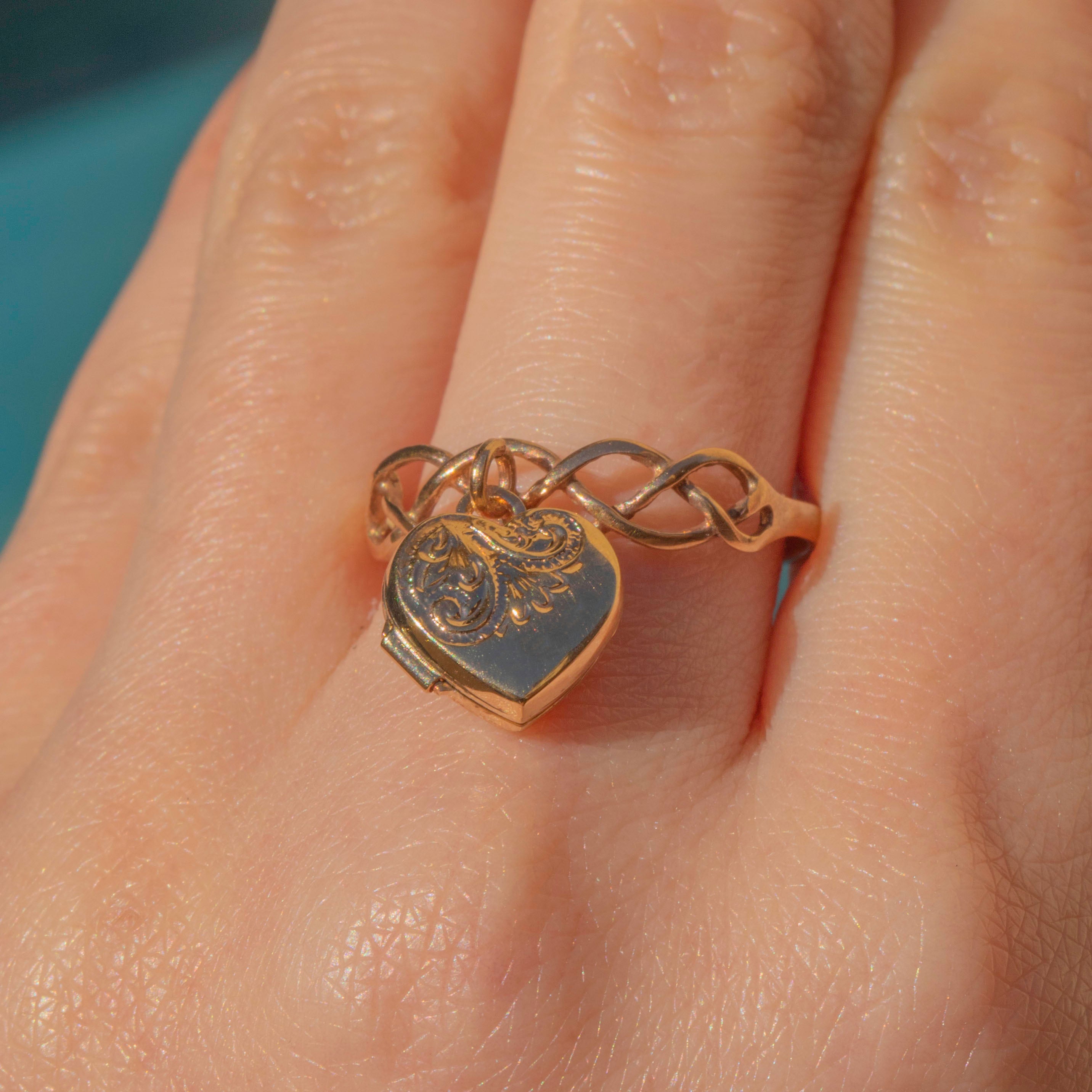 Antique 9ct Gold Ring with Heart Locket Charm
