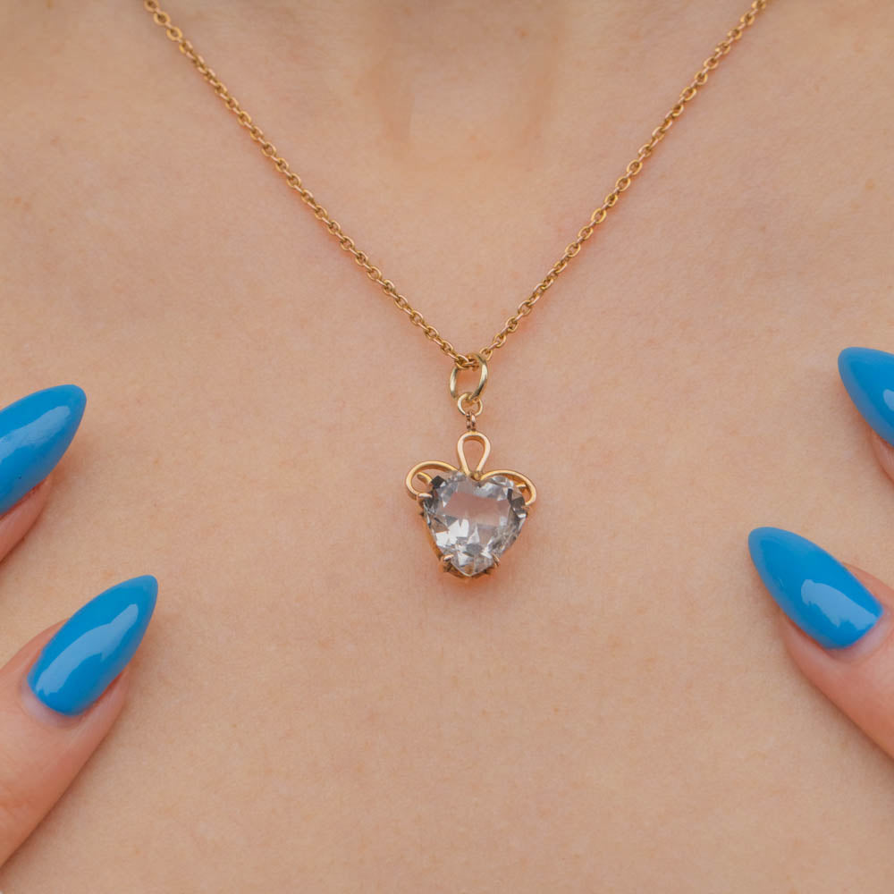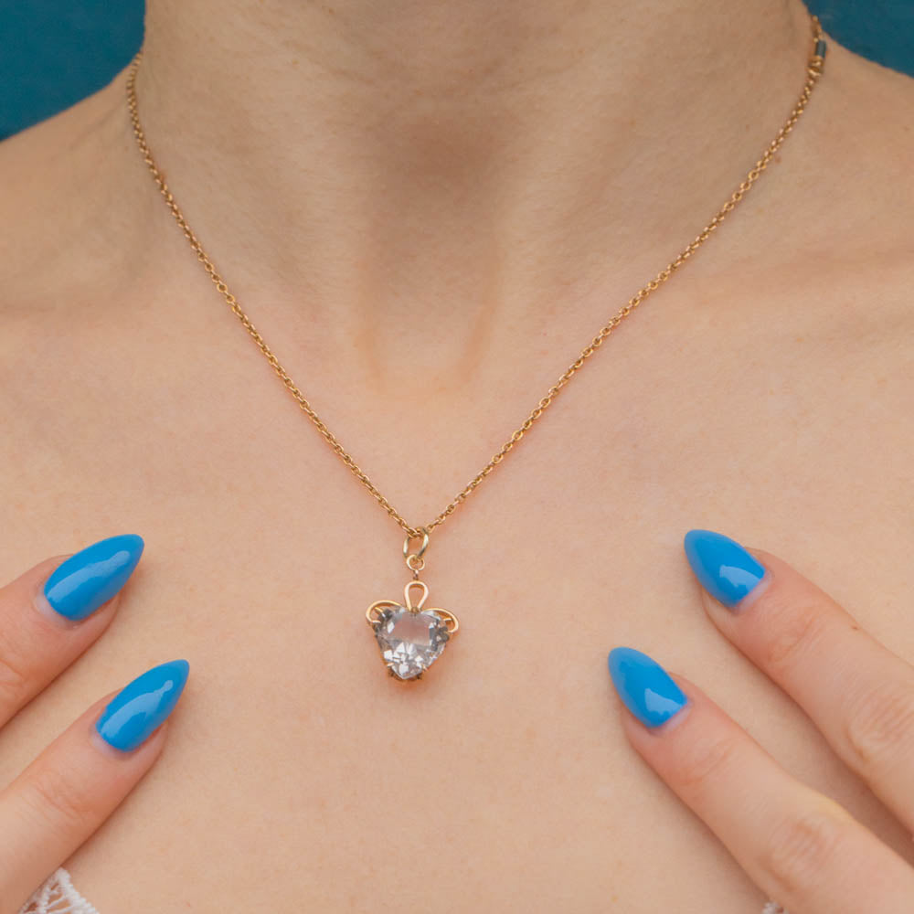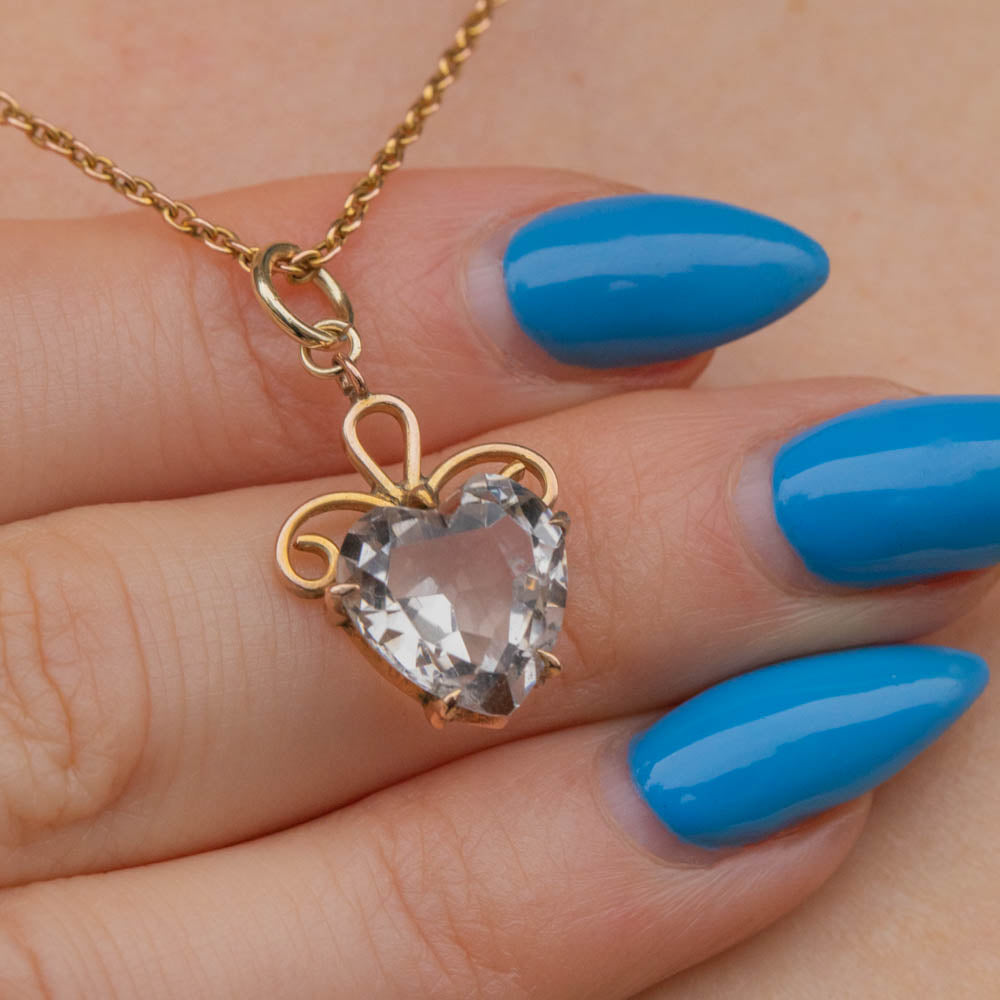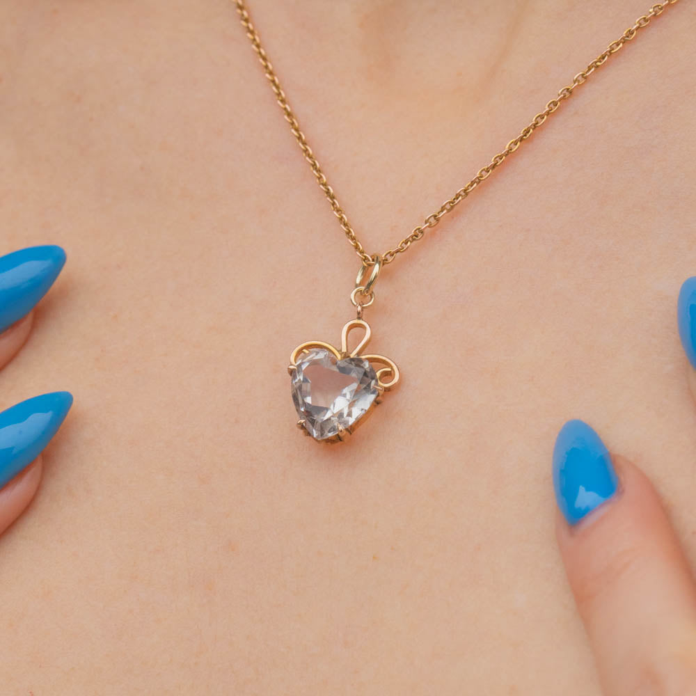Antique 9ct Gold Rock Crystal Heart Charm