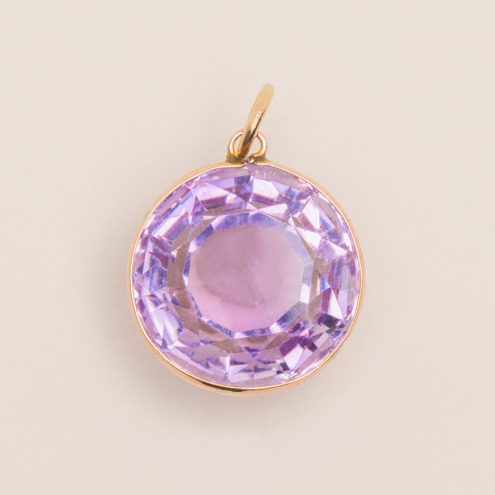 Antique 9ct Gold Round Amethyst Pendant, 7.55ct