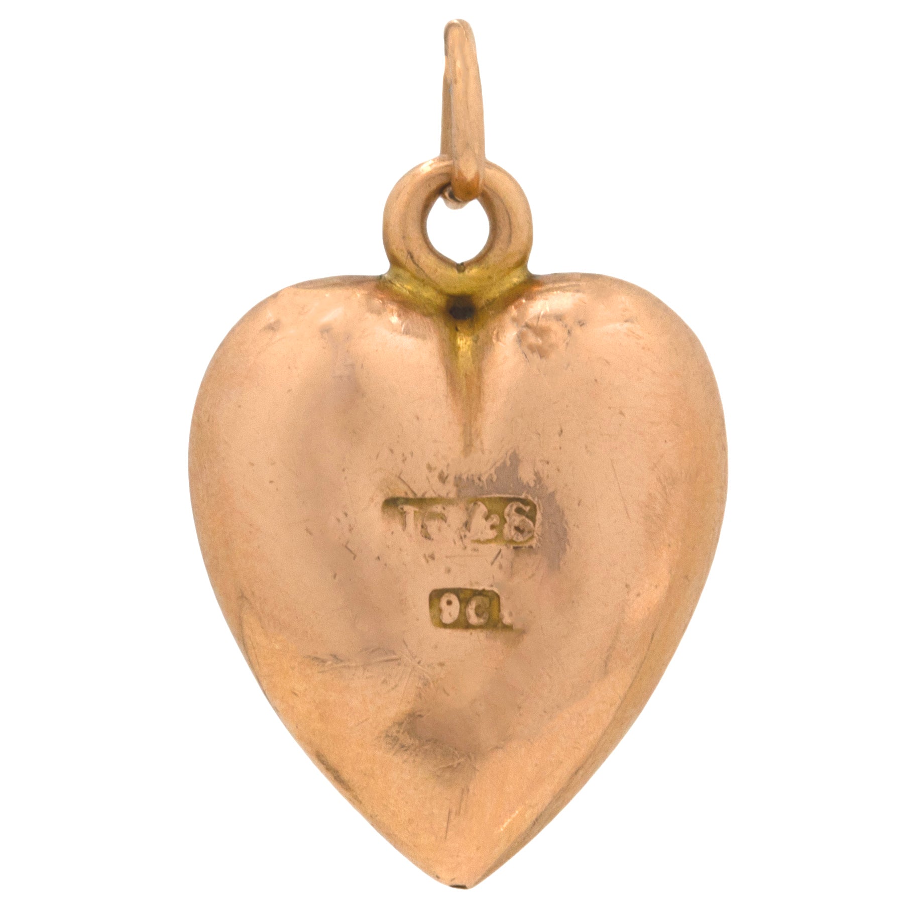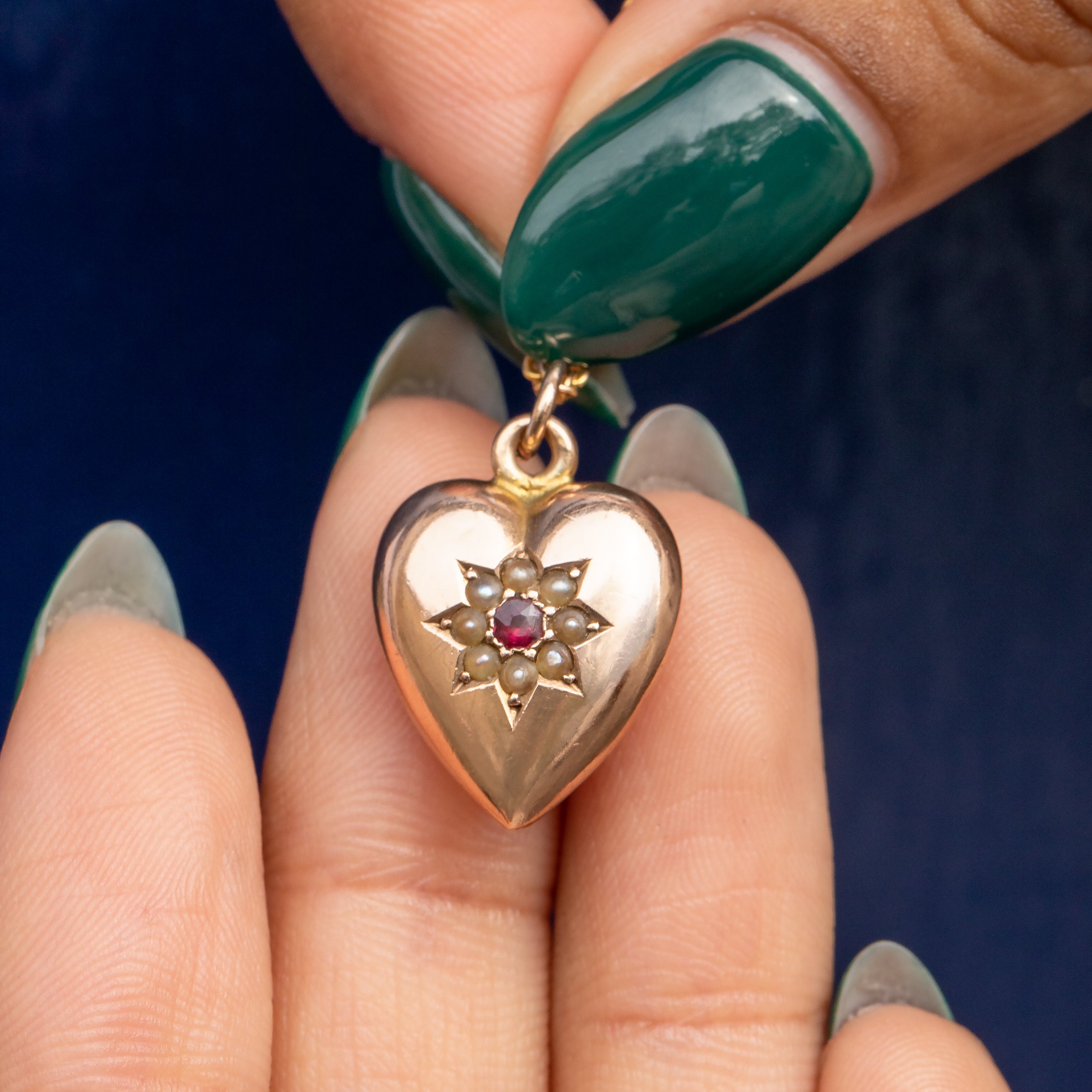 アンティーク 9ct ゴールド ルビー パール パフィーハート ペンダント