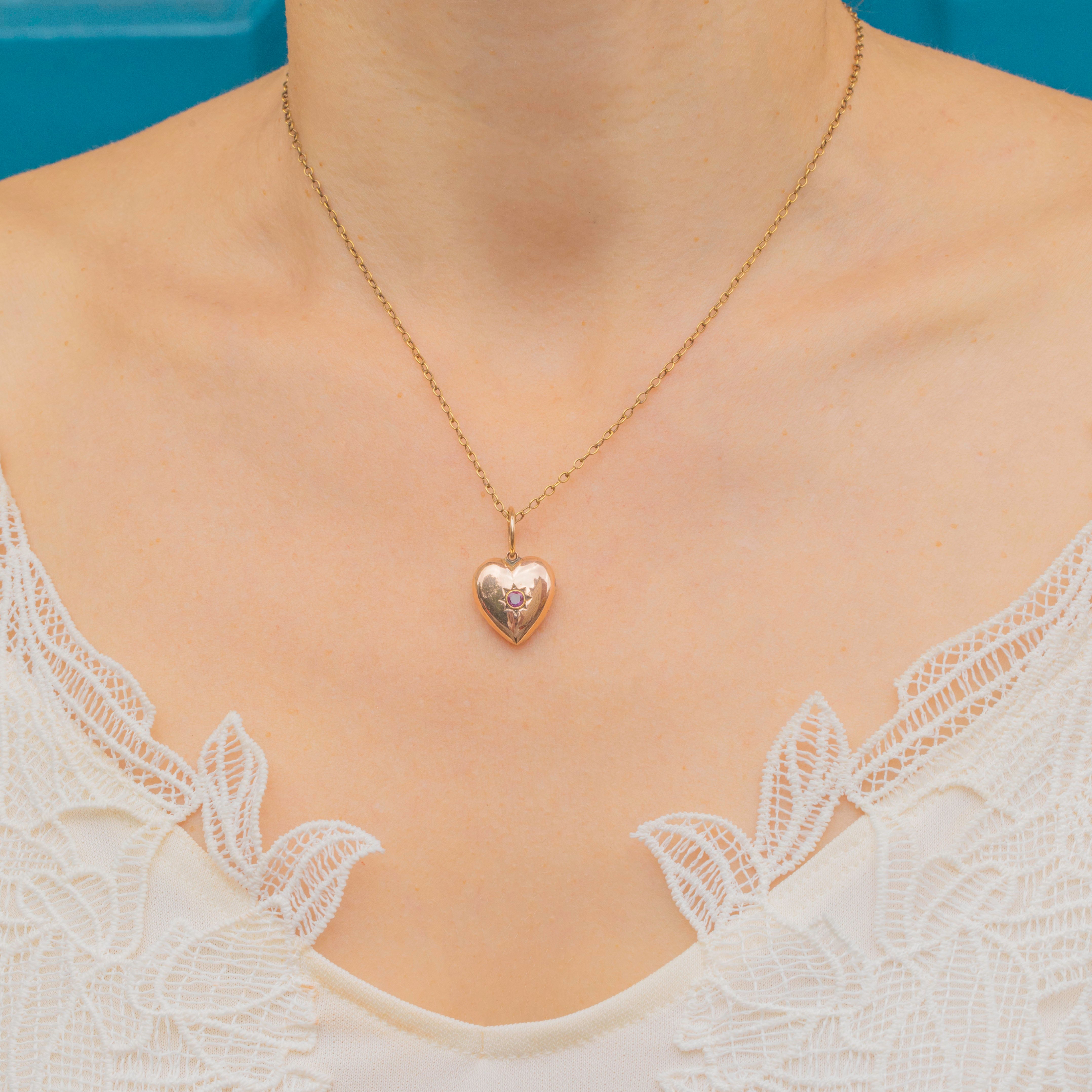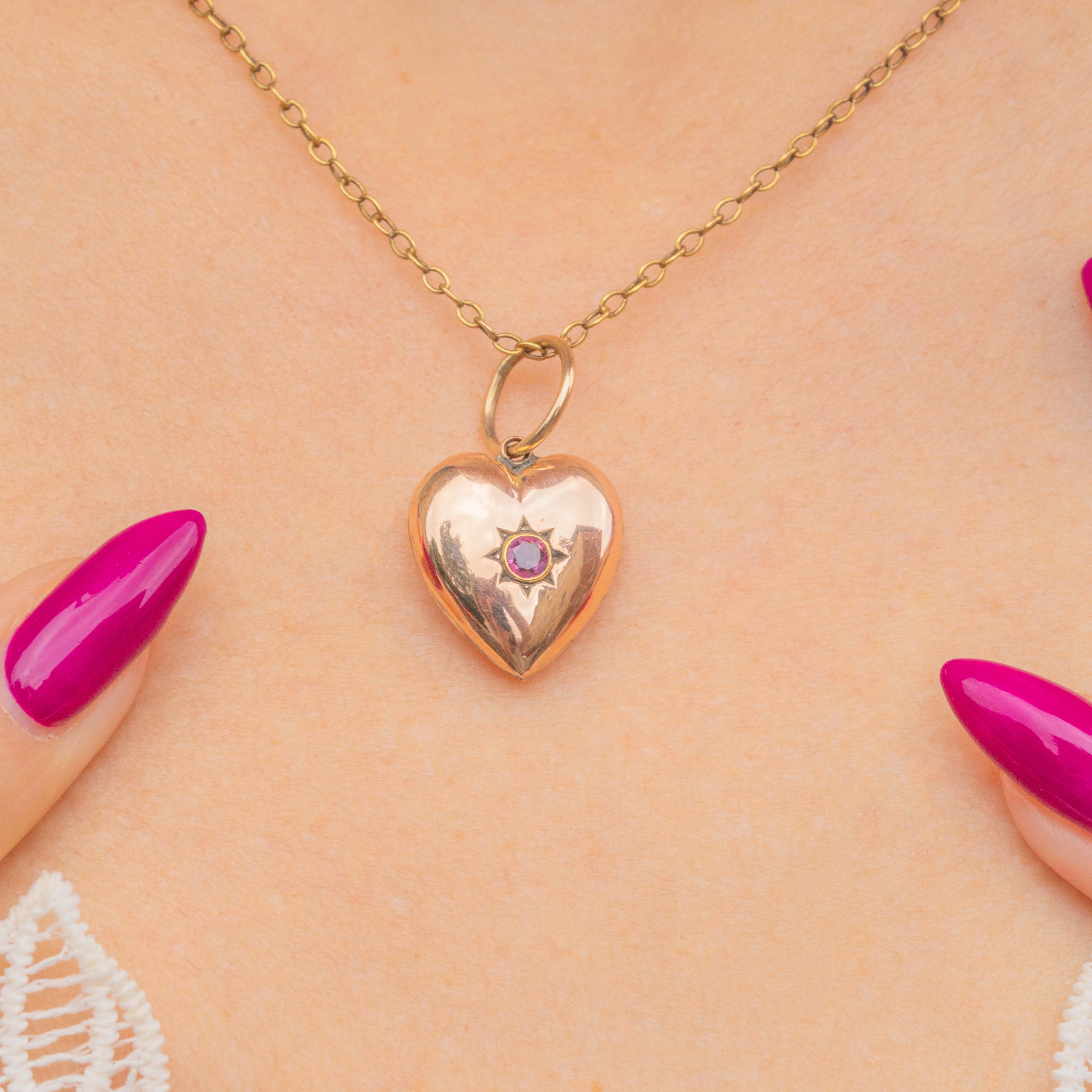 EXCELLENT: The rosy Gold has retained a wonderful glossy sheen, and the vibrant Ruby is secure within its setting. This charm is complete with a large, soldered jump ring, allowing you to wear this antique heart pendant with utmost confidence.