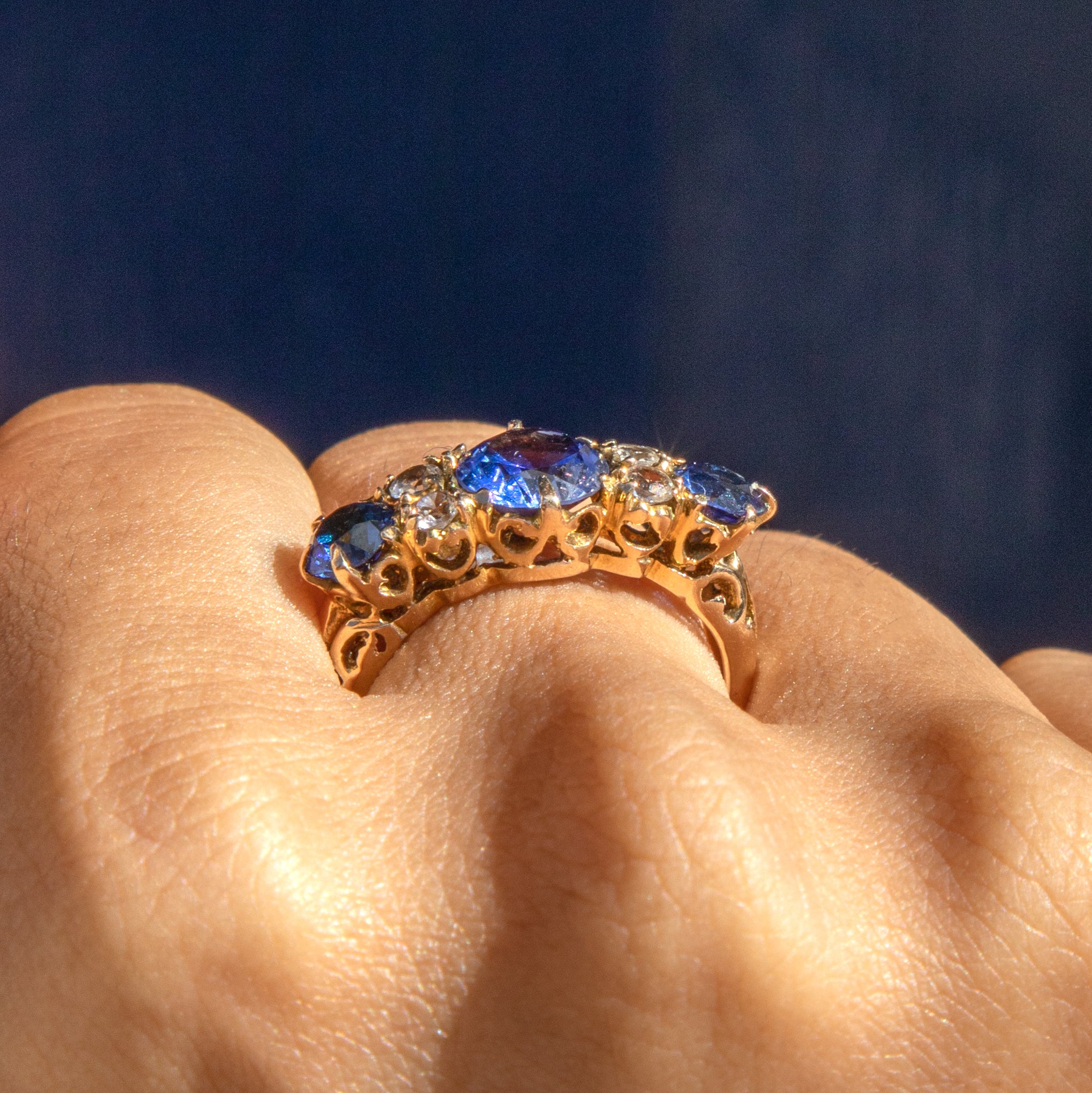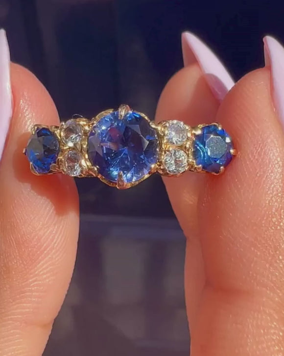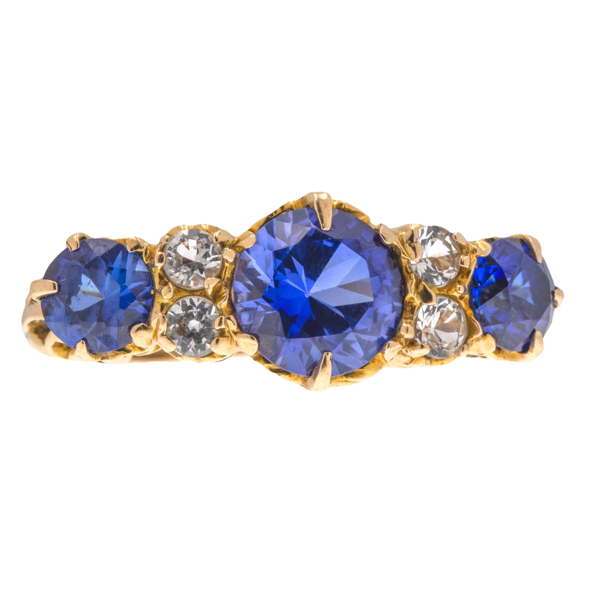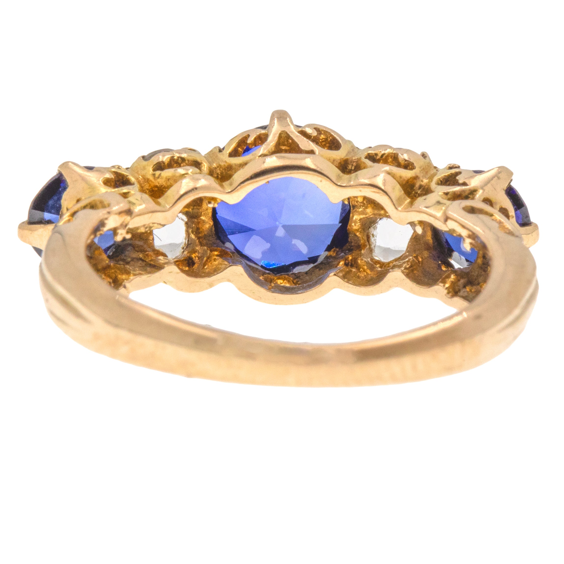 アンティーク エドワーディアン 9ct ゴールド サファイア スリーストーン リング、1.35ct