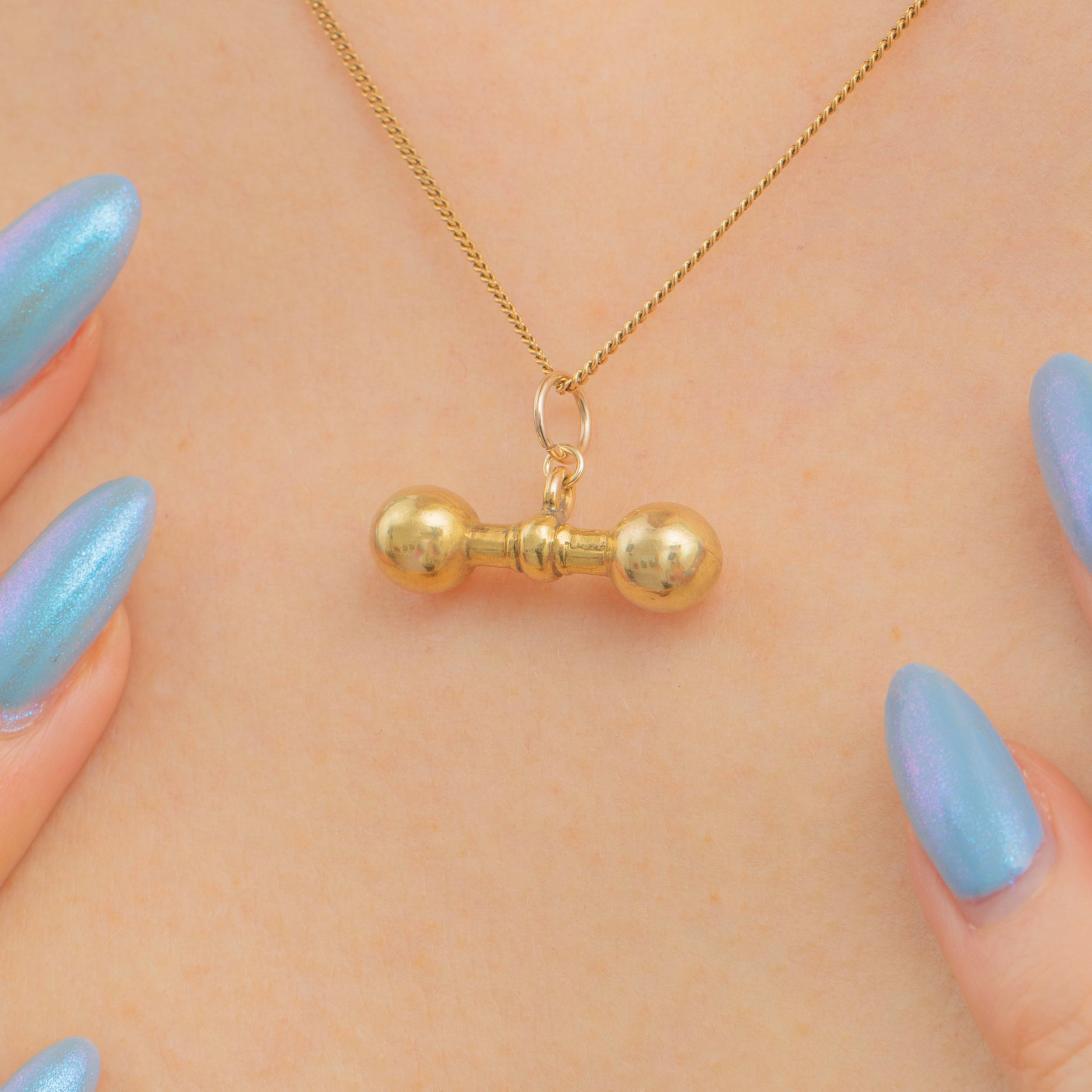 This sumptuous antique 9ct Gold t-bar pendant will make a bold admornment for a skinny Gold chain! This chubby little treat has been crafted from solid, buttery 9ct Gold with a satin finish for a luxurious touch. The generous proportions of the t-bar gives it a unique edge, with the oversized balled ends making it a standout piece.