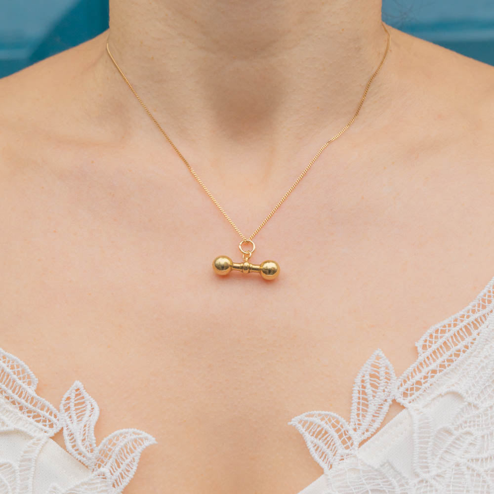 Is any Edwardian collection complete without an antique 9ct Gold t-bar pendant?! Crafted from buttery, solid 9ct Gold, this antique t-bar is perfect for adding a splash of splendour to any attire- this one is accented with two golden orbs either side!
