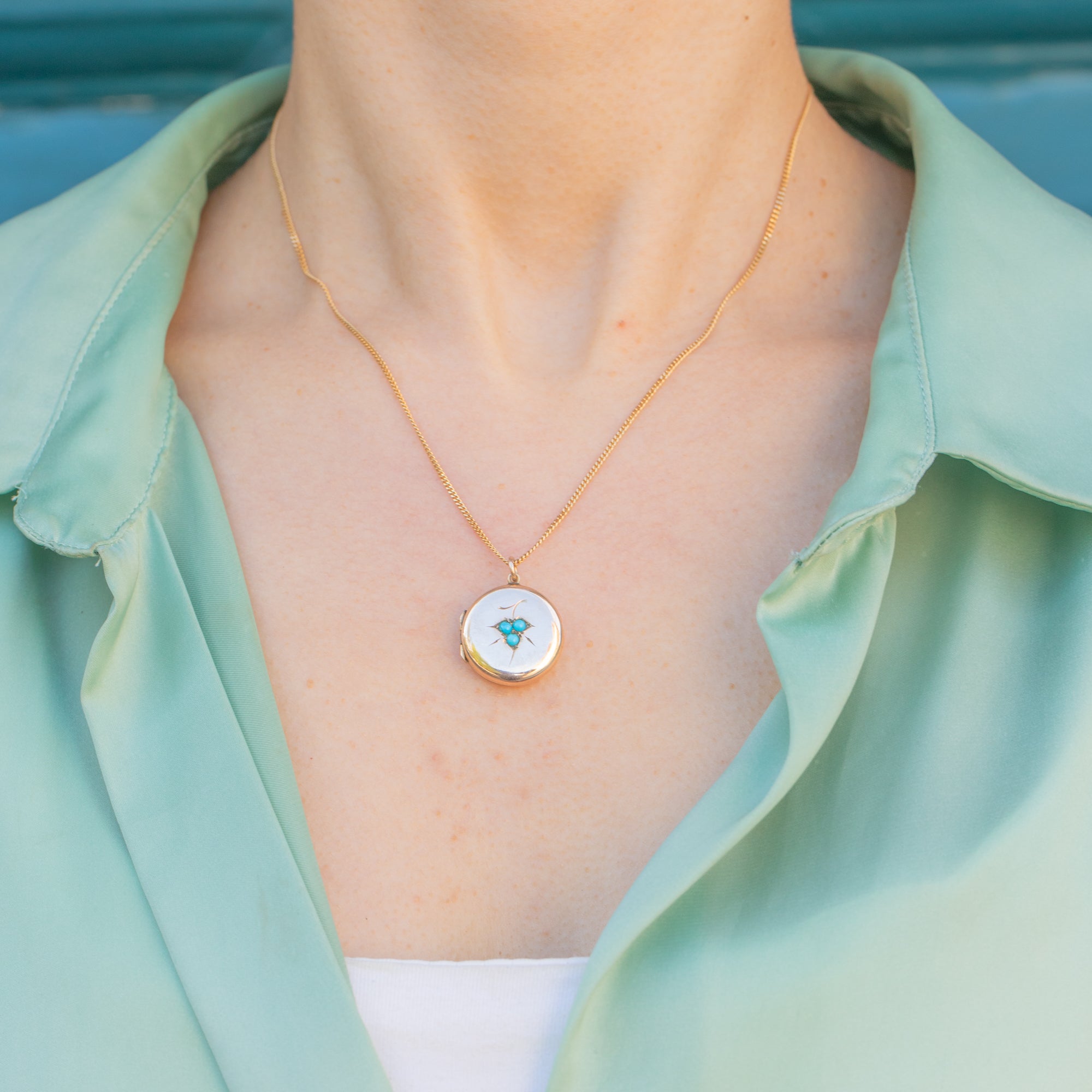 This antique 9ct Gold Turquoise ivy leaf locket is full of charm!
