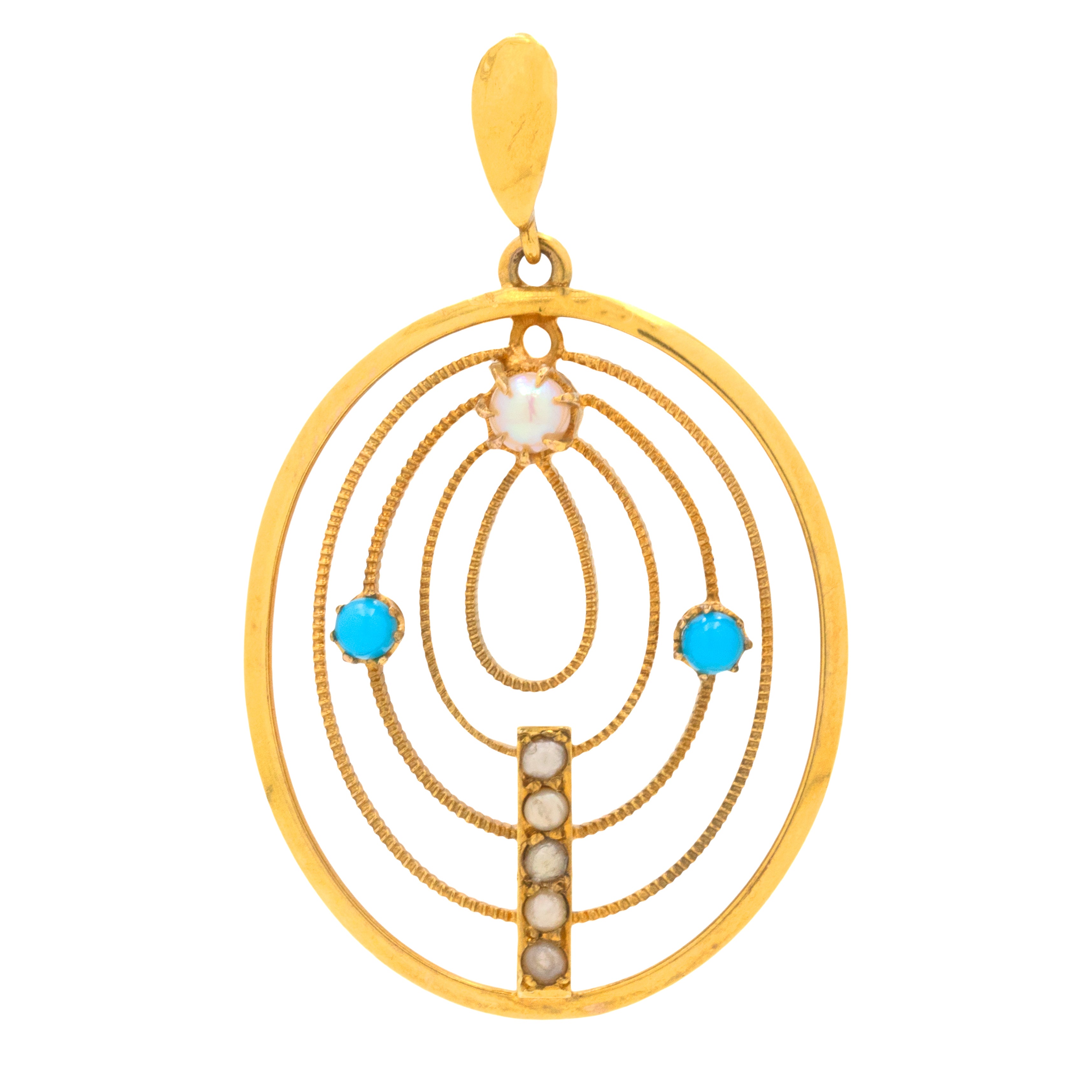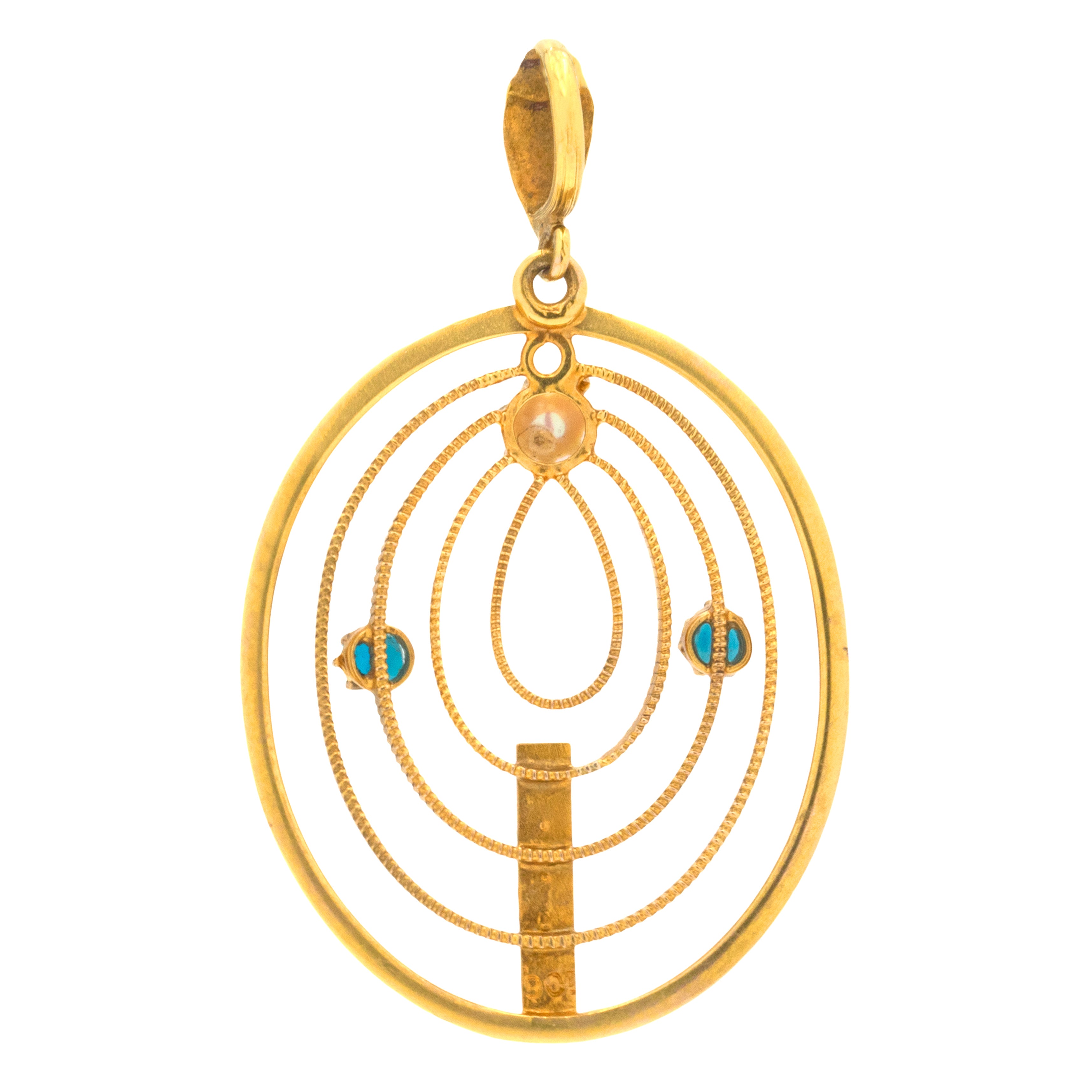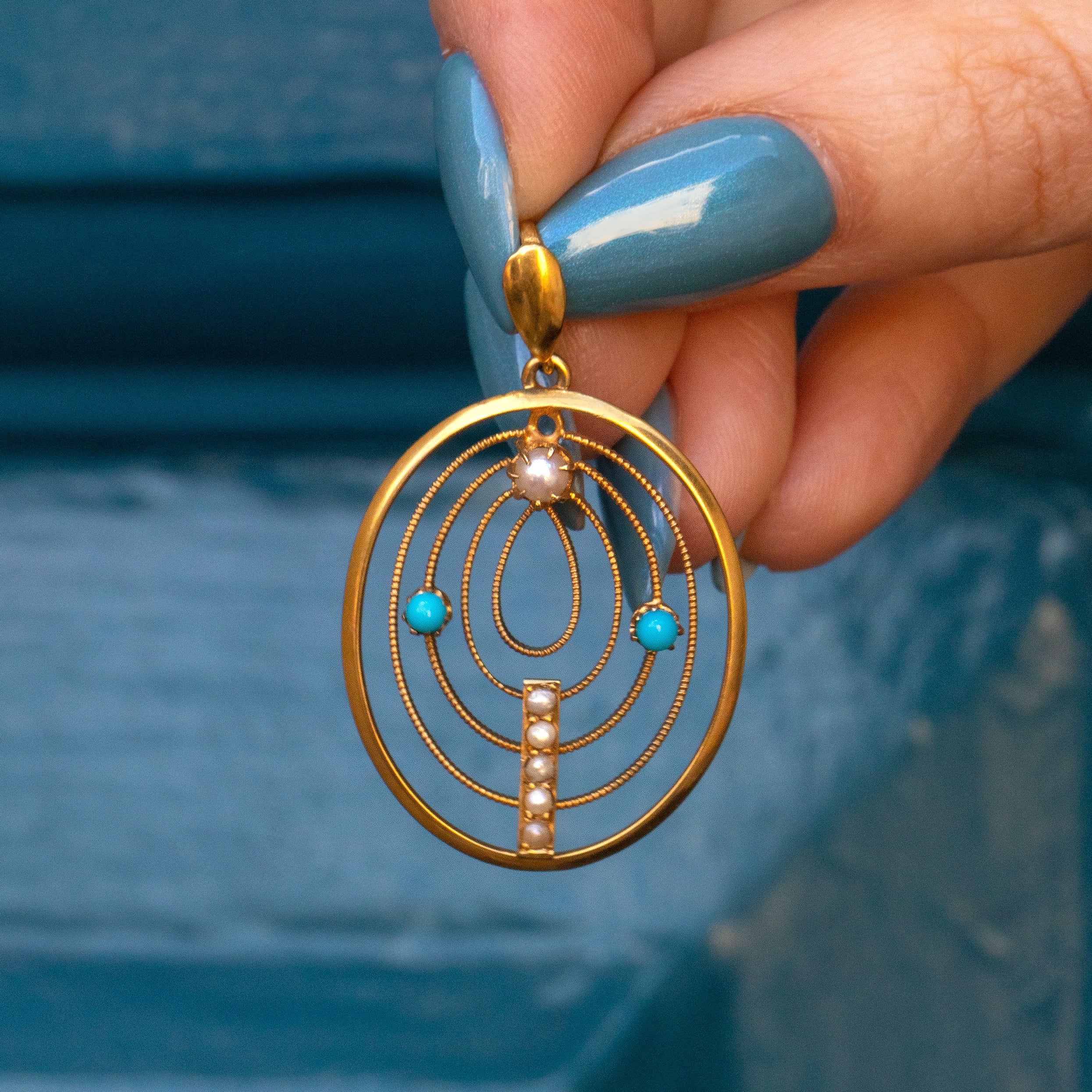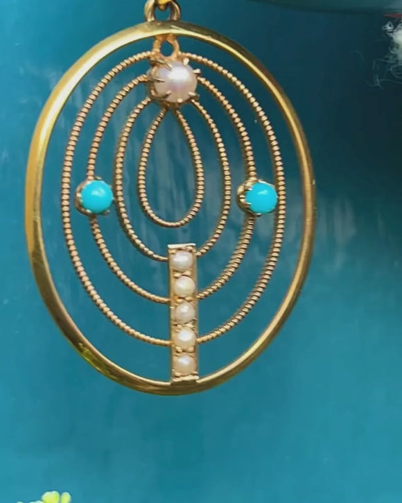 アンティーク 9ct ゴールド ターコイズ パール ペンダント