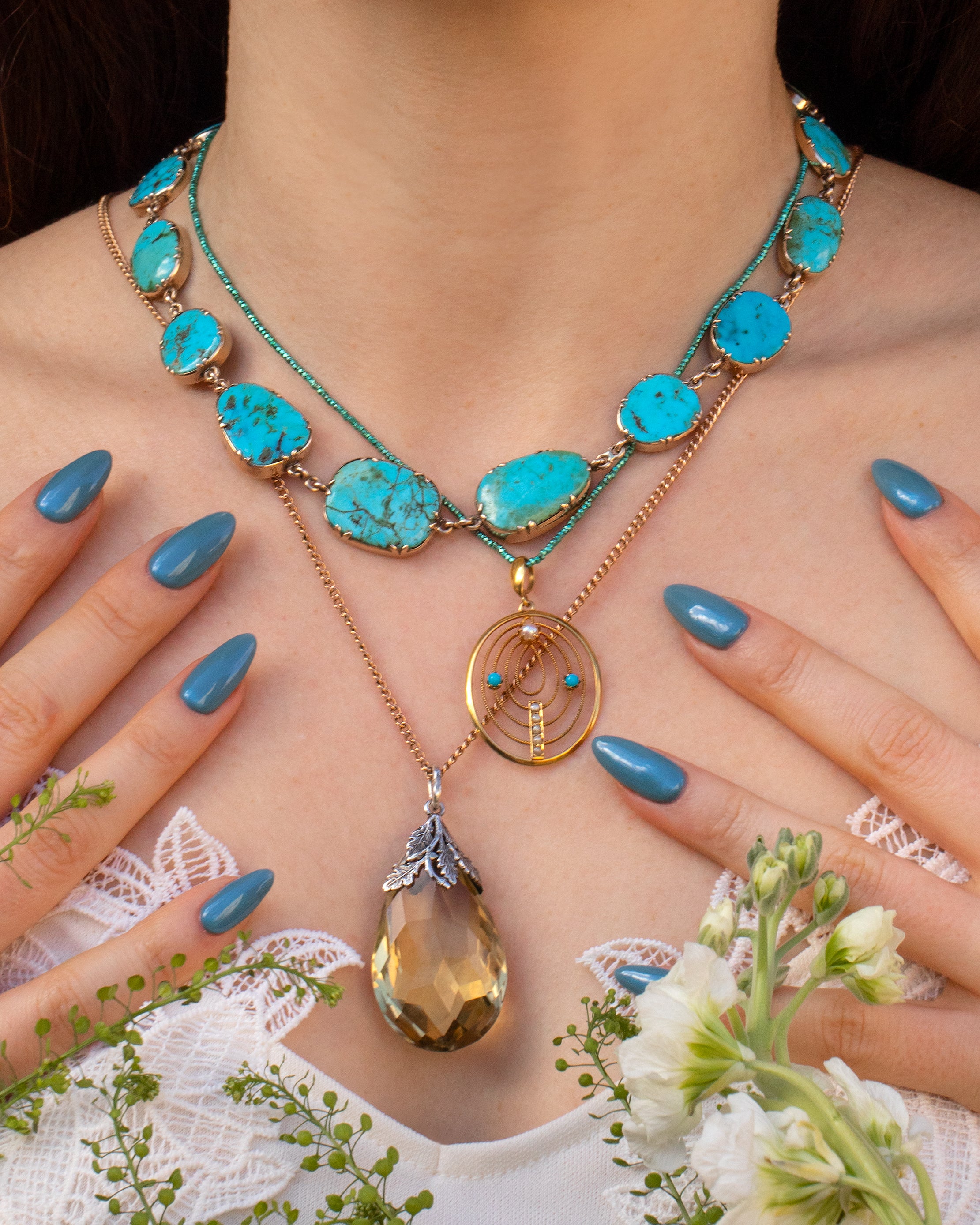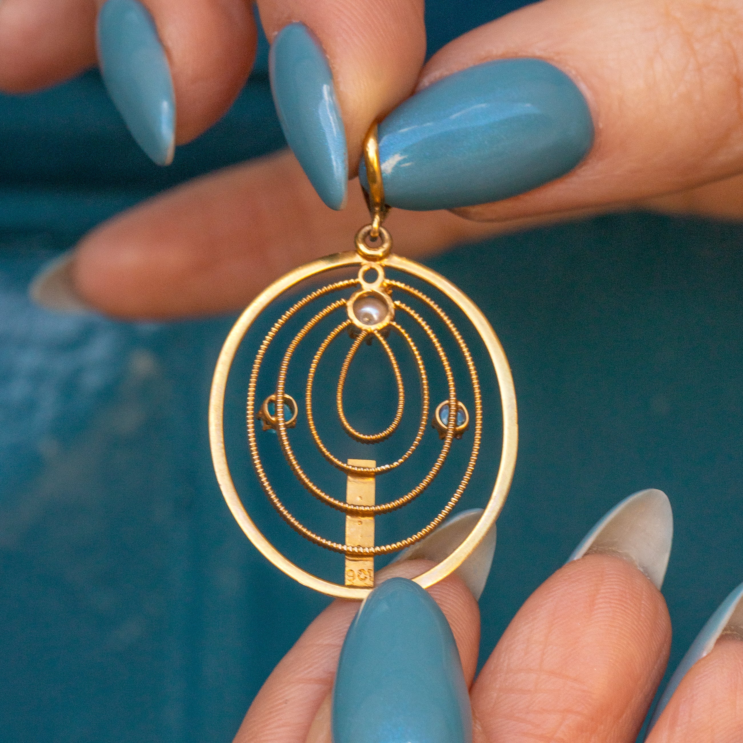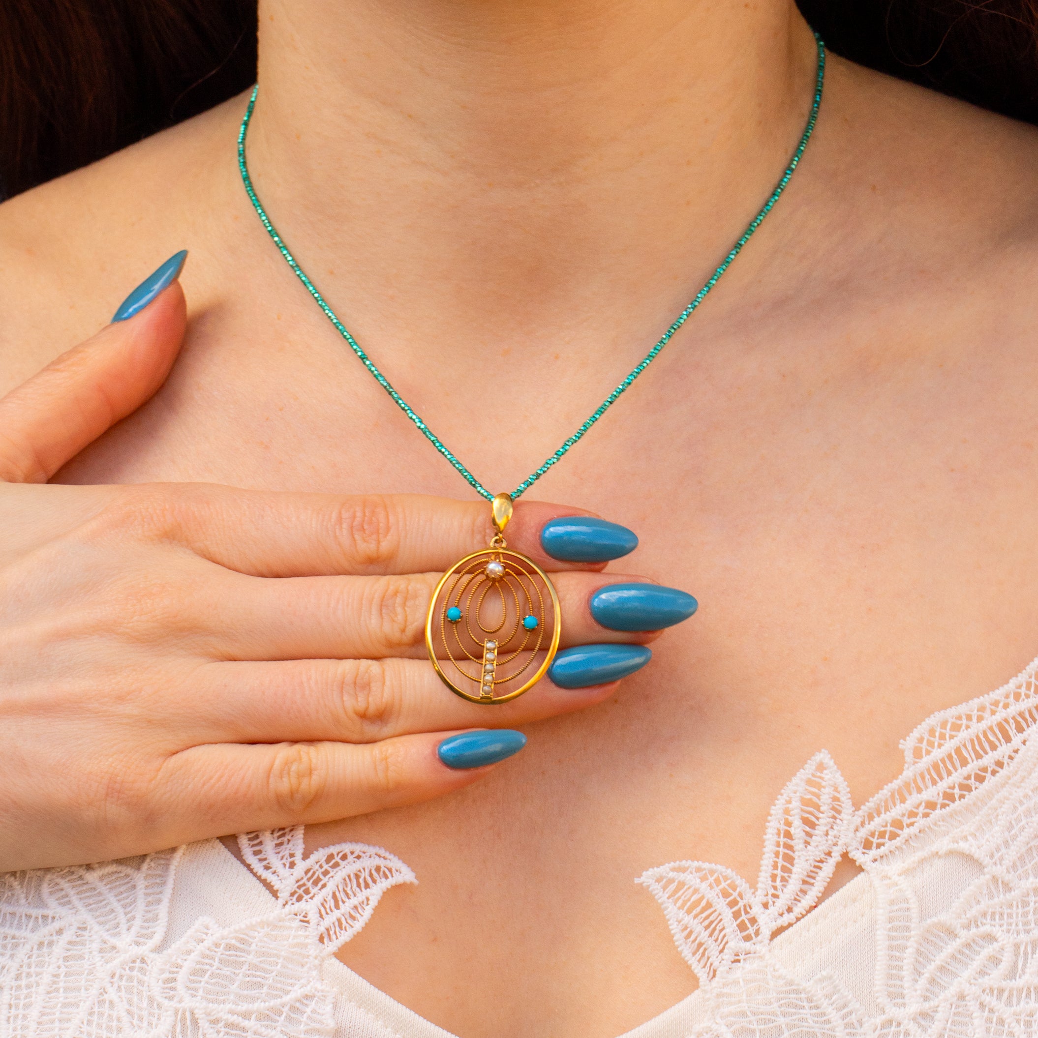 アンティーク 9ct ゴールド ターコイズ パール ペンダント