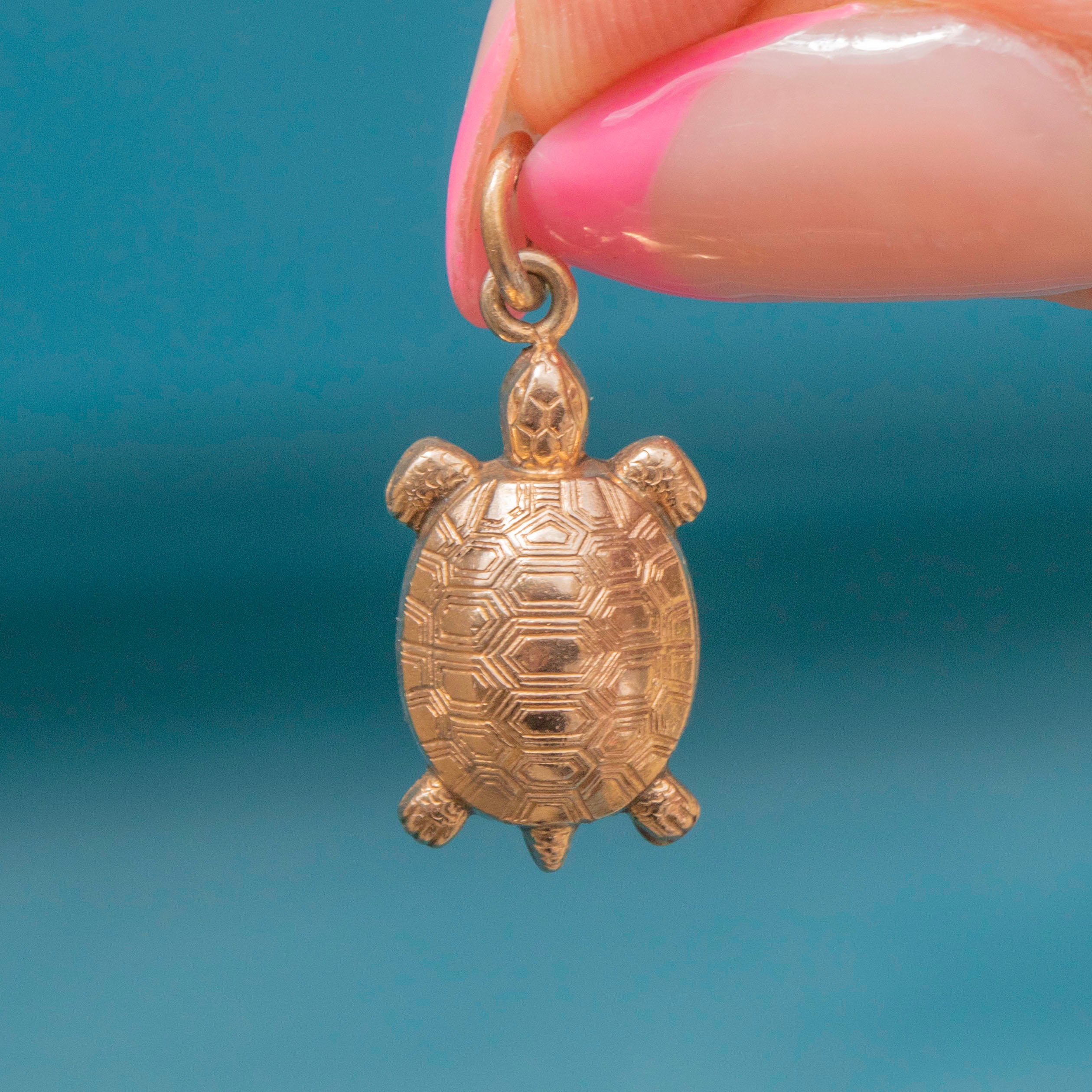 EXCELLENT: This antique 9ct Gold turtle charm is in brilliant condition. She has been crafted beautifully, with her engravings remaining crisp and detailed. There is some very light surface wear present but considering age, still remains in great condition. With a securely soldered jump ring, you can wear this antique charm with confidence!