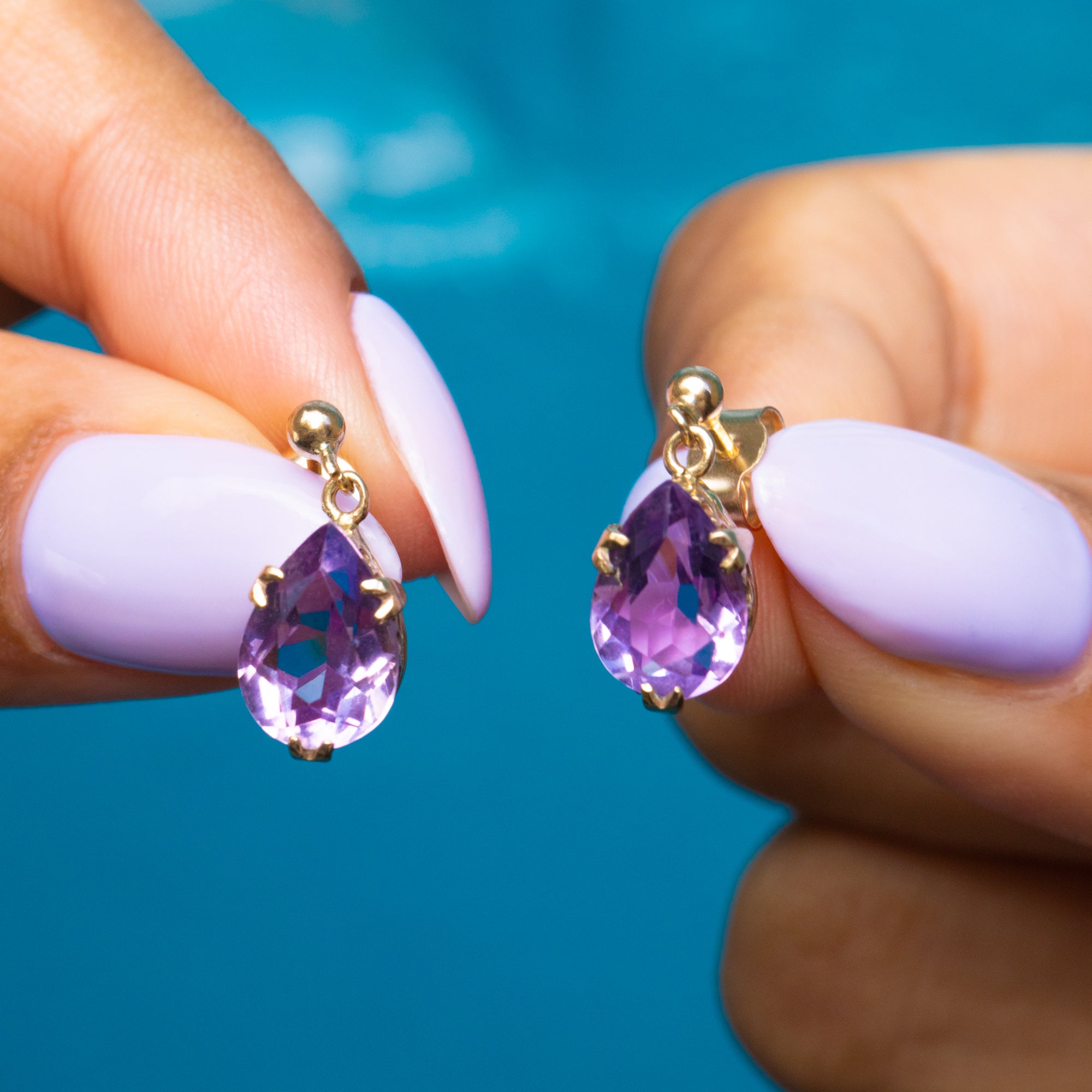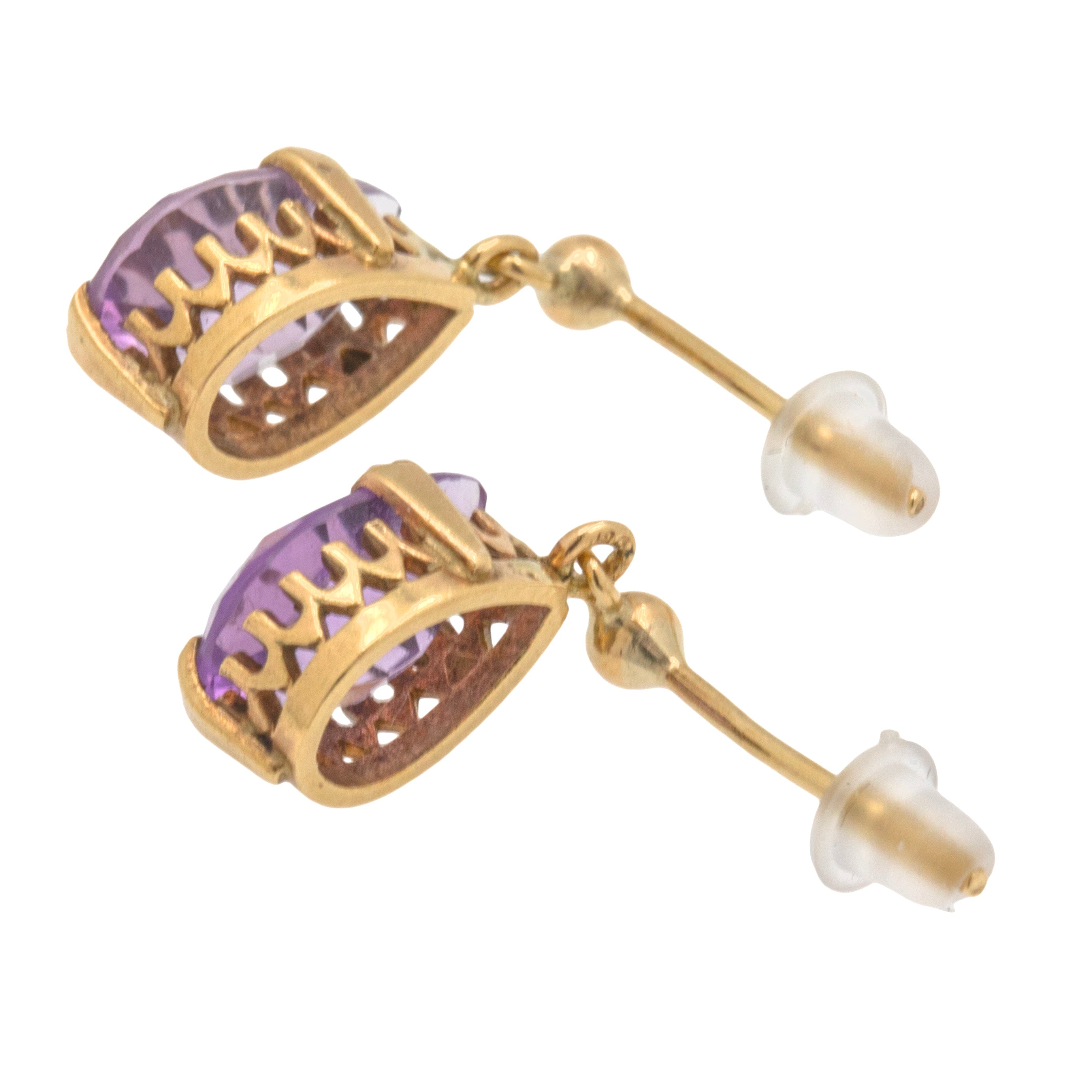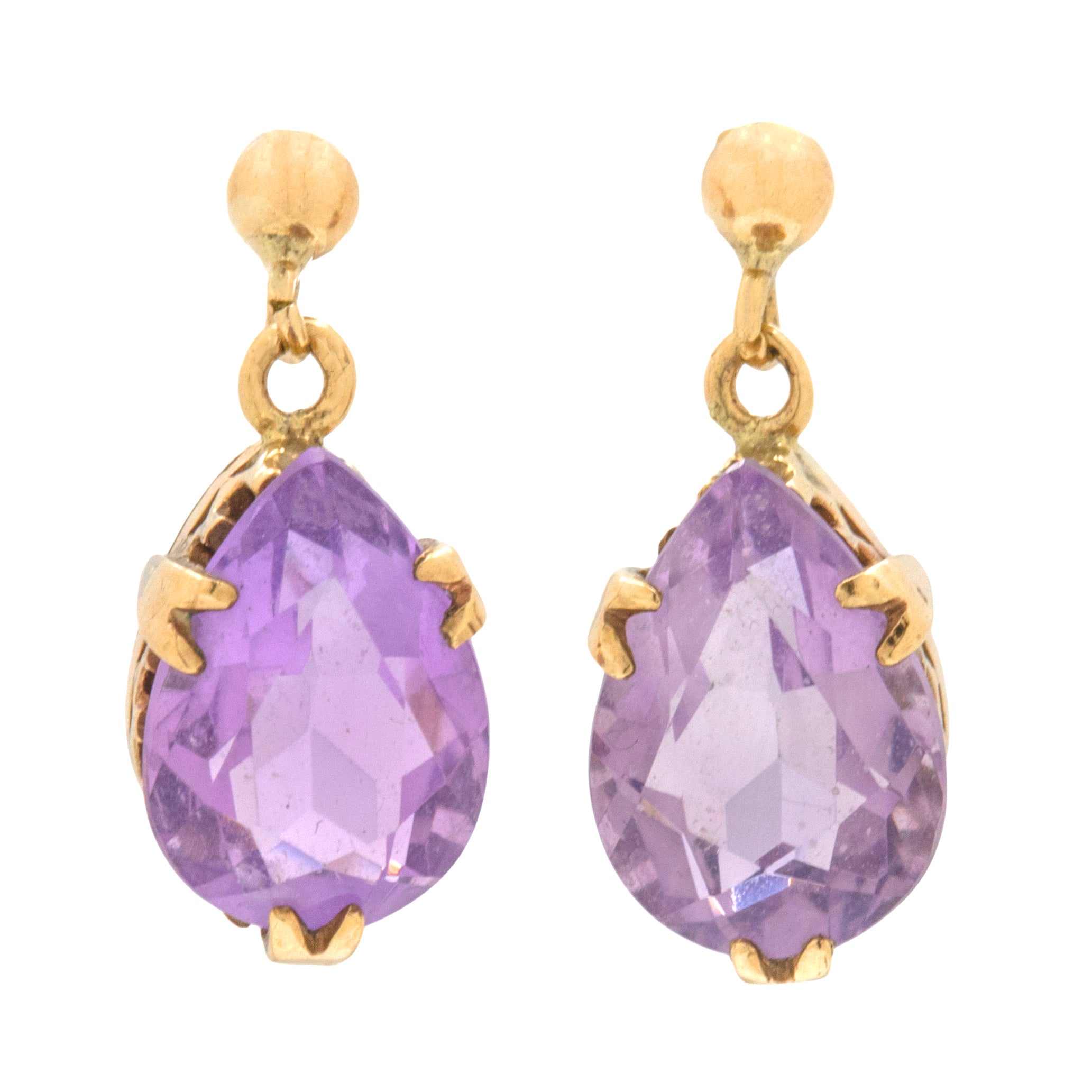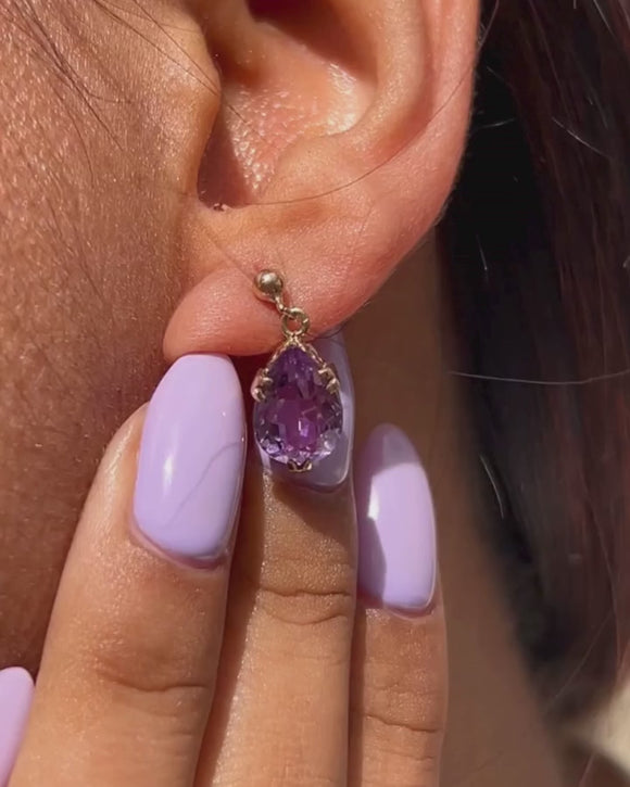 アンティーク アメジスト ペアドロップ イヤリング、9ct ゴールド