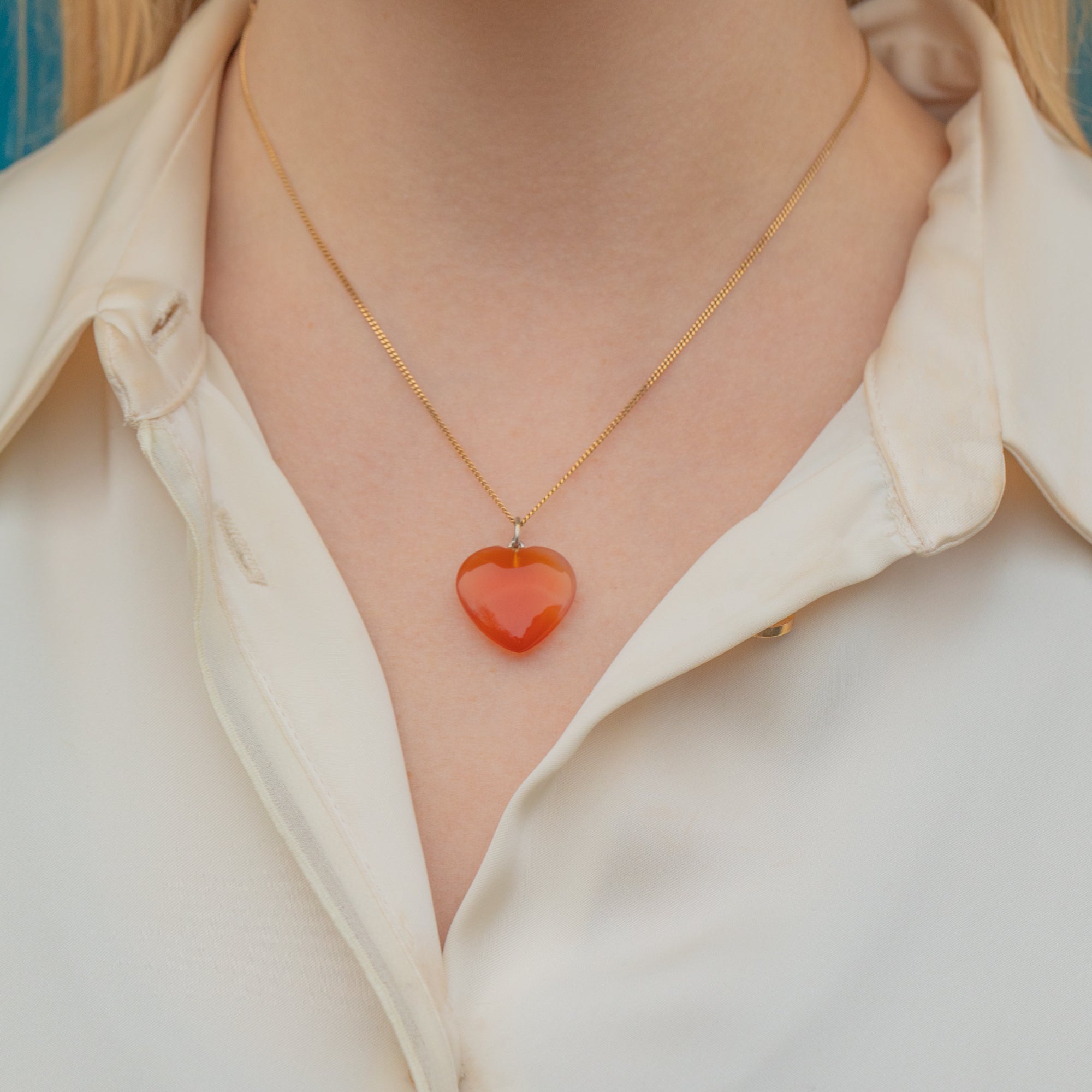 EXCELLENT. This antique Carnelian heart pendant is in excellent condition. The Carnelian is smooth and free from surface wear, with a beautiful colour grading. Simply suspend this striking piece of Victorian jewellery from a chain to fully appreciate its natural beauty!