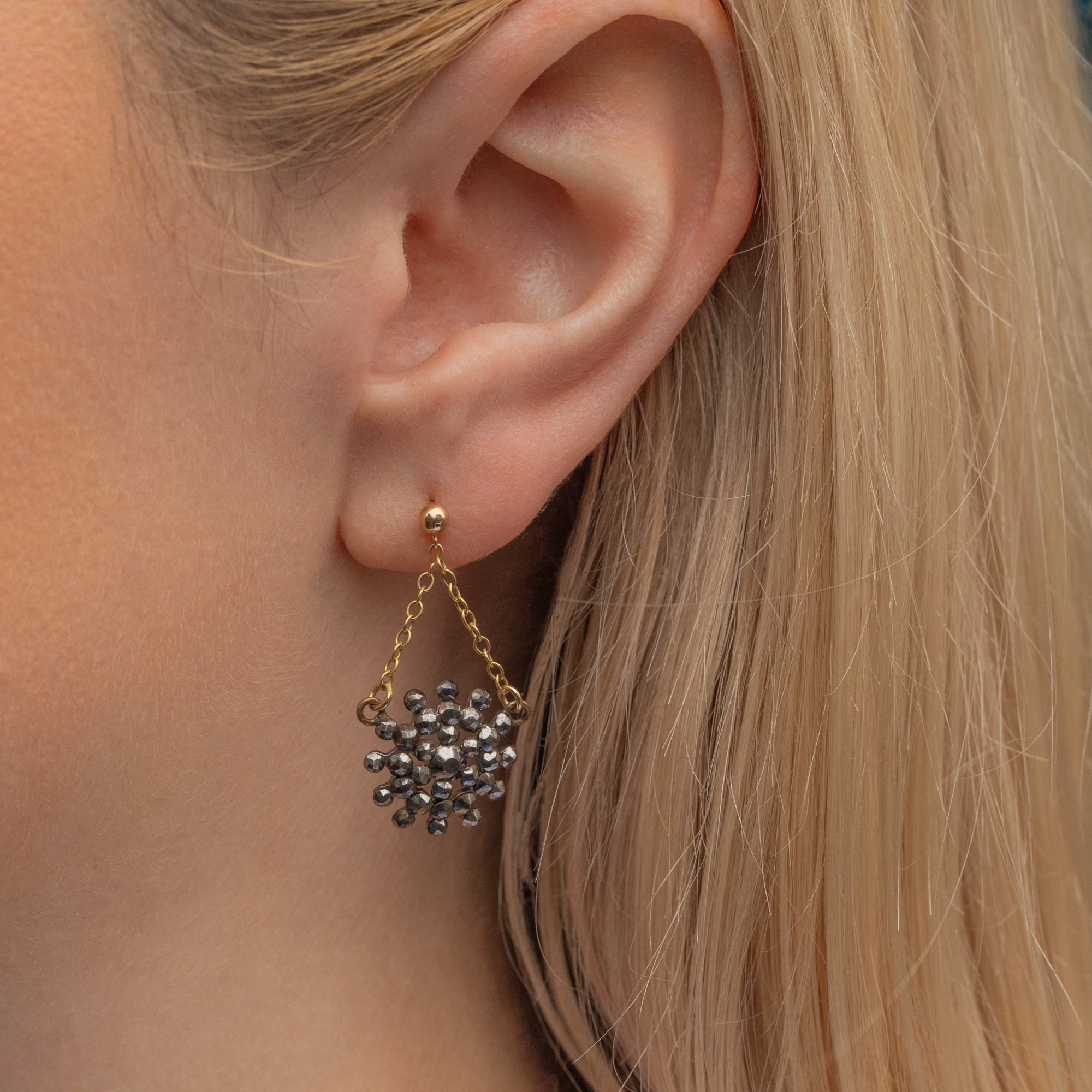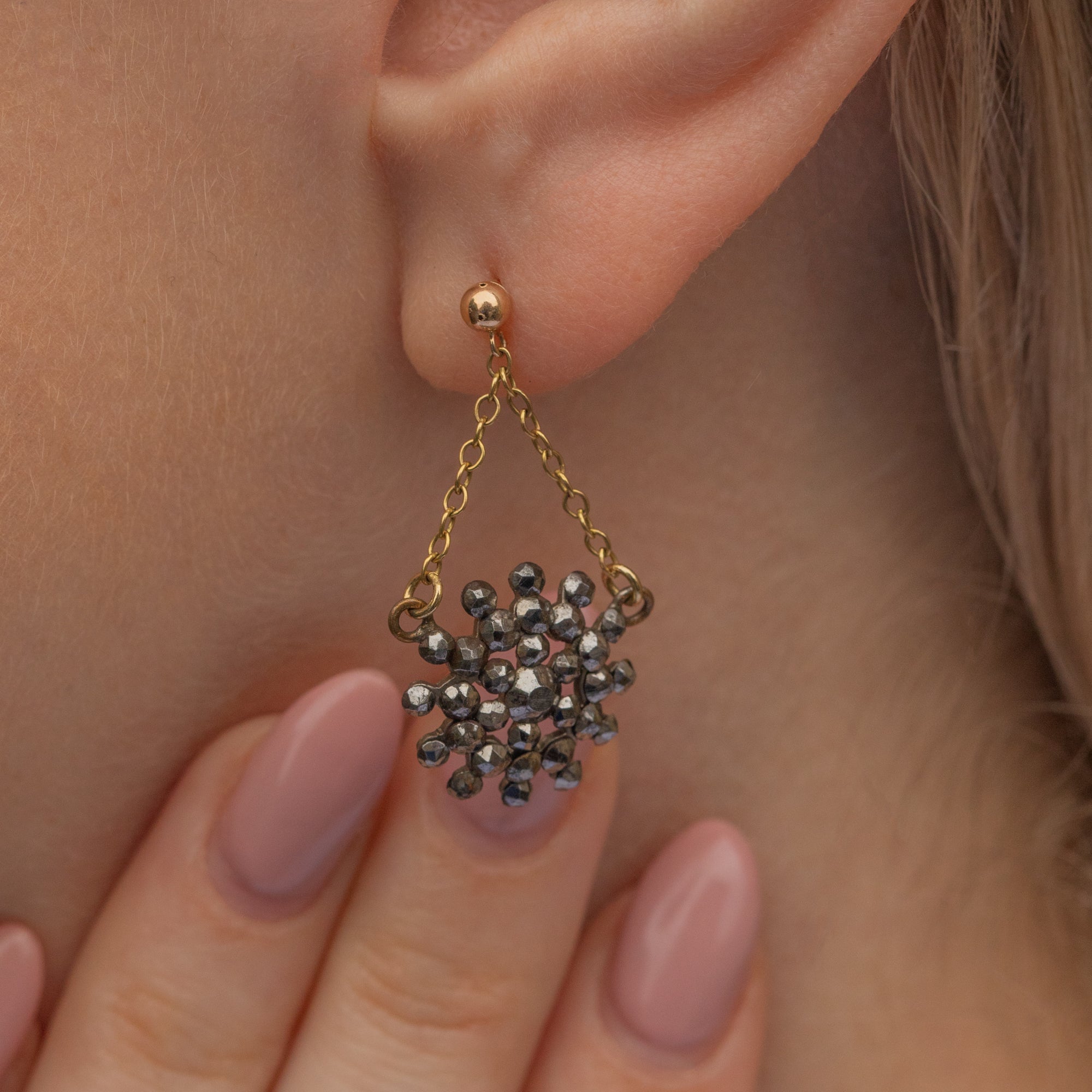 Featuring a plethora of dainty beads of Cut Steel suspended from 9ct Gold chains, these Georgian earrings are the perfect feminine pair! Cut Steel is hard to come by, making pieces such as these earrings highly collectible. These Georgian earrings glisten in the light and would make a wonderful gift for someone special!