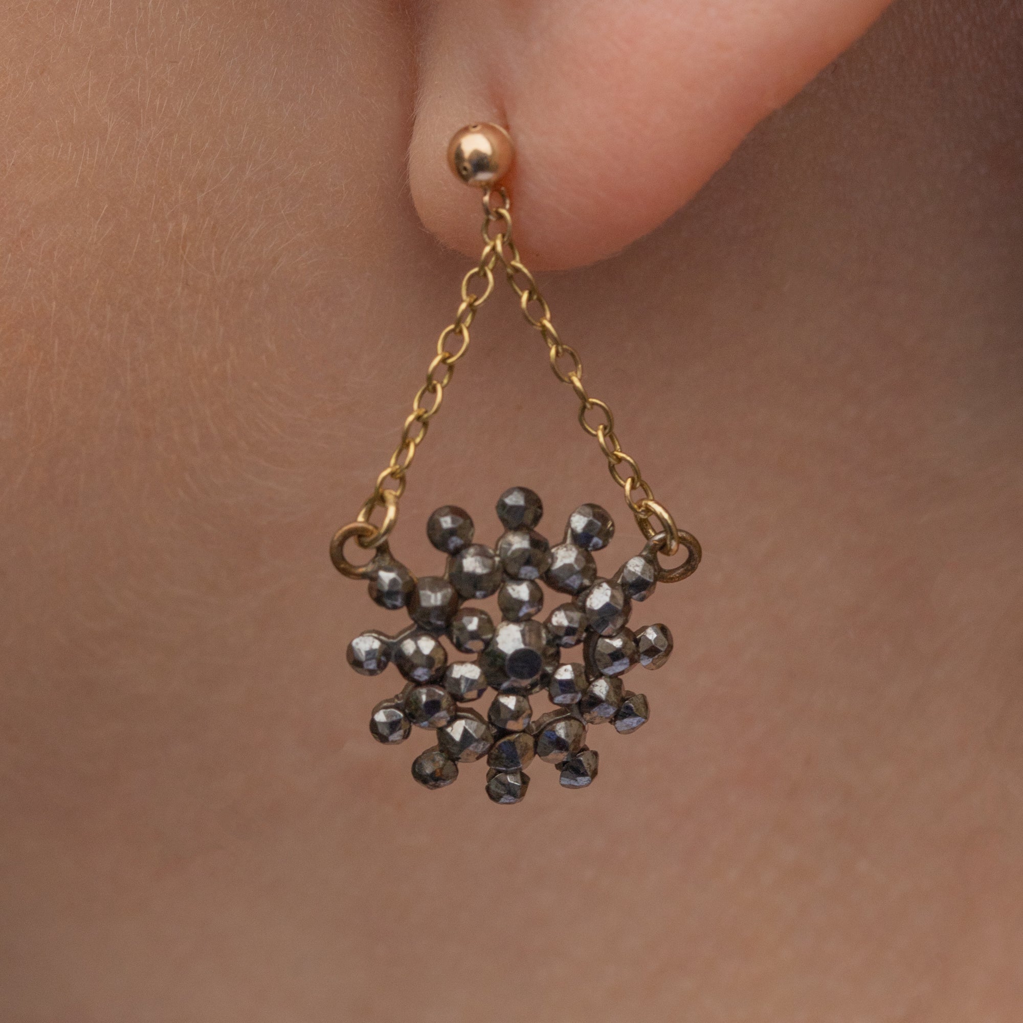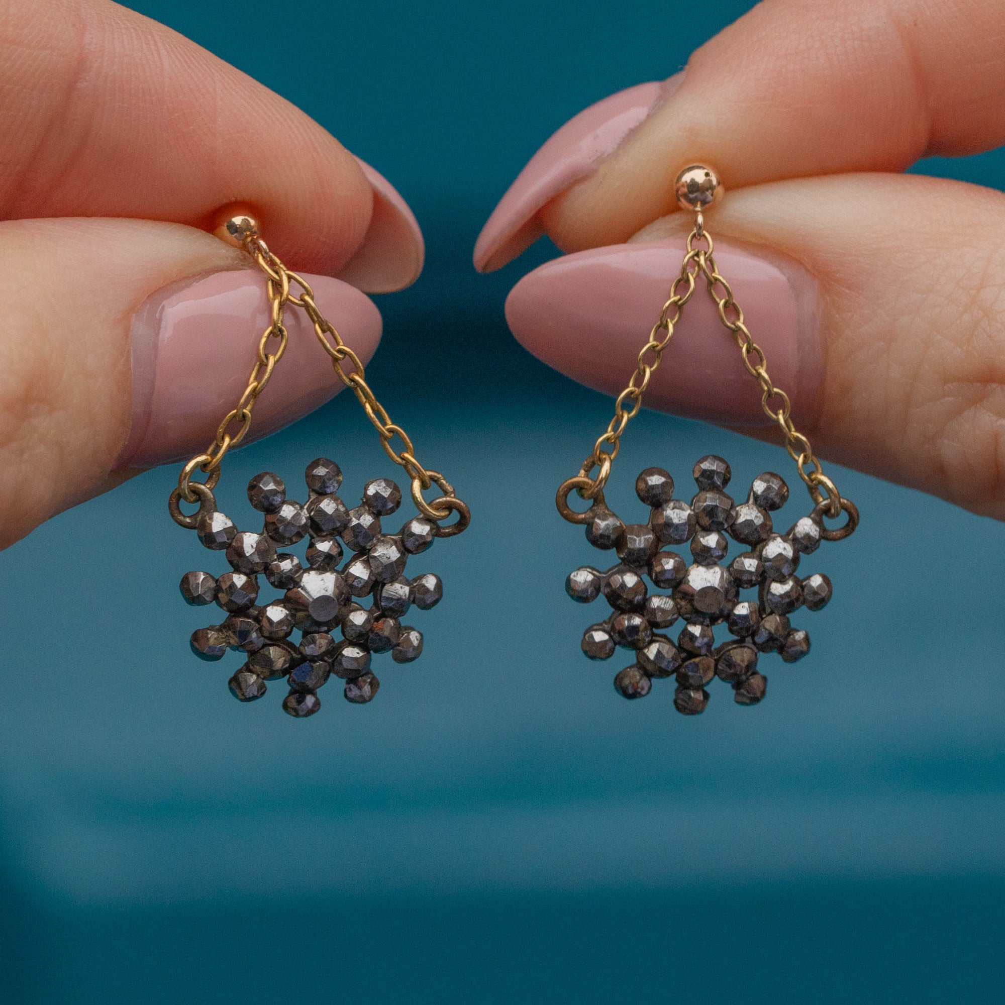This pair of antique 9ct Gold Cut Steel drop star earrings are destined for your jewellery box!