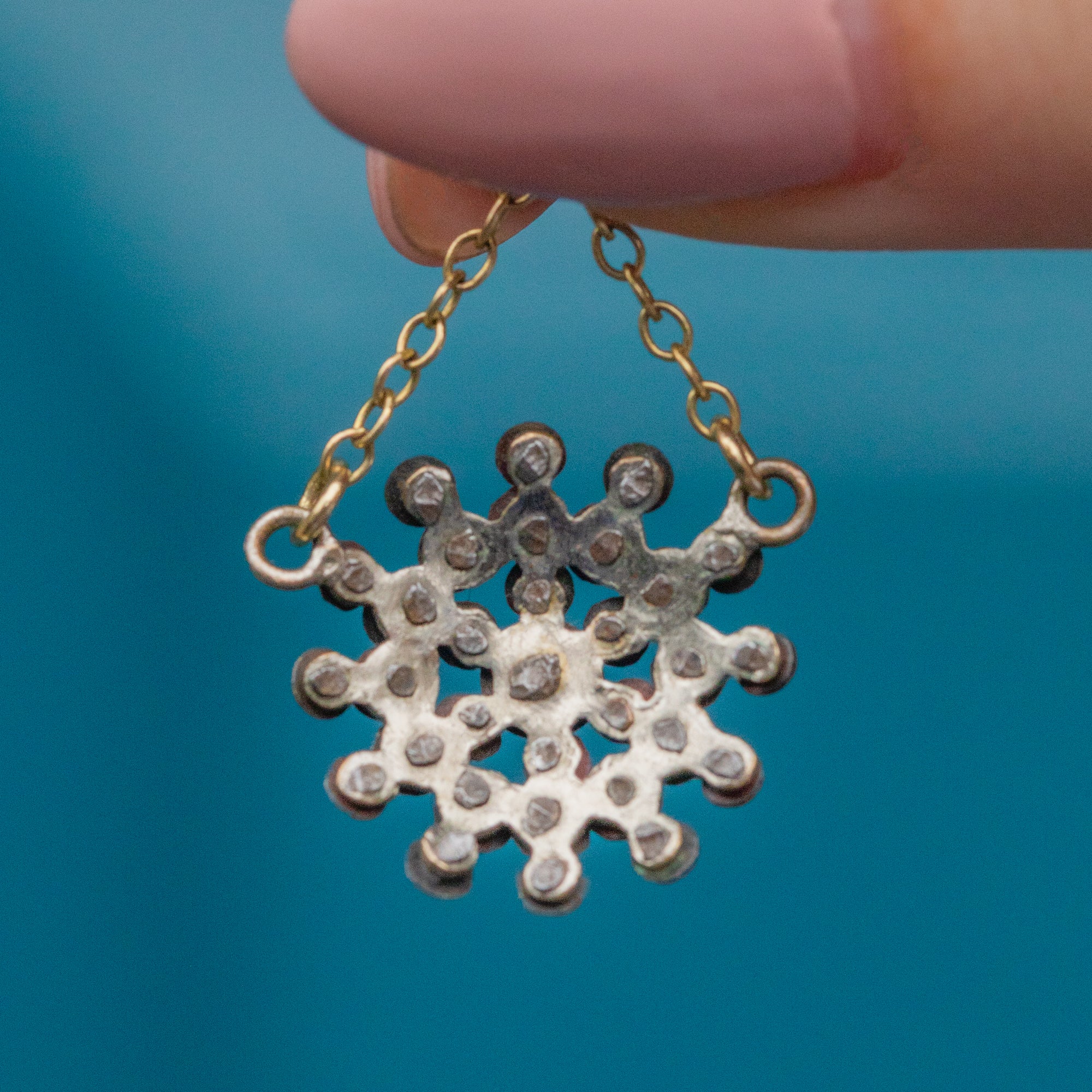 VERY GOOD. These antique Cut-Steel star drop earrings are in very good condition. Each bead of Cut Steel is present and secure; they flaunt an irresistible sparkle, perfect for accompanying any night-time attire. There is some wear on the back of the Cut Steel stars but this is not noticeable from the front and does not affect their structural integrity. The Gold chains are securely affixed and the butterfly backs will allow you to wear these striking Georgian earrings with confidence and comfort!