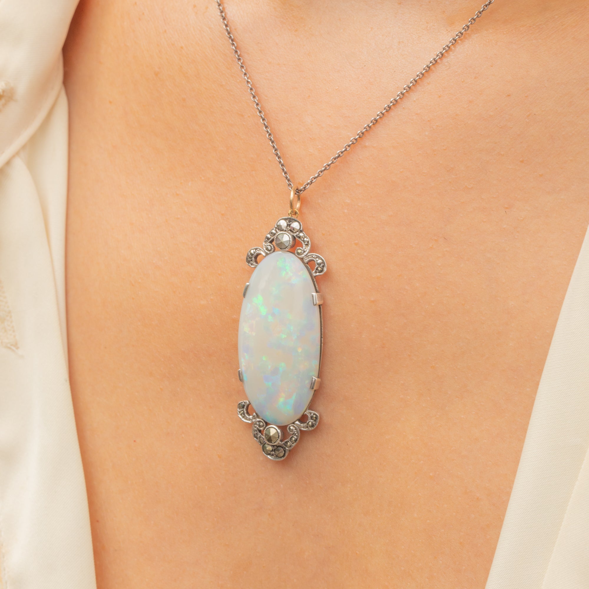 An exquisite Edwardian pendant featuring a stunning 15.40ct solid Opal, set in classic Silver.