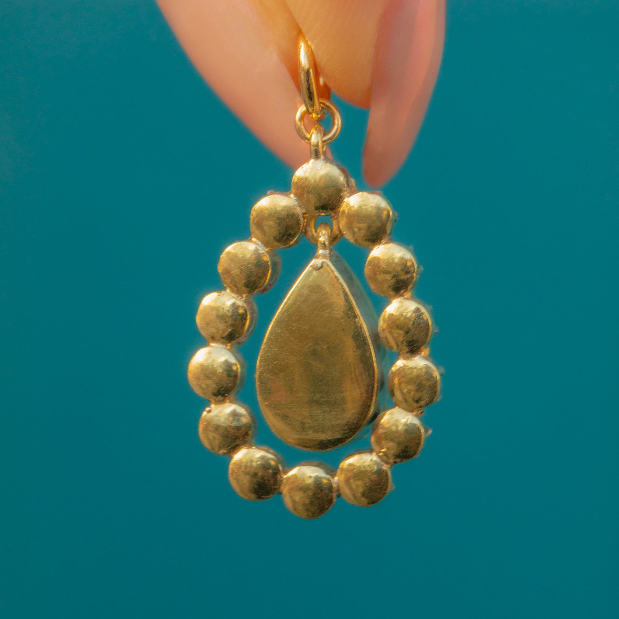 What an exquisite antique Emerald Diamond pear drop pendant! Boasting a deep green, flat-cut 1.00ct Emerald, beautifully framed by 14 old mine-cut Diamonds. What's more, this Emerald is foiled, a very rare thing to see, meaning that her verdant green is all the more vivid as a result! This Victorian piece is a feast for the senses, you can't help but let your jaw drop to the floor when you cast your eye on her!