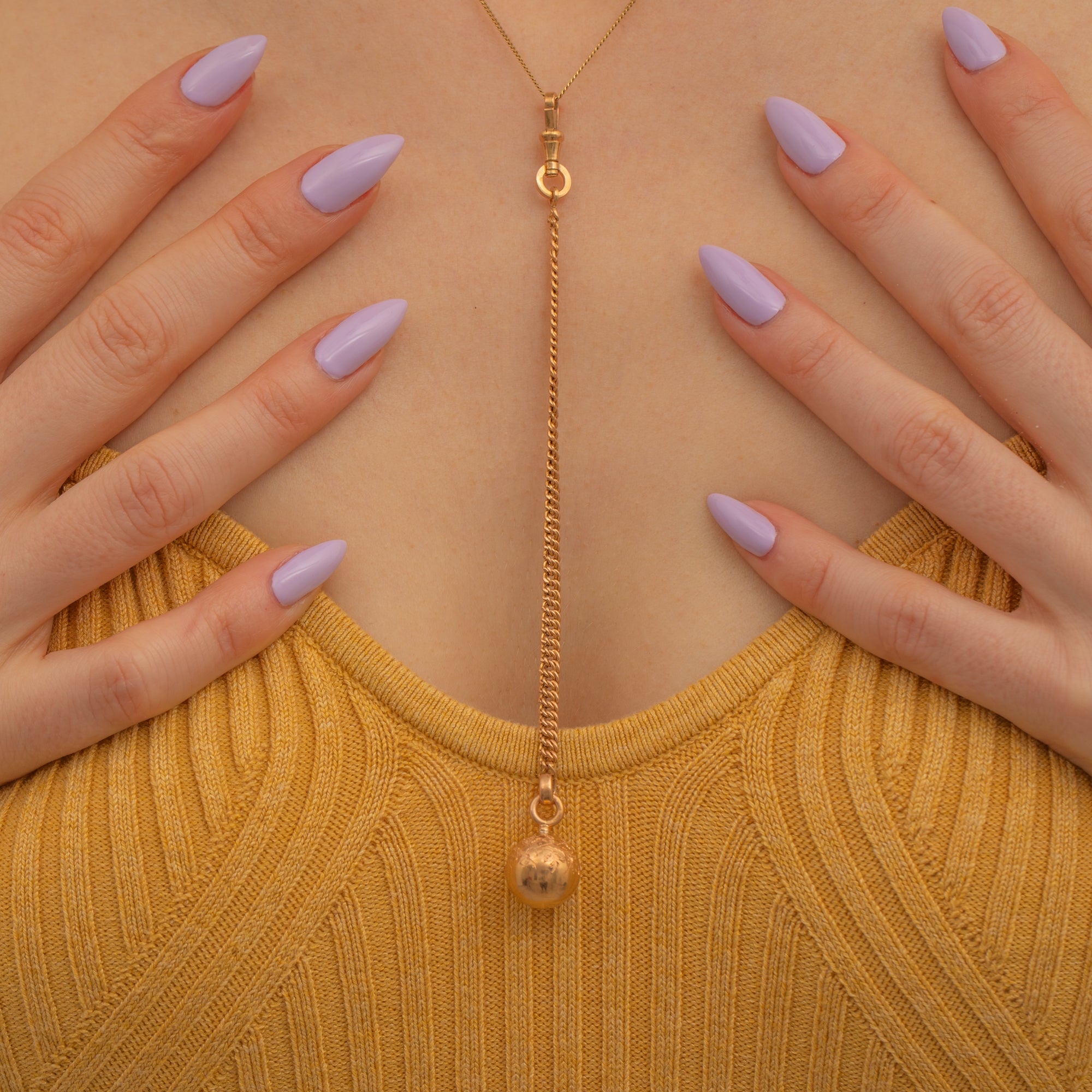 This antique French 18ct Gold engraved orb pendant is so captivating! The honey-hued 18ct Gold orb is engraved with intricate floral details, suspending daintily from a rich 18ct Gold double curb link chain, affixed to an antique dog clip - rendering her functional and cute!